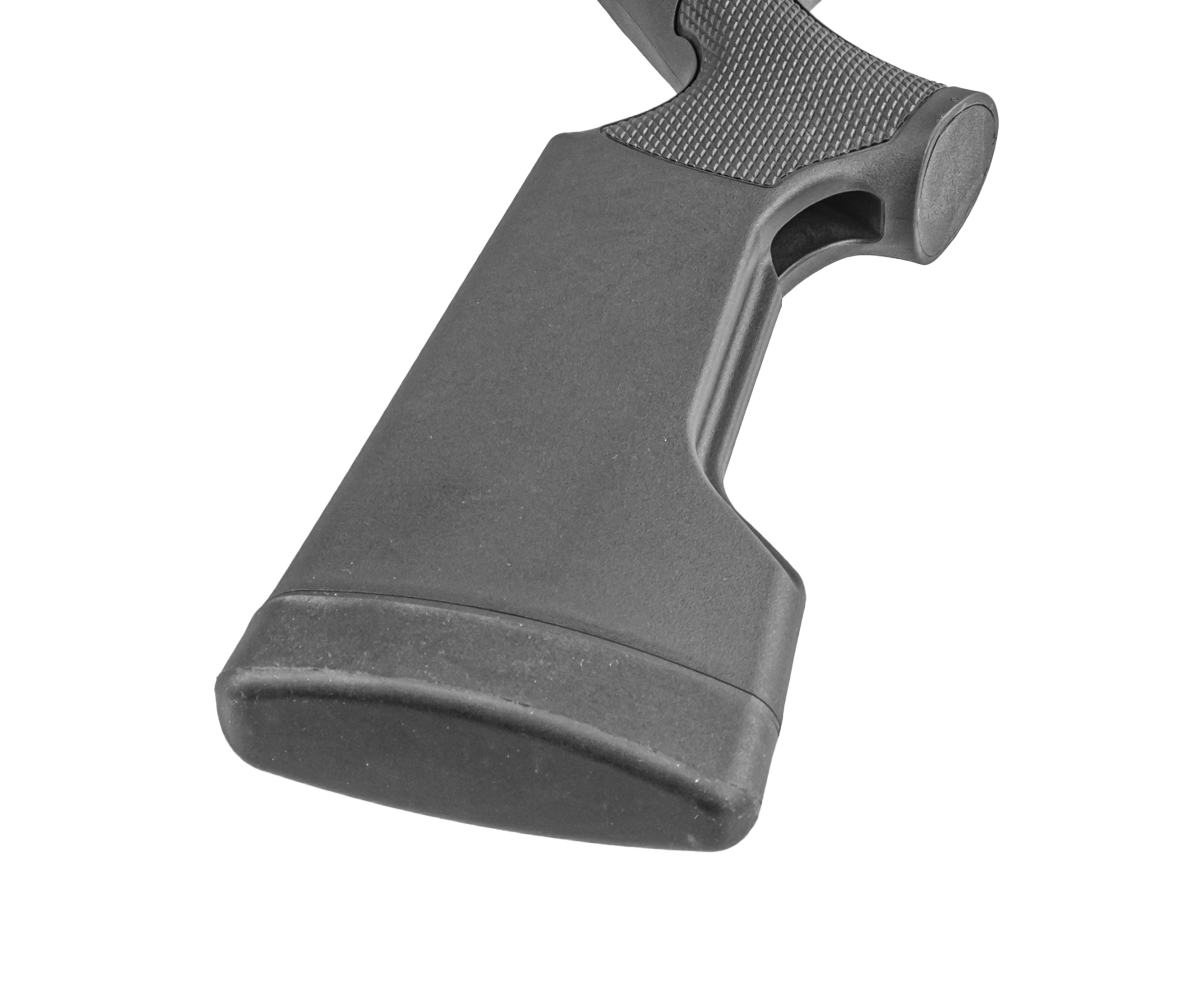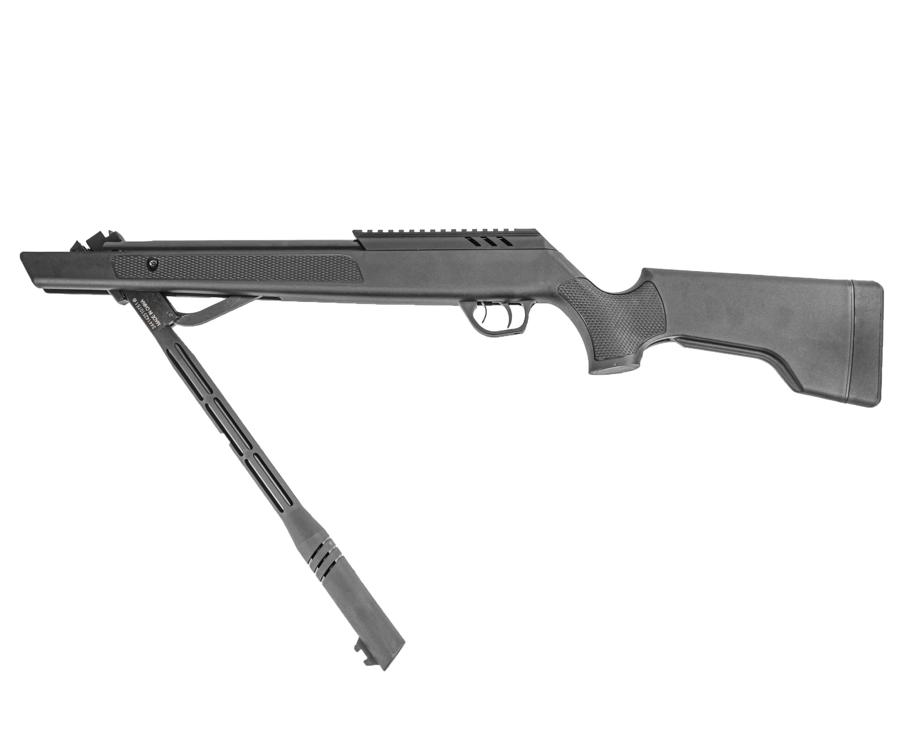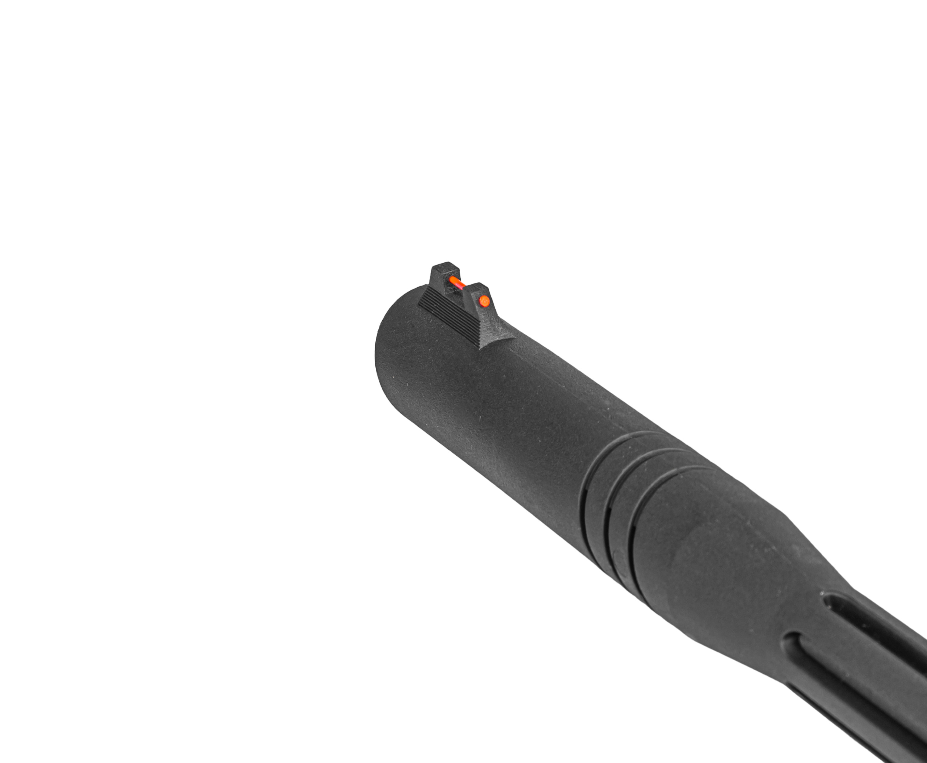 В то же время размер изделия составляет 120 сантиметров. Пневматика выполнена в классической компоновке и характеризуется наличием амбидекстрального приклада с резиновым тыльником. Вкупе это создает условия для корректной вкладки не только для правши, но и левши, а также исключает скольжение при упоре в плечо.