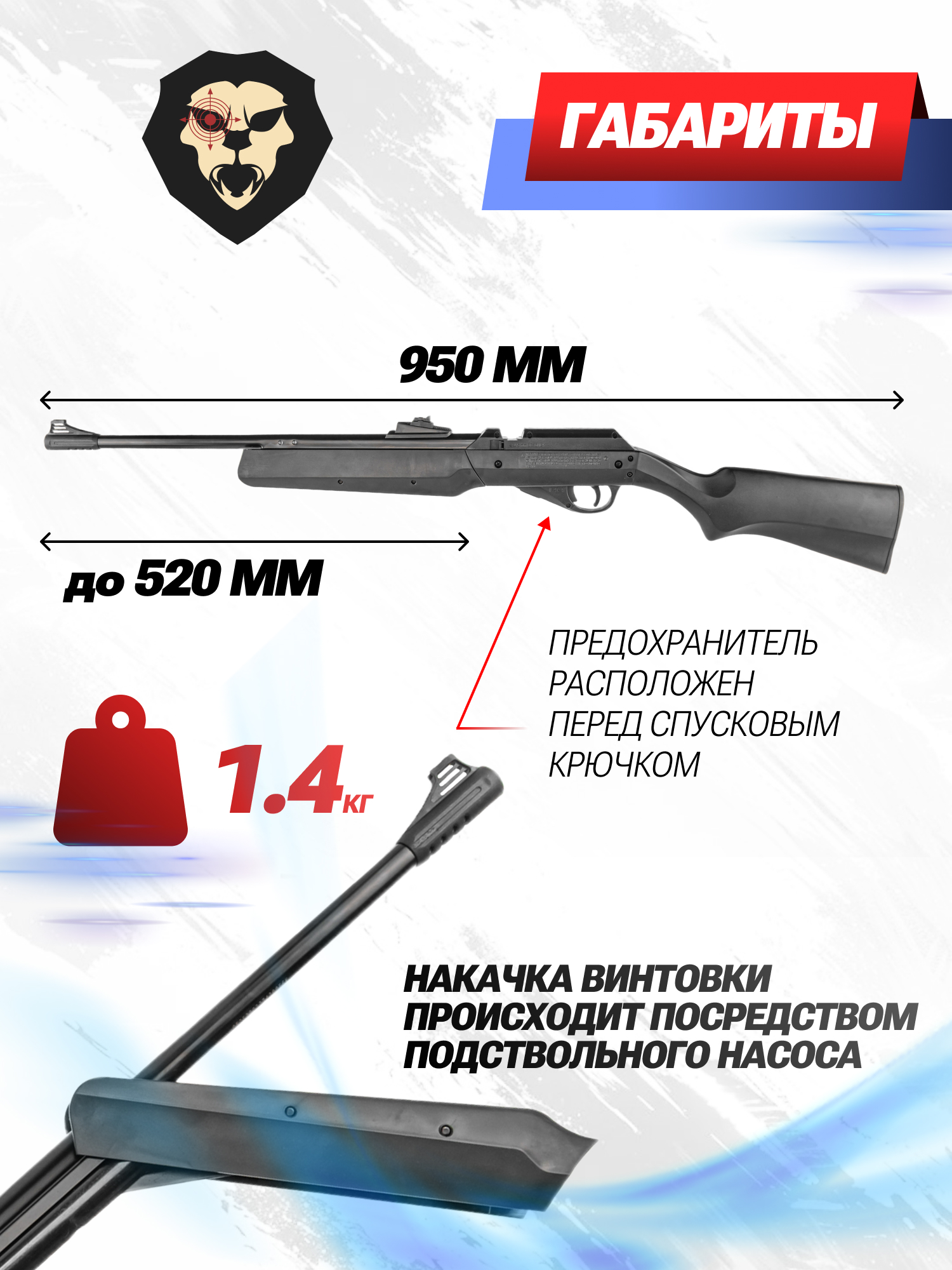 Внимание! Данная модель поставляется в разрешенной мощности для свободного приобретения на территории Российской Федерации. При этом в модели имеется возможность увеличения мощности путем замены части деталей или настройки конструкции, однако не стоит забывать о Федеральном законе «Об оружии» № 150 - ФЗ. В случае необходимости, опираясь на данный закон и руководствуясь им, возможно, потребуется получить разрешение от ЛЛР ГУ МВД России после вмешательства в конструкцию.