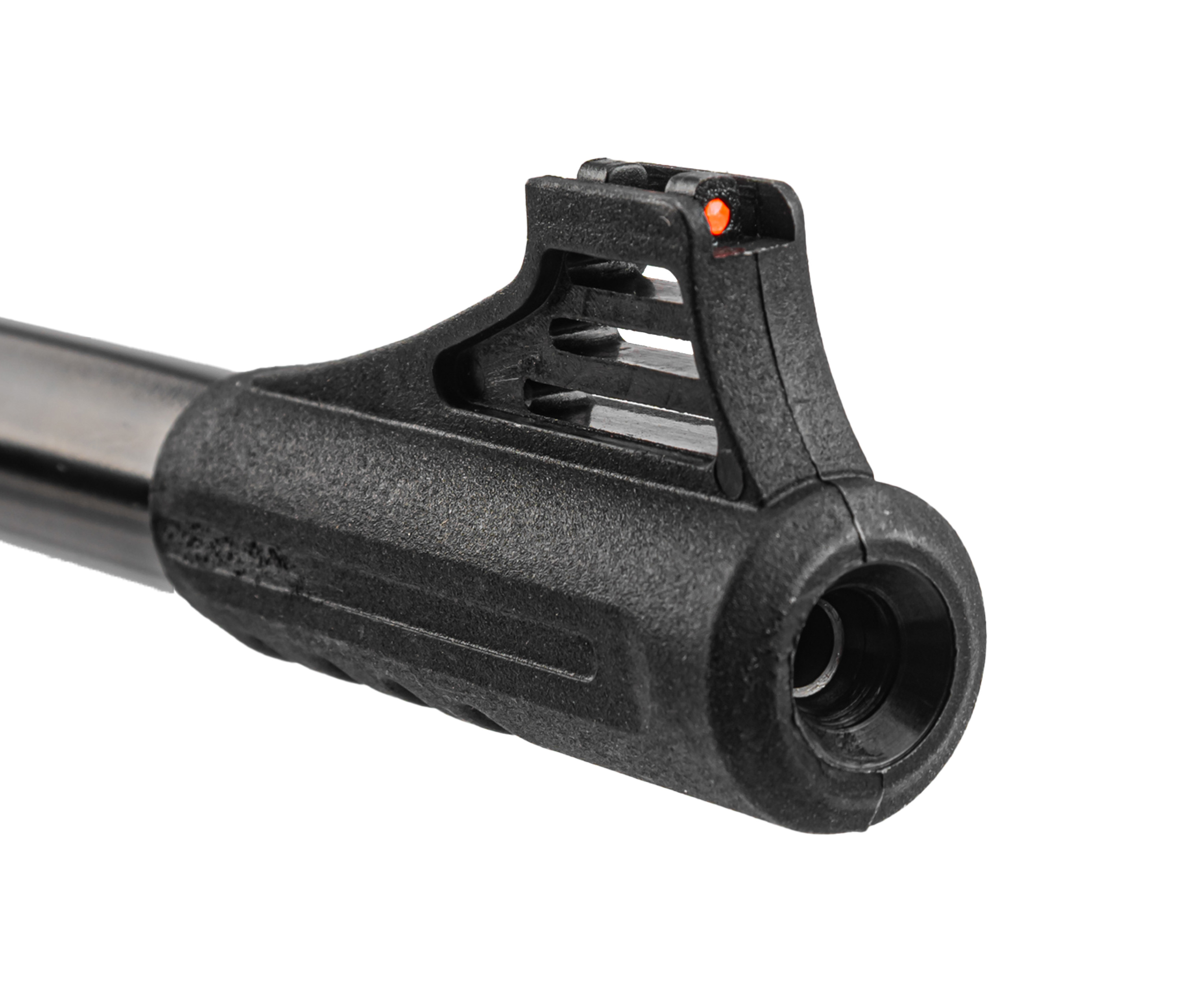 Компрессионная винтовка Борнер осуществляет стрельбу в одиночном режиме после взведения спускового механизма рычагом затвора. Для наведения на мишень присутствуют классические открытые прицельные приспособления - целик и мушка, помимо которых допускается монтаж оптики на кольцах «Ласточкин хвост». Из достоинств экземпляра также стоит отметить легкий вес в пределах 1.4 кг, что объясняется фурнитурой из современного ударостойкого полимера - в данной версии детали имеют красный оттенок.