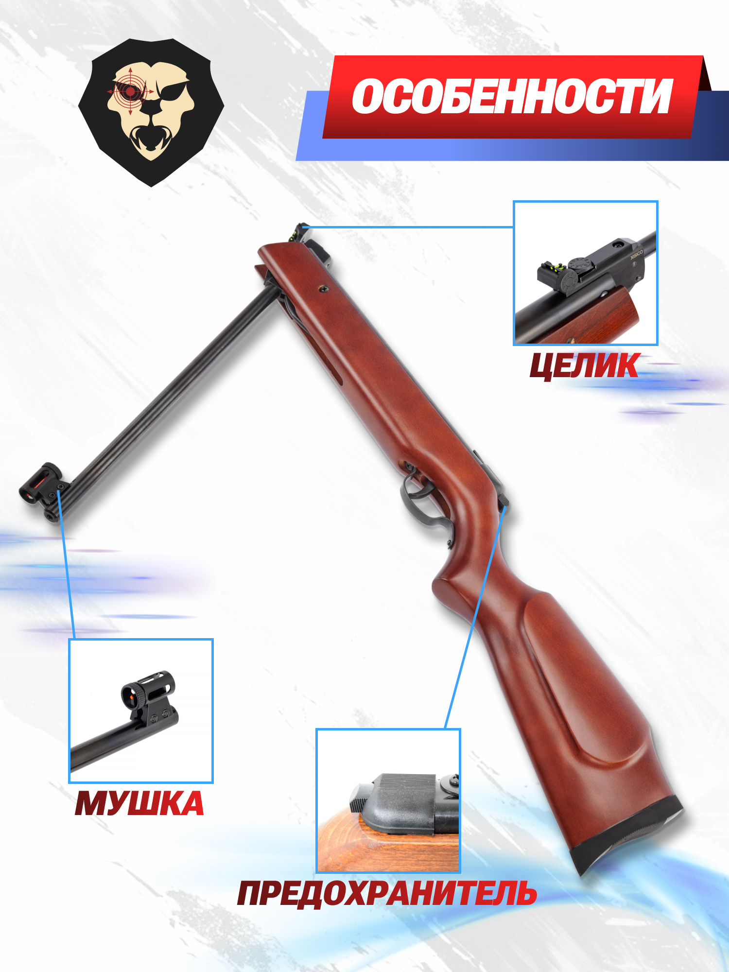Пневматическая винтовка Борнер XS12 4.5 мм оснащается предохранителем, который блокирует работу ударно-спускового механизма и обеспечивает необходимый уровень безопасности при работе с оружием. Согласно действующим требованиям законодательства наличие такого механизма является обязательным условием, предъявляемым ко всем пневматическим пистолетам и винтовкам.