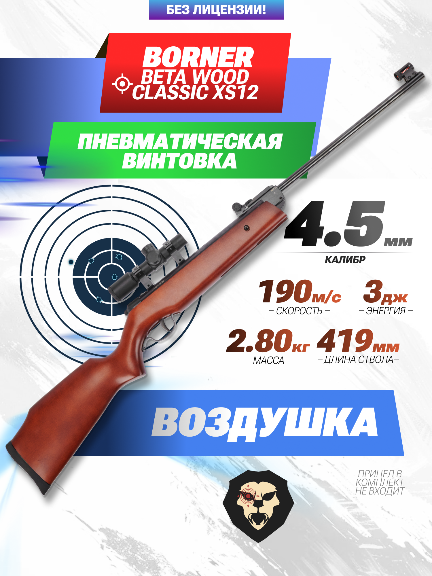 Информация о товаре "Пневматическая винтовка Borner Beta Wood Classic XS12 4.5 мм (3 Дж)" носит ознакомительный характер, и не является публичной офертой, определяемой положениями Статьи 437 Гражданского кодекса Российской Федерации, характеристики, внешний вид, цвет и комплектация могут быть изменены производителем без уведомления.