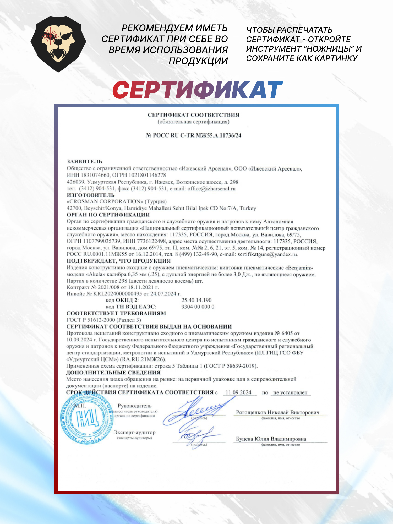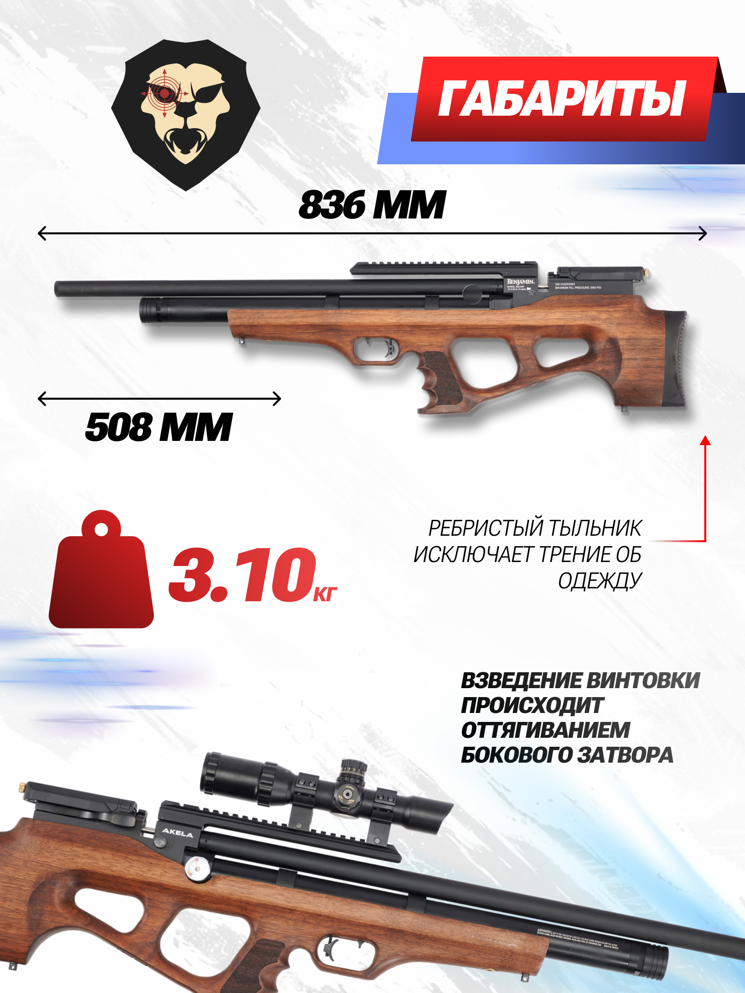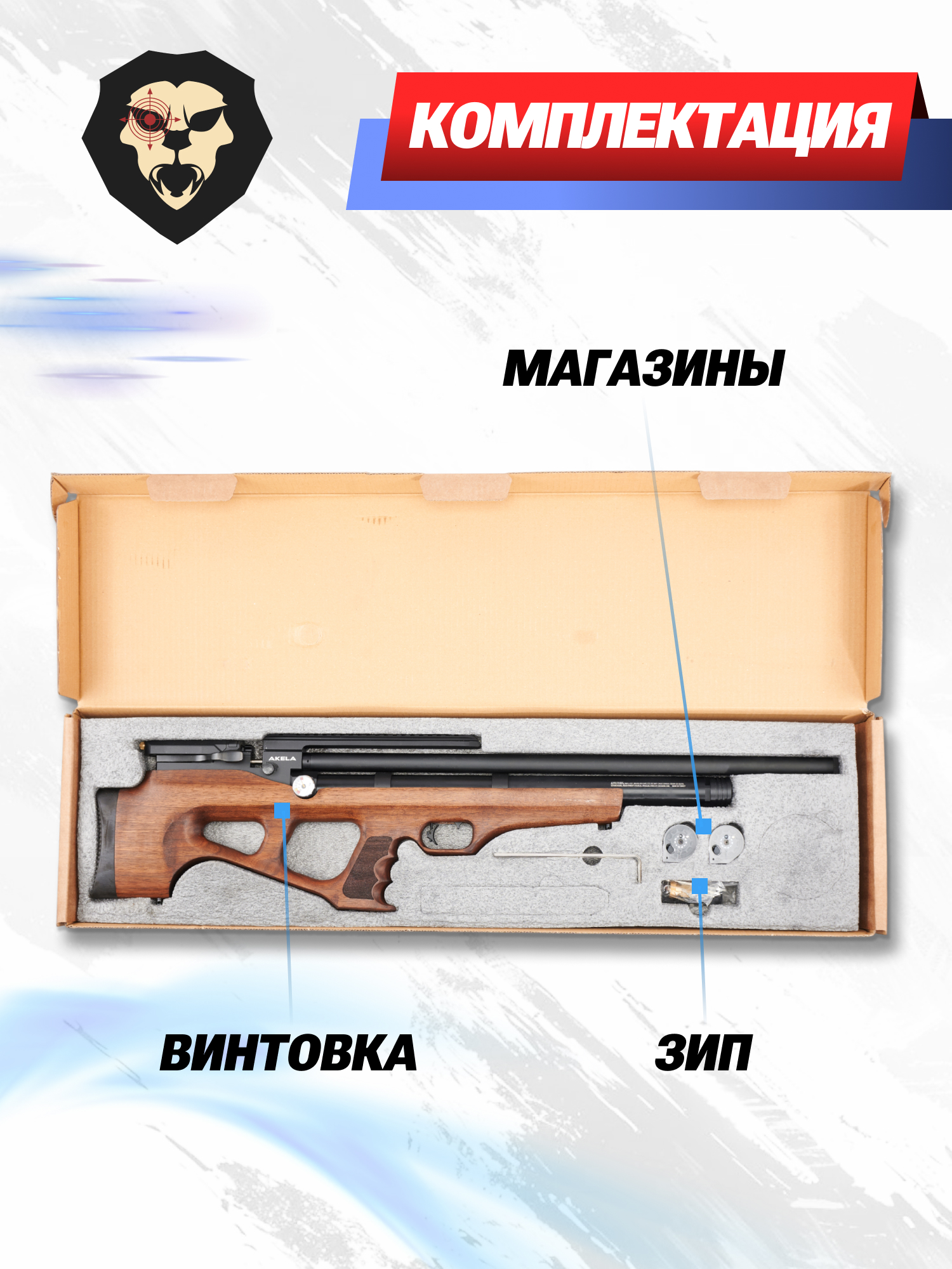 | Комплектация | Винтовка, магазин - 2 шт, ключ, заправочный штуцер, упаковка, краткая документация, копия сертификата (по запросу покупателя) |