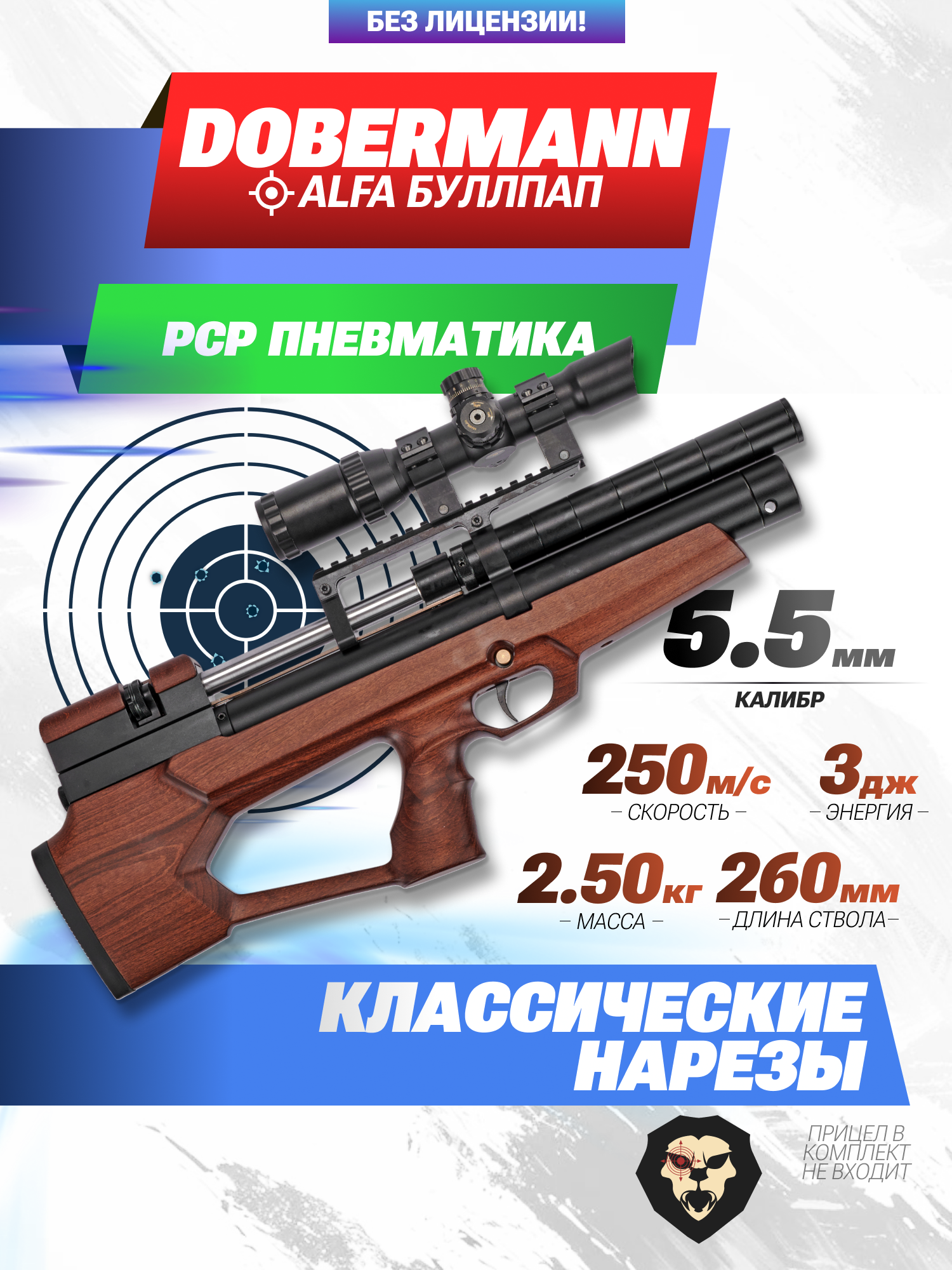 Пневматическая винтовка Dobermann Alfa Буллпап 5.5 мм (260 мм, дерево, классические нарезы, передний взвод) купить в интернет-магазине Popadiv10.