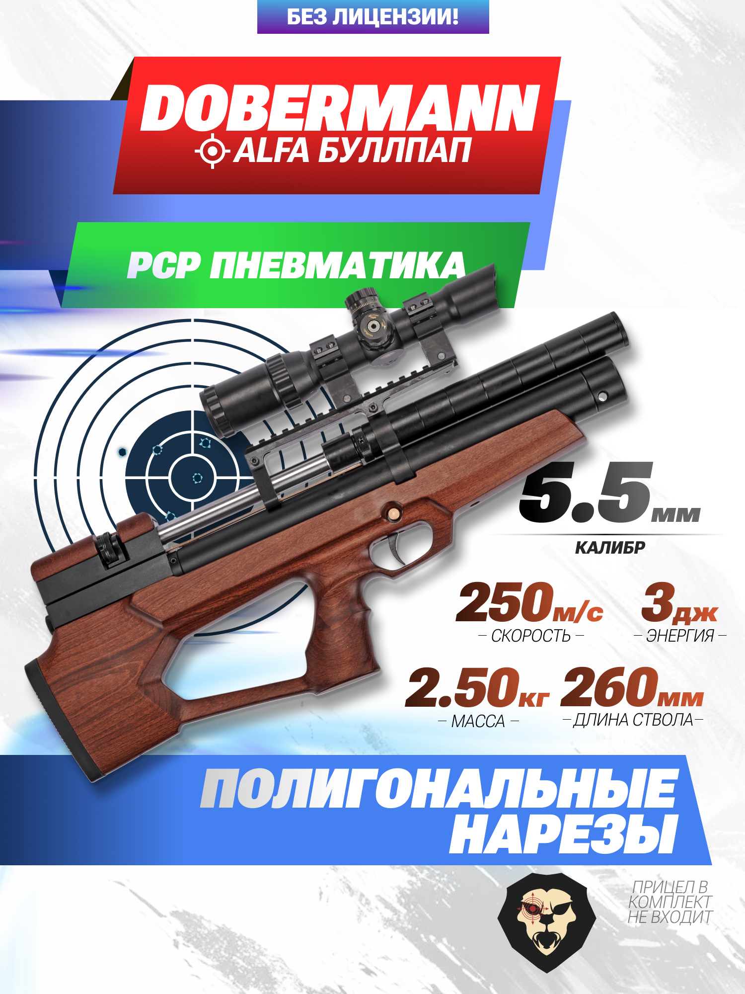 Пневматическая винтовка Dobermann Alfa Буллпап 5.5 мм (260 мм, дерево, передний взвод, полигональные нарезы) купить в интернет-магазине Popadiv10.