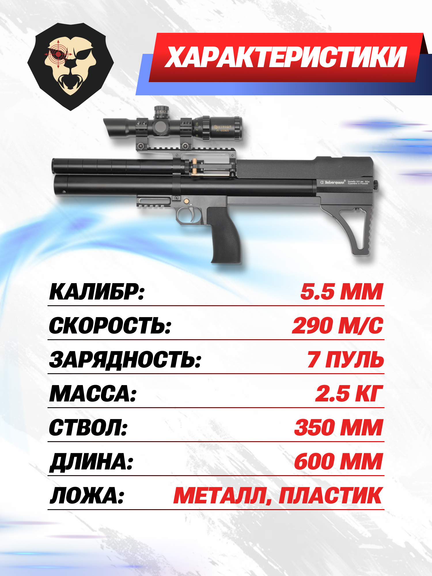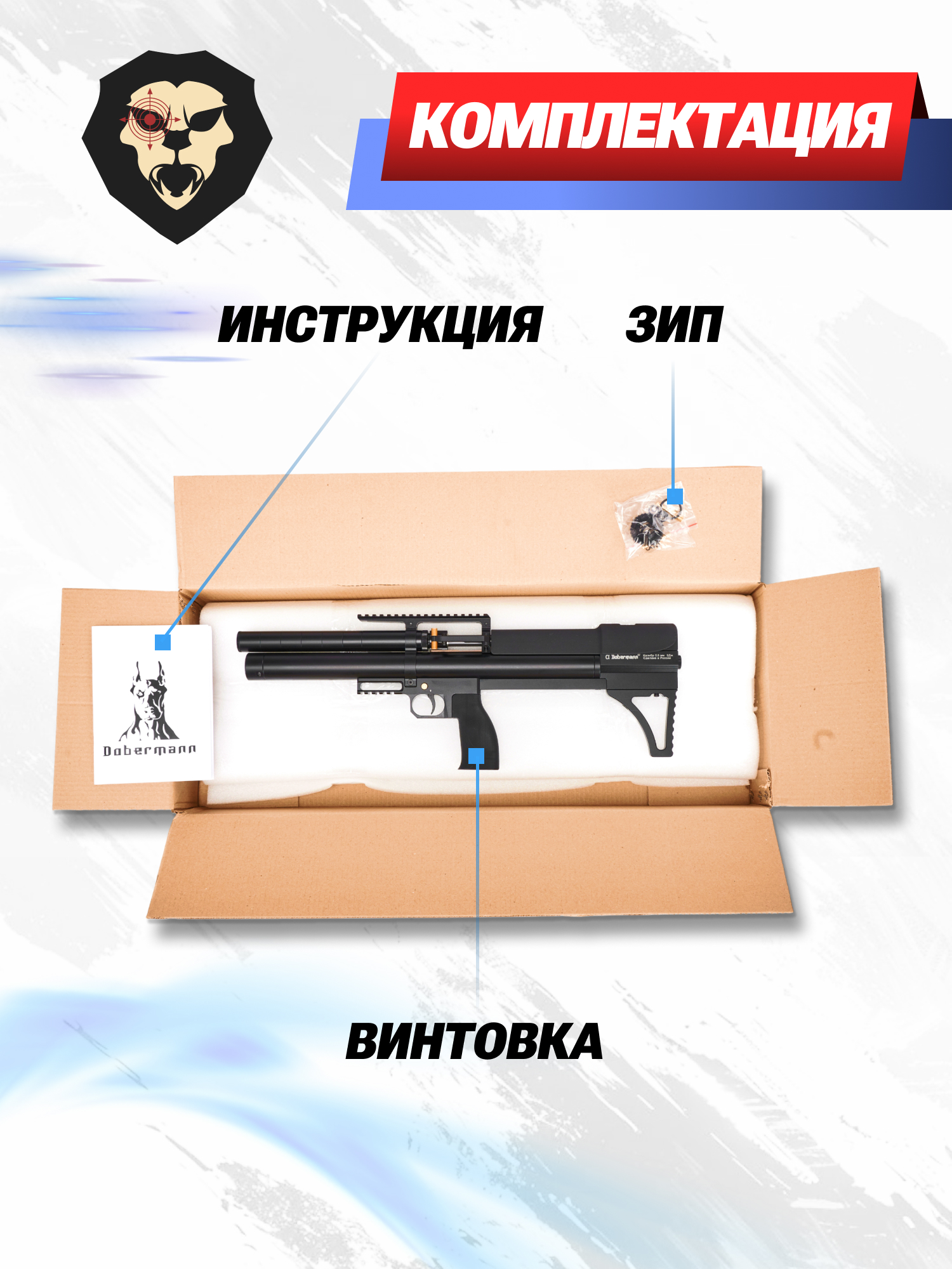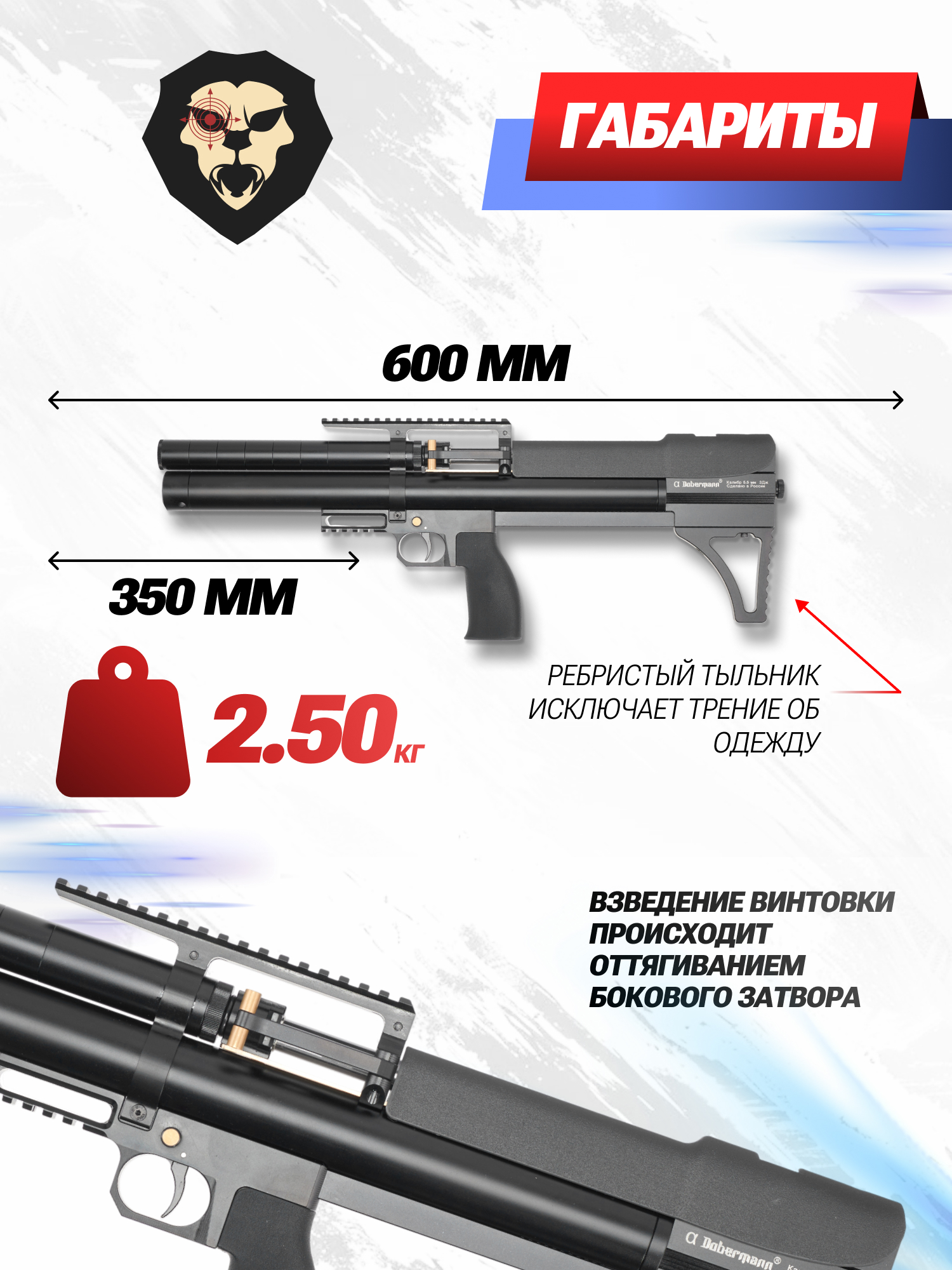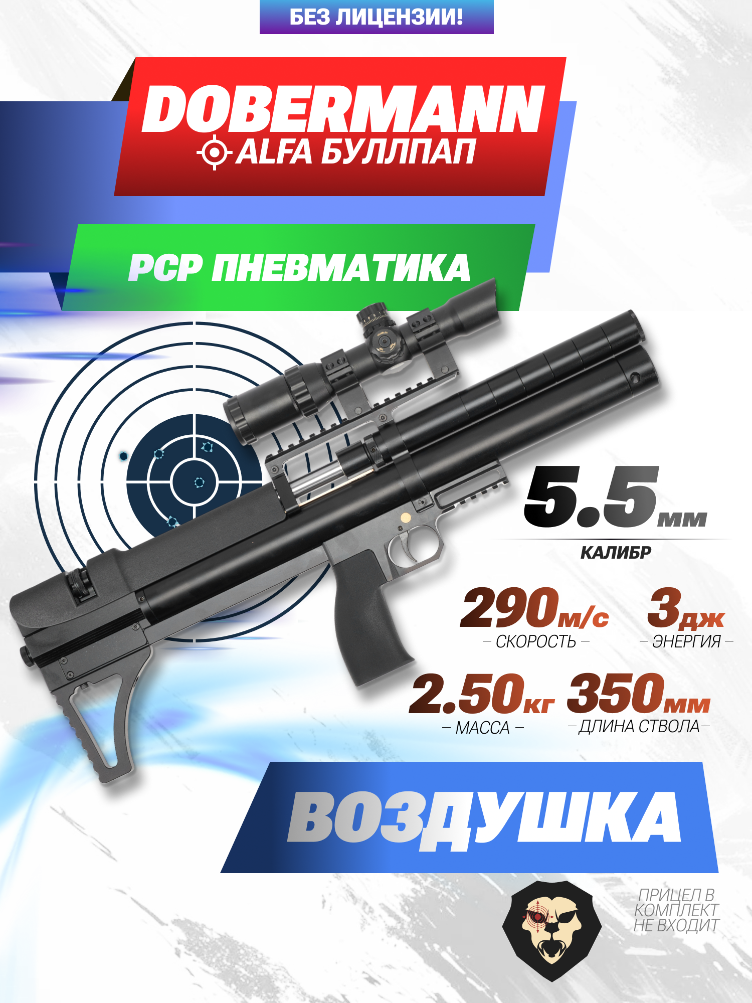 Информация о товаре "Пневматическая винтовка Dobermann Alfa Буллпап 5.5 мм (350 мм, полигональные нарезы, передний взвод)" носит ознакомительный характер, и не является публичной офертой, определяемой положениями Статьи 437 Гражданского кодекса Российской Федерации, характеристики, внешний вид, цвет и комплектация могут быть изменены производителем без уведомления.