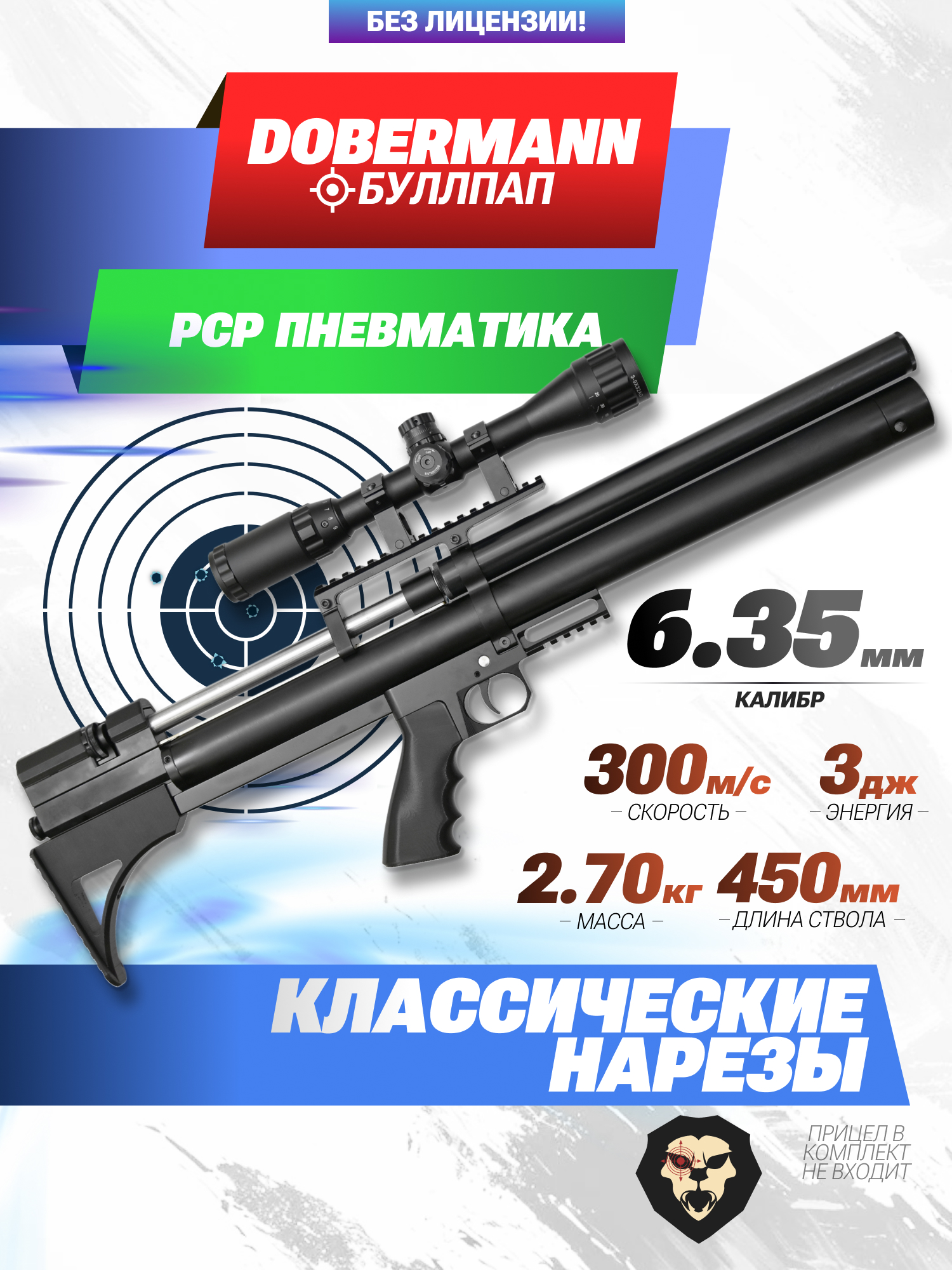 Пневматическая винтовка Dobermann Alfa Буллпап 6.35 мм (450 мм, передний взвод, классические нарезы) купить в интернет-магазине Popadiv10.