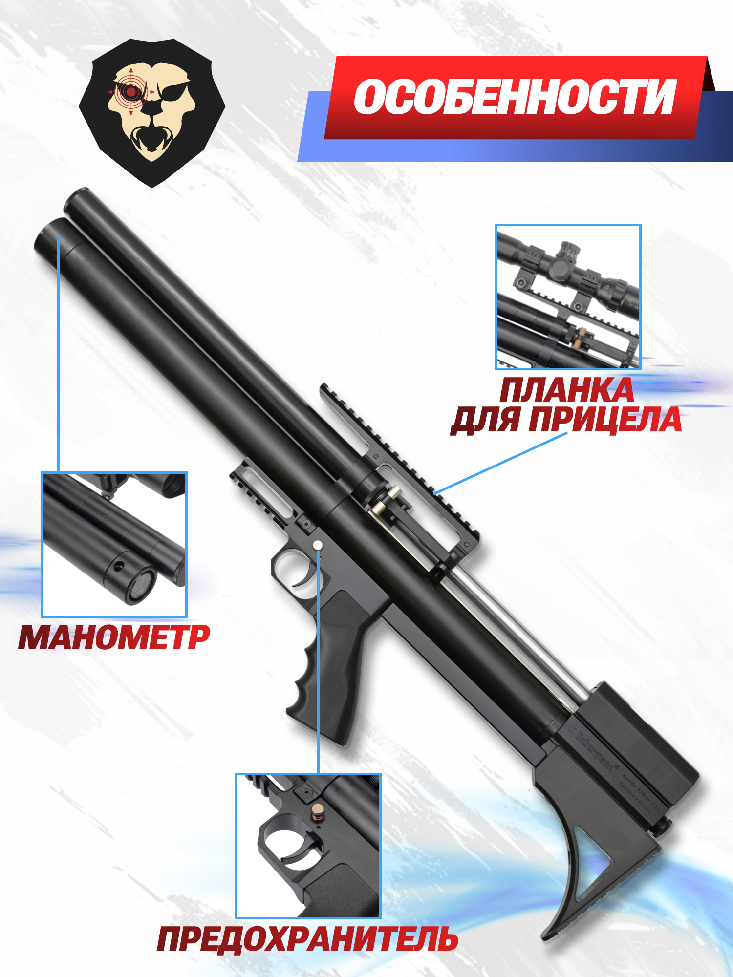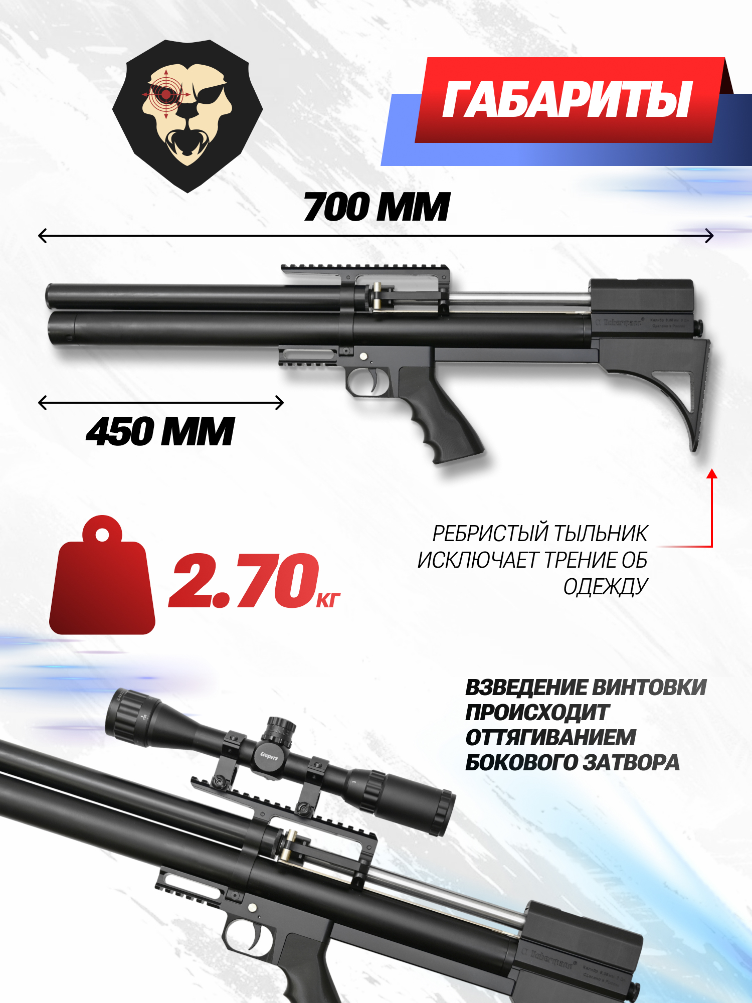 | Комплектация | Винтовка, магазин, упаковка, заправочный штуцер, краткая документация, РТИ, ключ для манометра, копия сертификата (по запросу покупателя) |