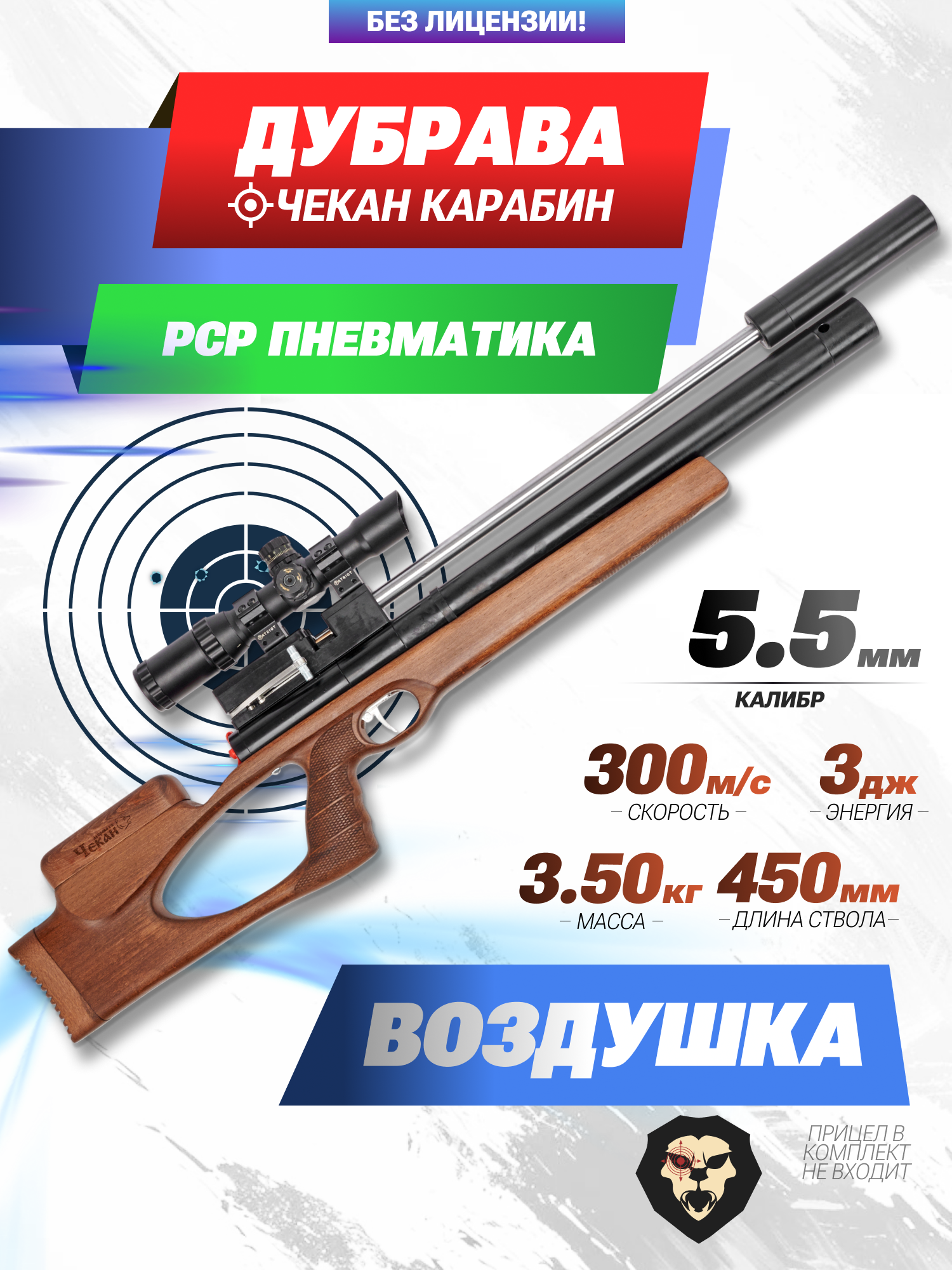 Пневматическая винтовка Дубрава Чекан Карабин 5.5 мм VX (450 мм, дерево, магнум) купить в интернет-магазине Popadiv10.
