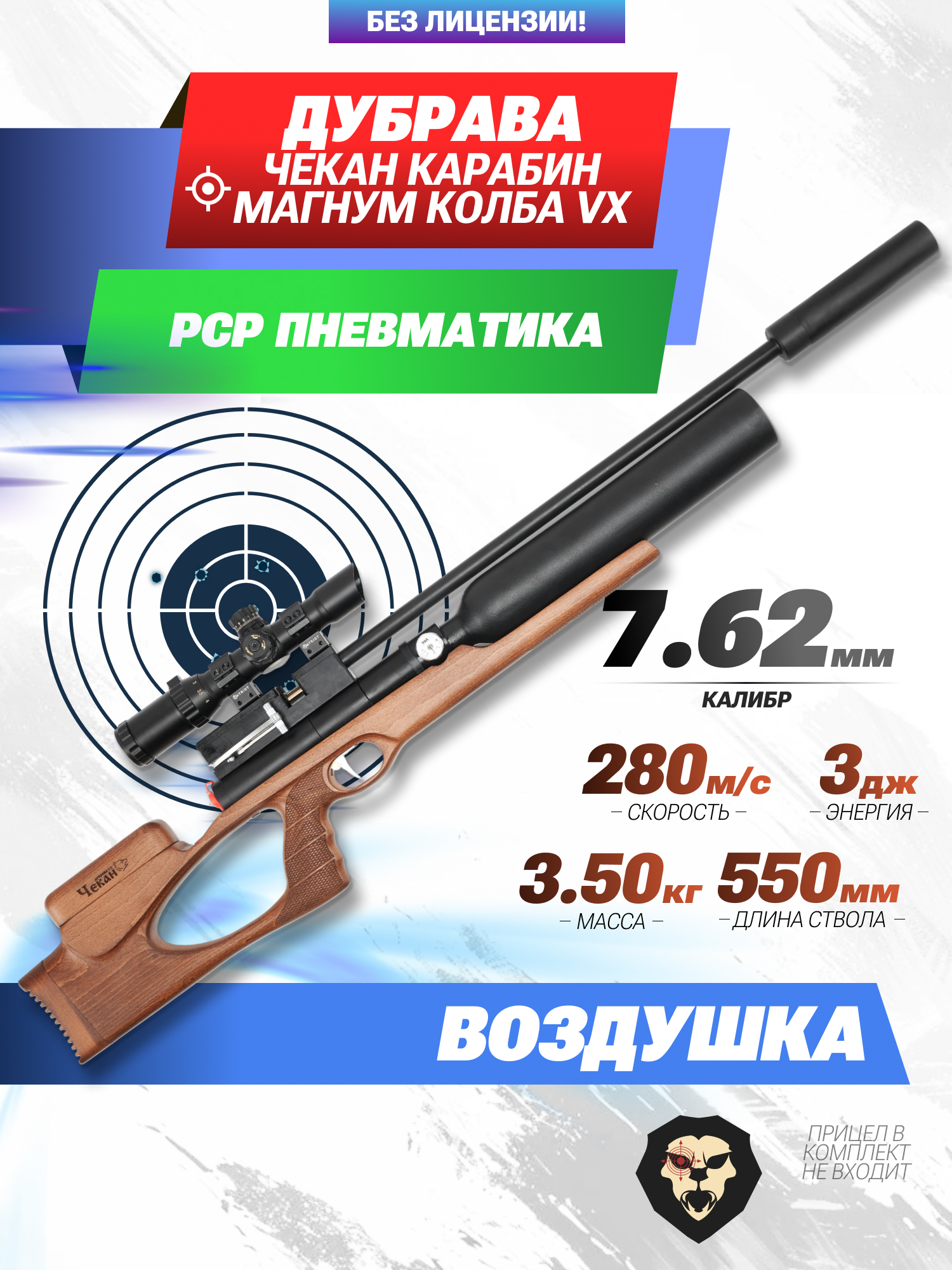 Пневматическая винтовка Дубрава Чекан Карабин Магнум Колба 7.62 мм VX (550 мм, дерево) купить в интернет-магазине Popadiv10.