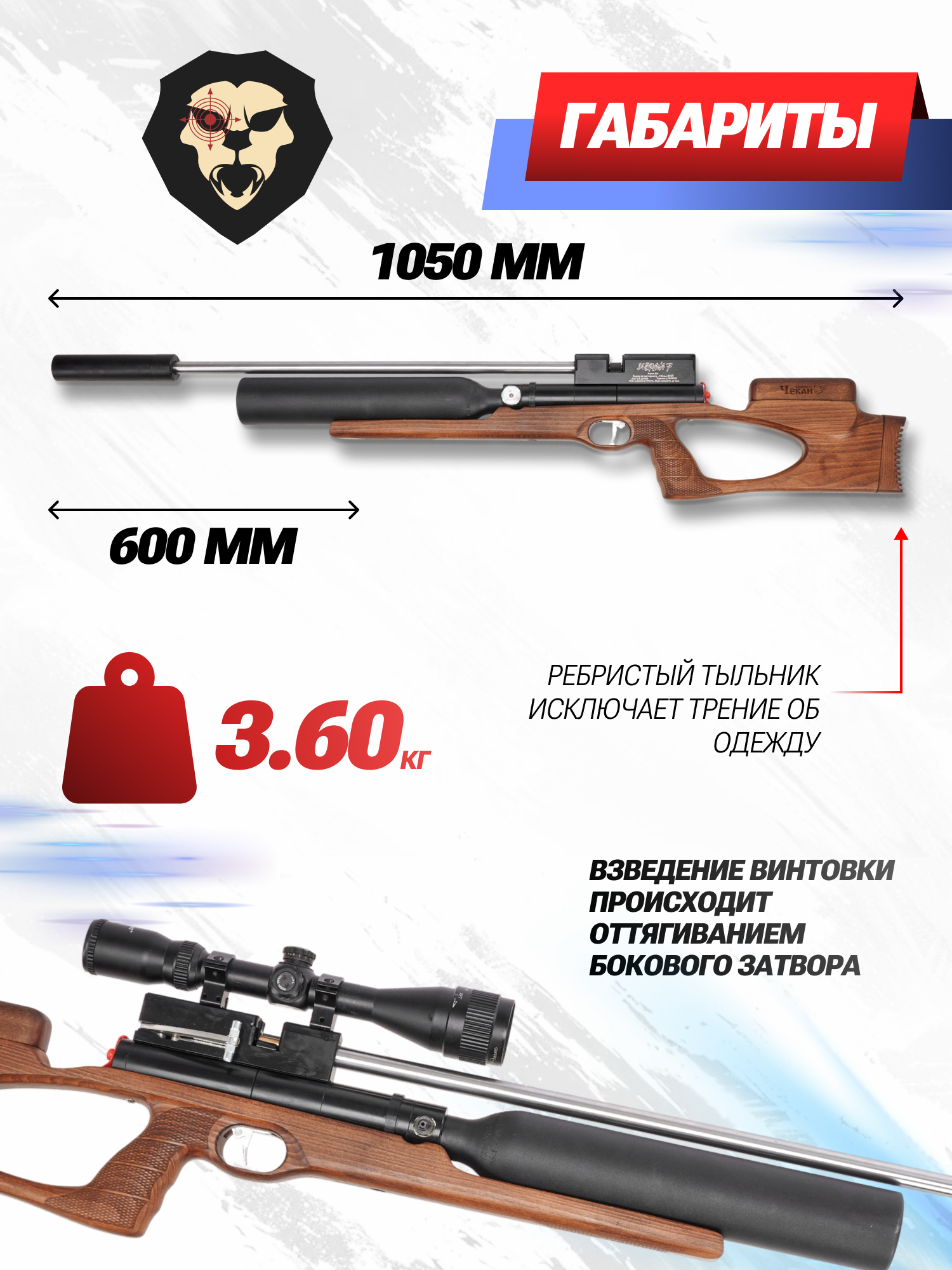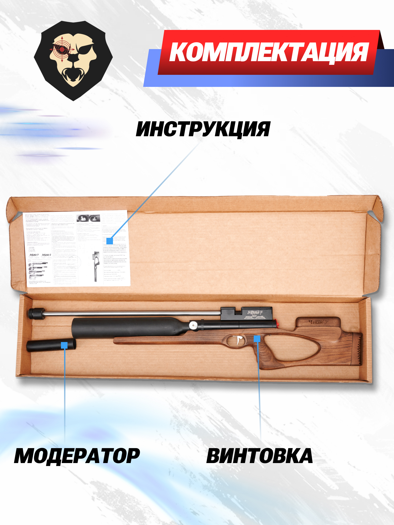 | Комплектация | Винтовка, заправочный штуцер, пульный лоток, упаковка, краткая документация, копия сертификата (по запросу покупателя) |