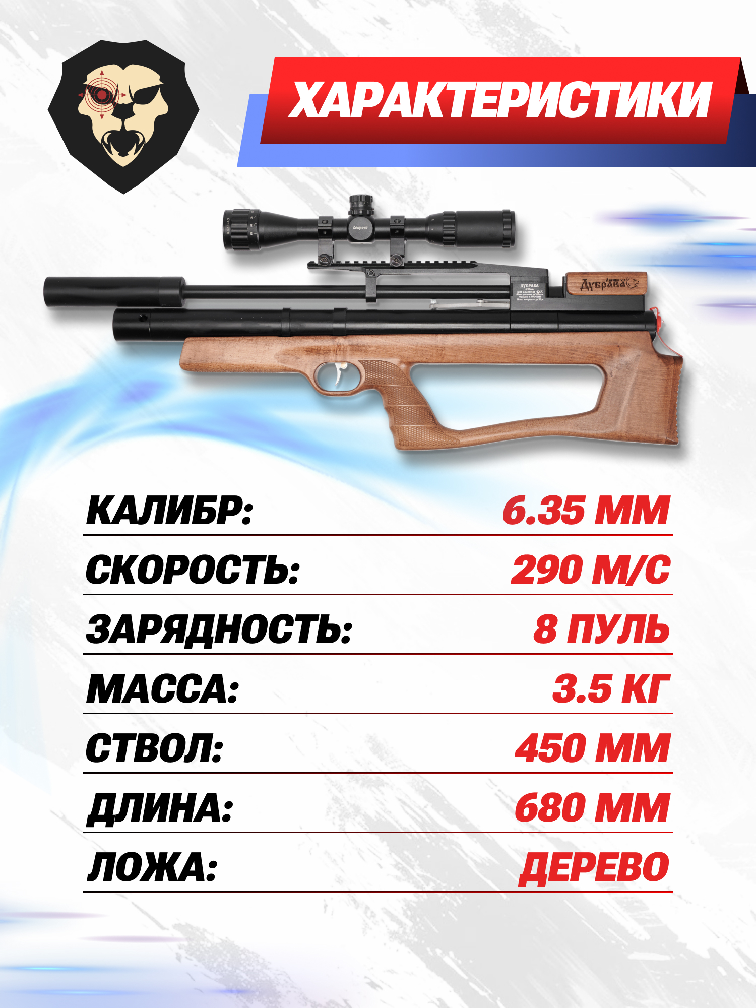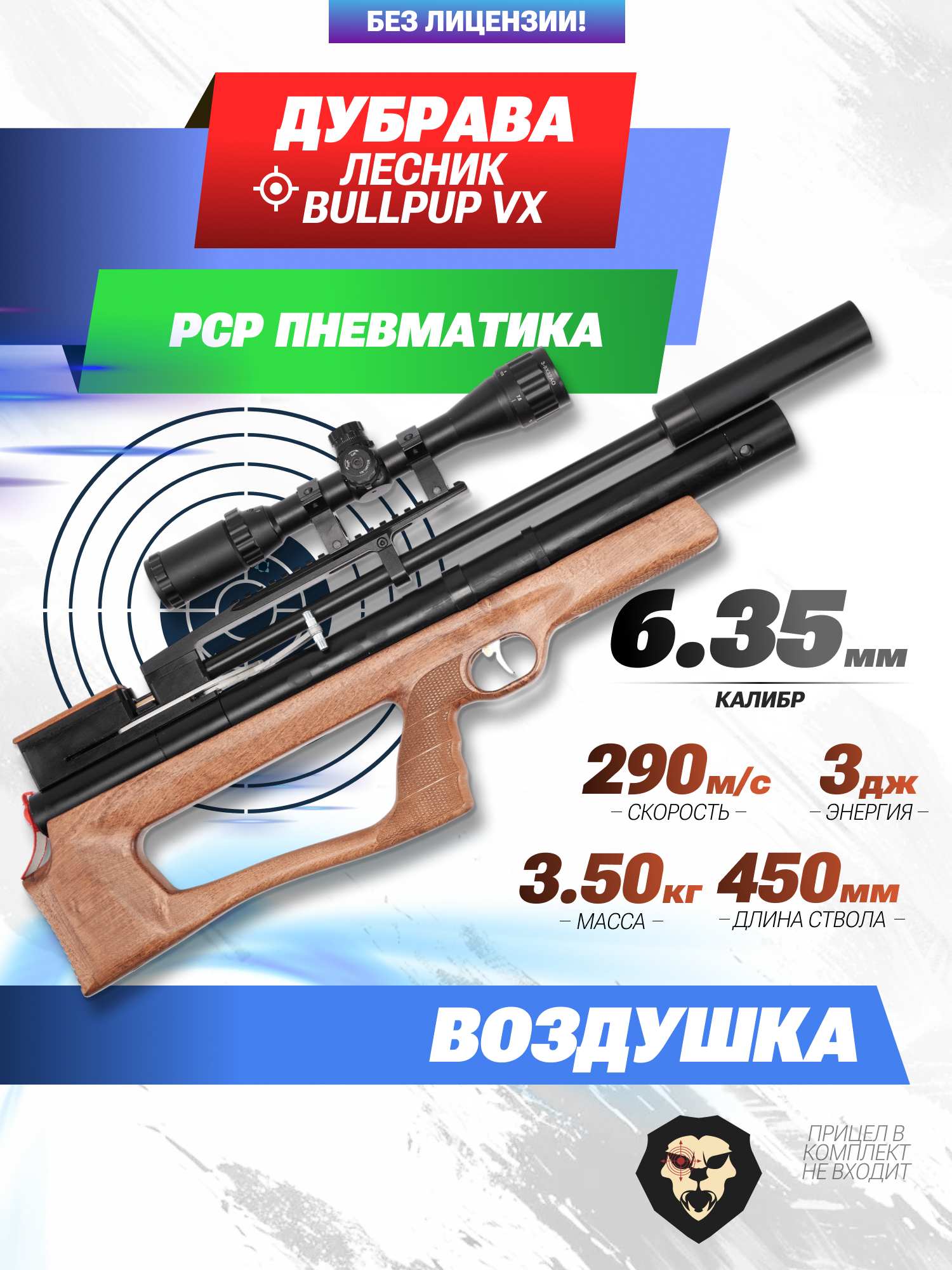 Пневматическая винтовка Дубрава Лесник BullPup VX 6.35 мм (450 мм, дерево) купить в интернет-магазине Popadiv10.