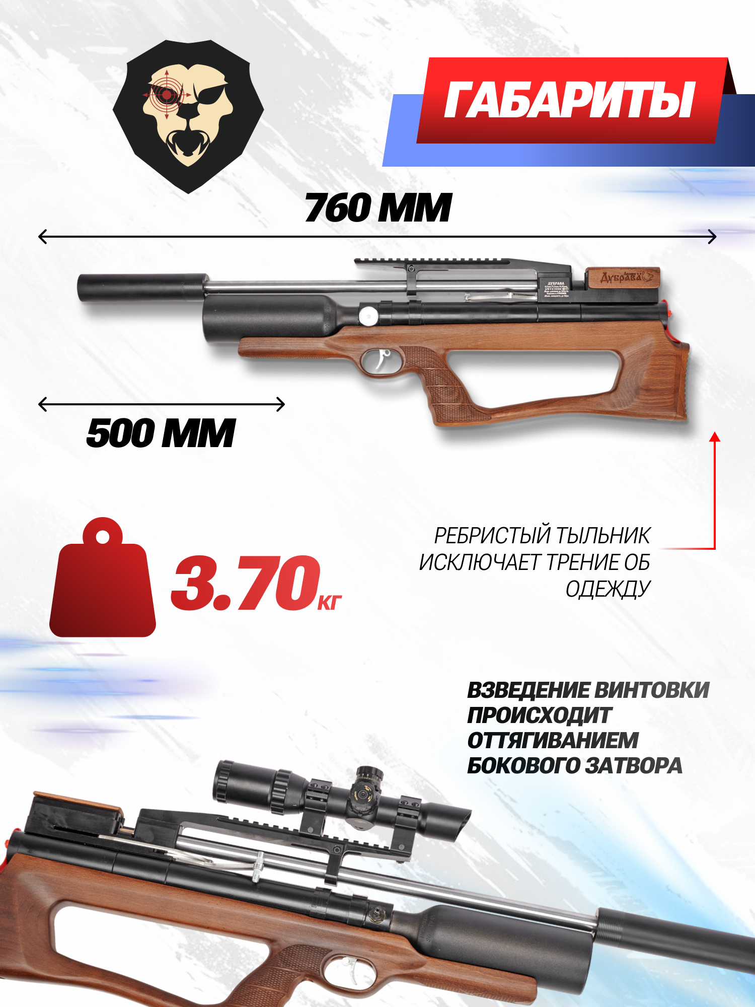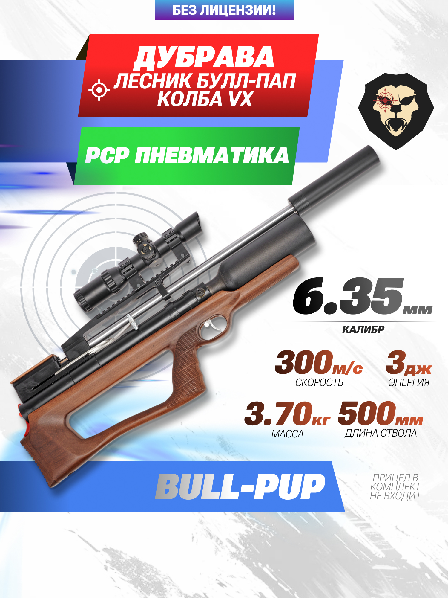 Пневматическая винтовка Дубрава Лесник Булл-Пап Колба VX 6.35 мм (500 мм, дерево) купить в интернет-магазине Popadiv10.