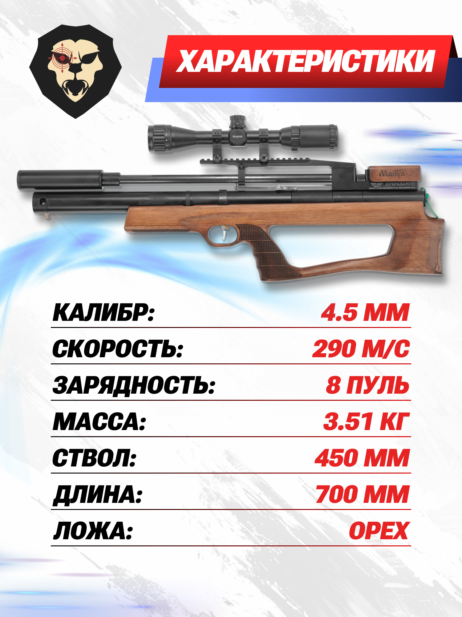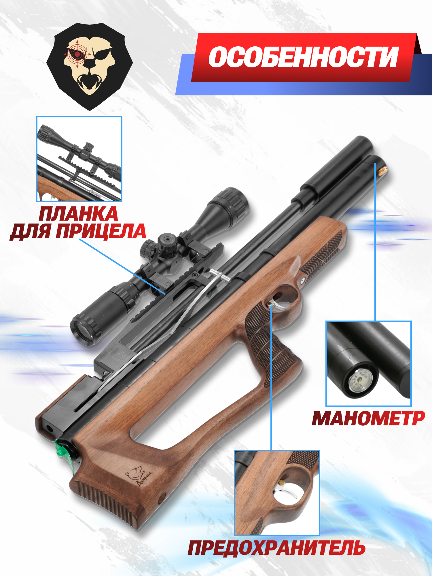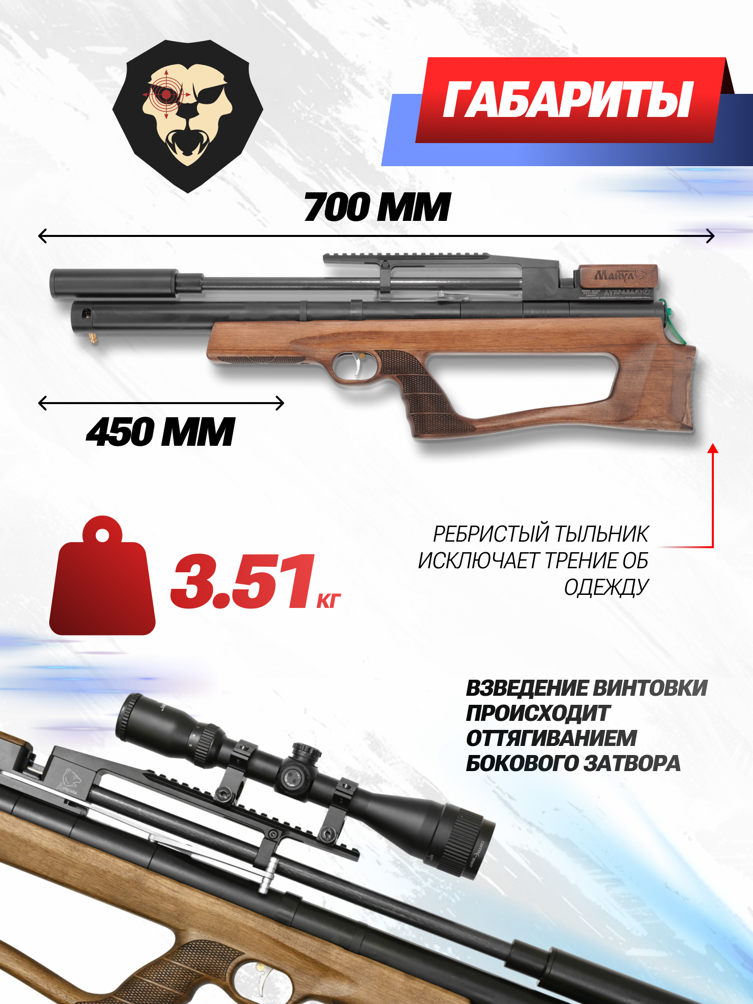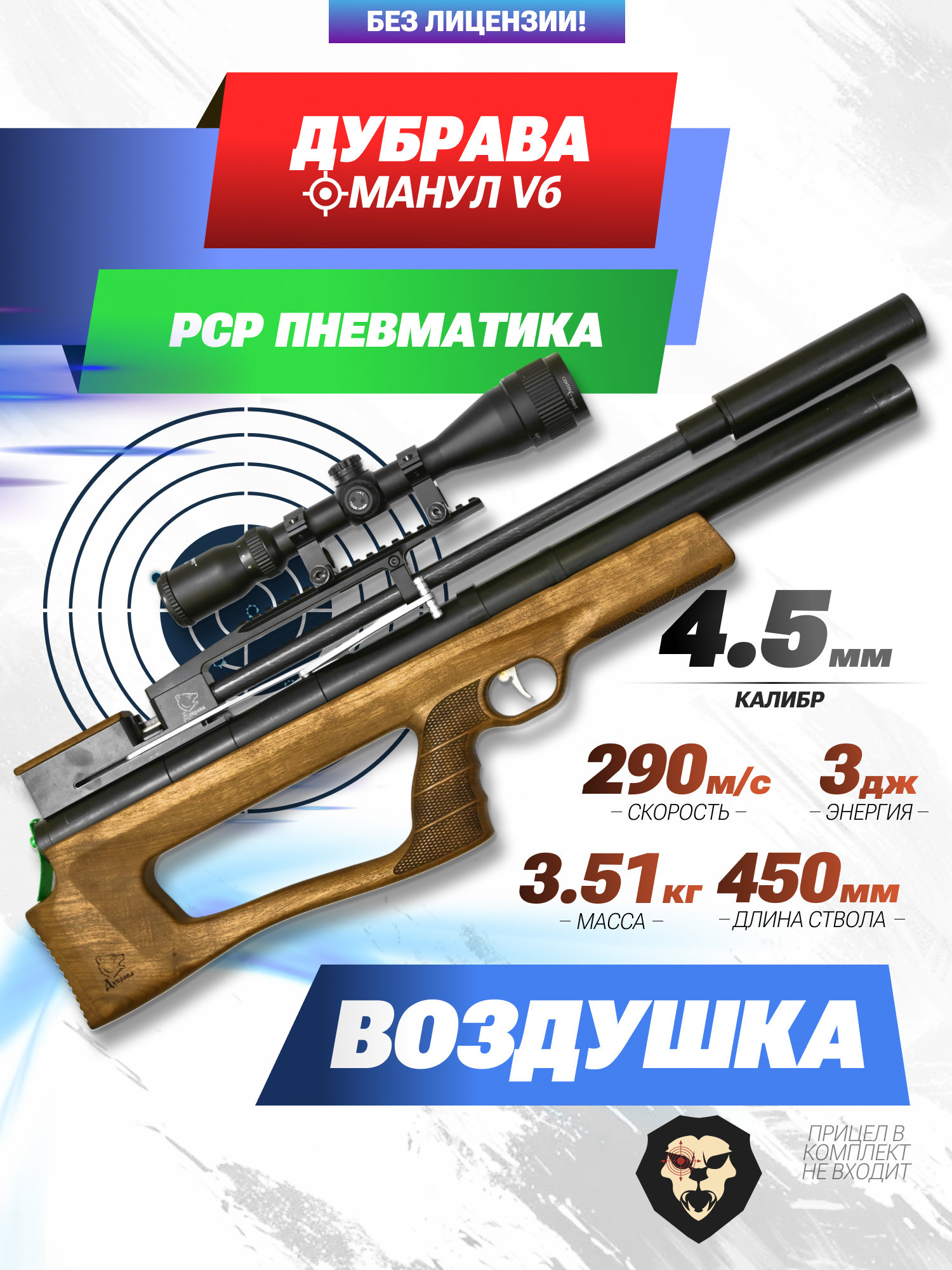 Пневматическая винтовка Дубрава Манул V6 4.5 мм (450 мм, буллпап, Орех) купить в интернет-магазине Popadiv10.