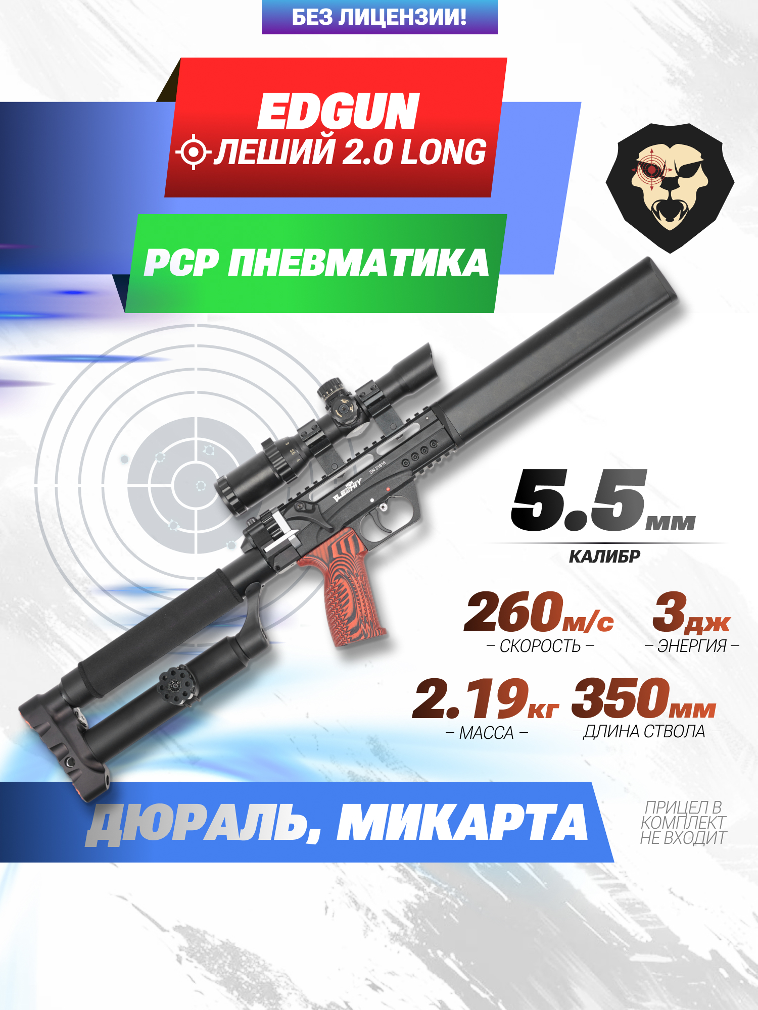 Пневматическая винтовка EDgun Леший 2.0 Long 5.5 мм (350 мм) купить в интернет-магазине Popadiv10.