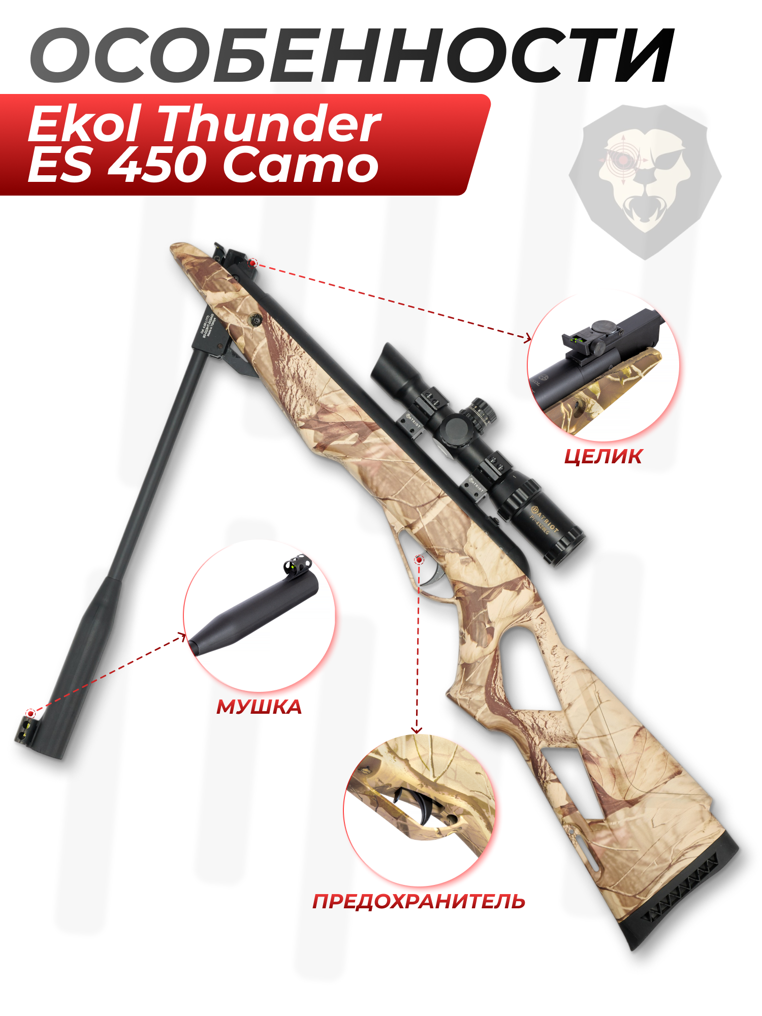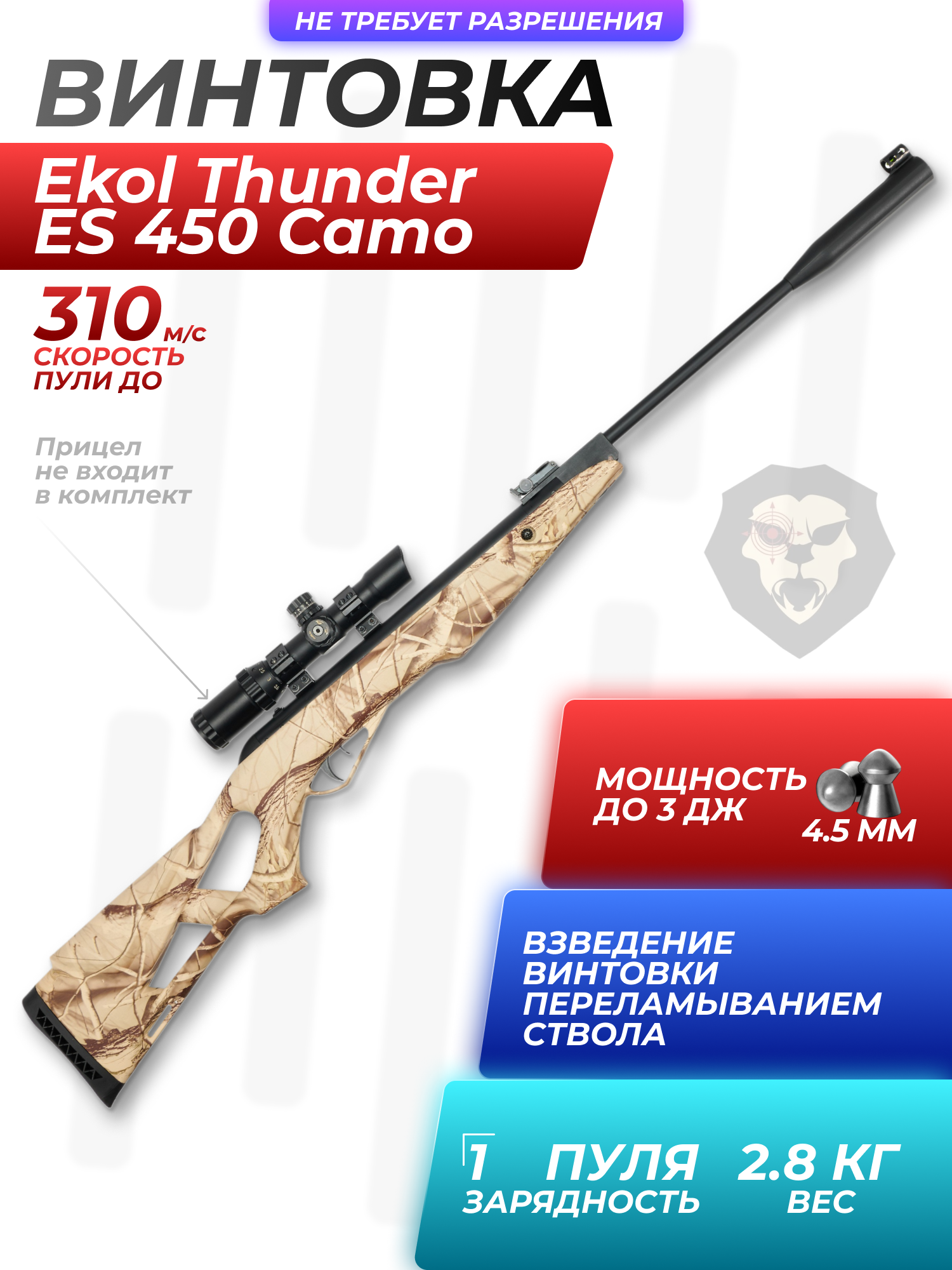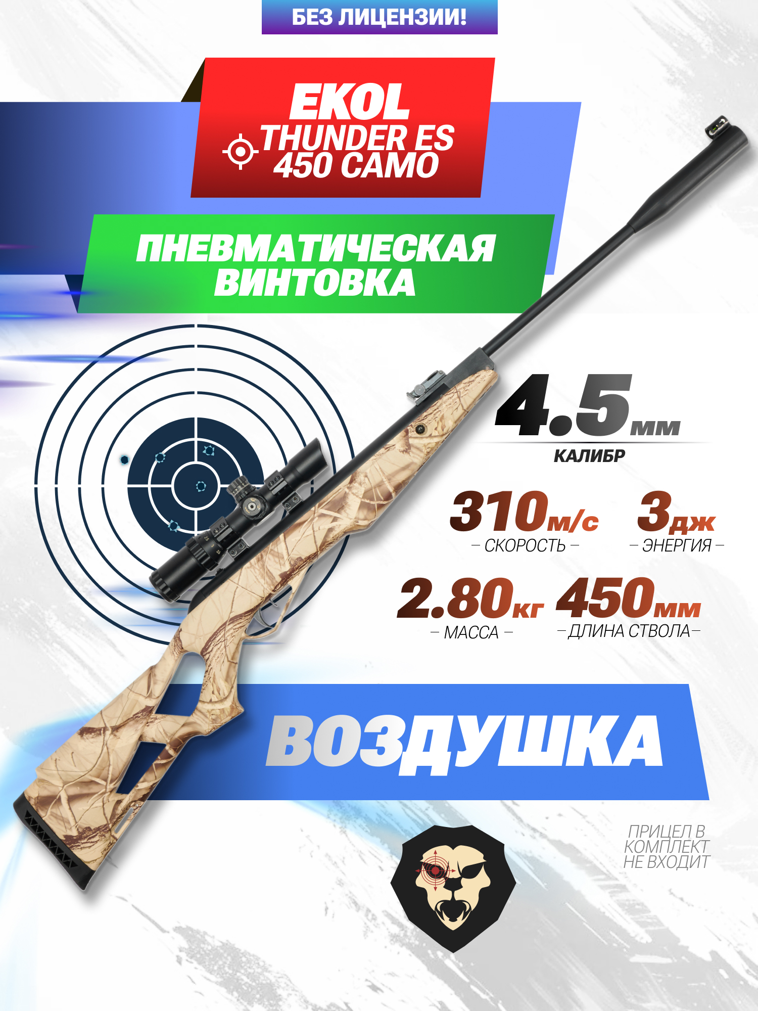 Пневматическая винтовка Ekol Thunder ES 450 Camo 4.5 мм (3 Дж) купить в интернет-магазине Popadiv10.