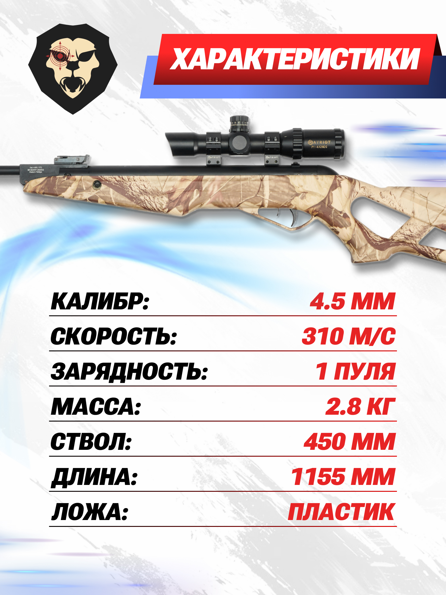 | Комплектация | Винтовка, упаковка, краткая документация, копия сертификата (по запросу покупателя) |