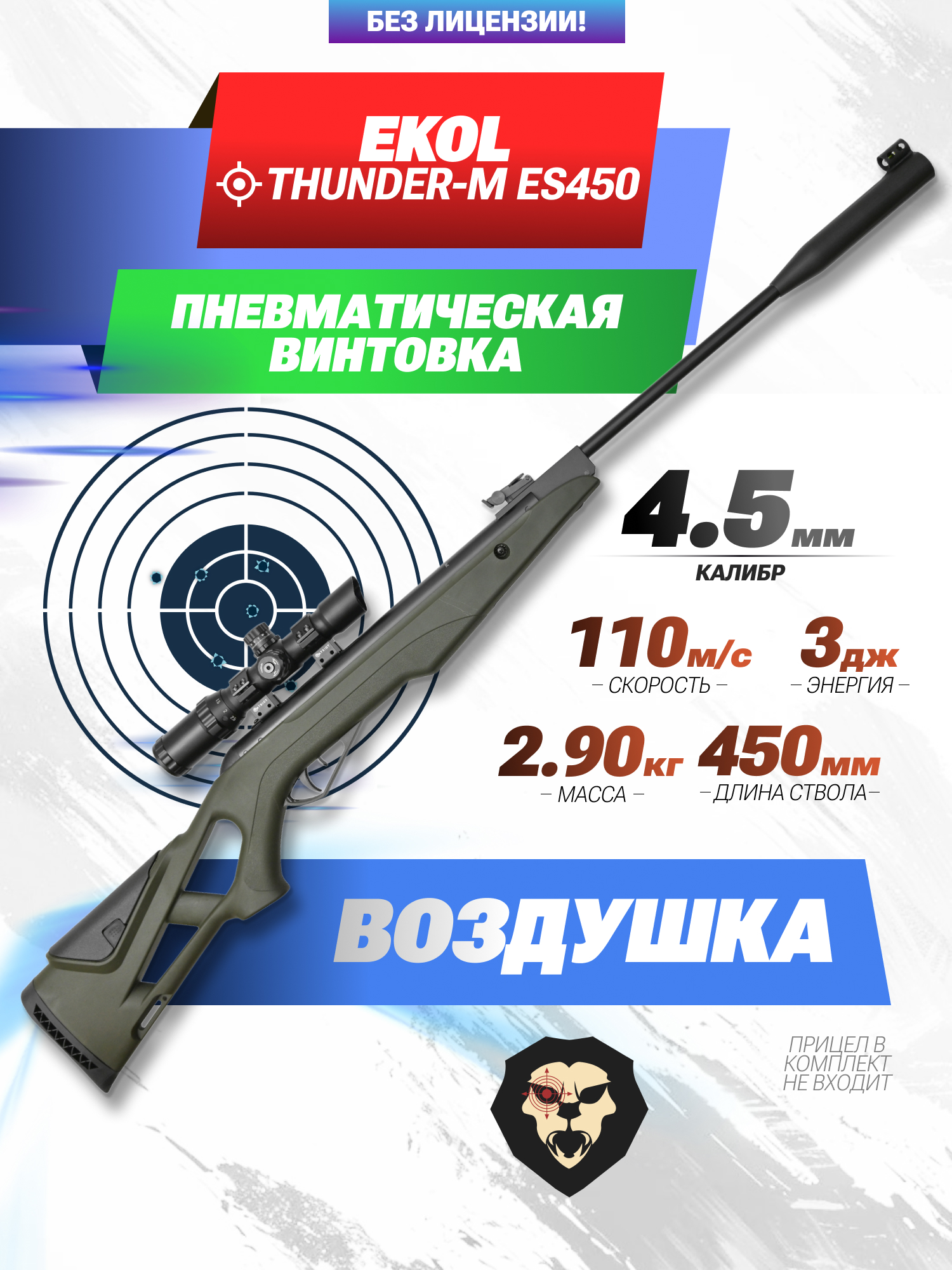 Пневматическая винтовка Ekol Thunder-M ES450 4.5 мм (3 Дж, хаки) купить в интернет-магазине Popadiv10.
