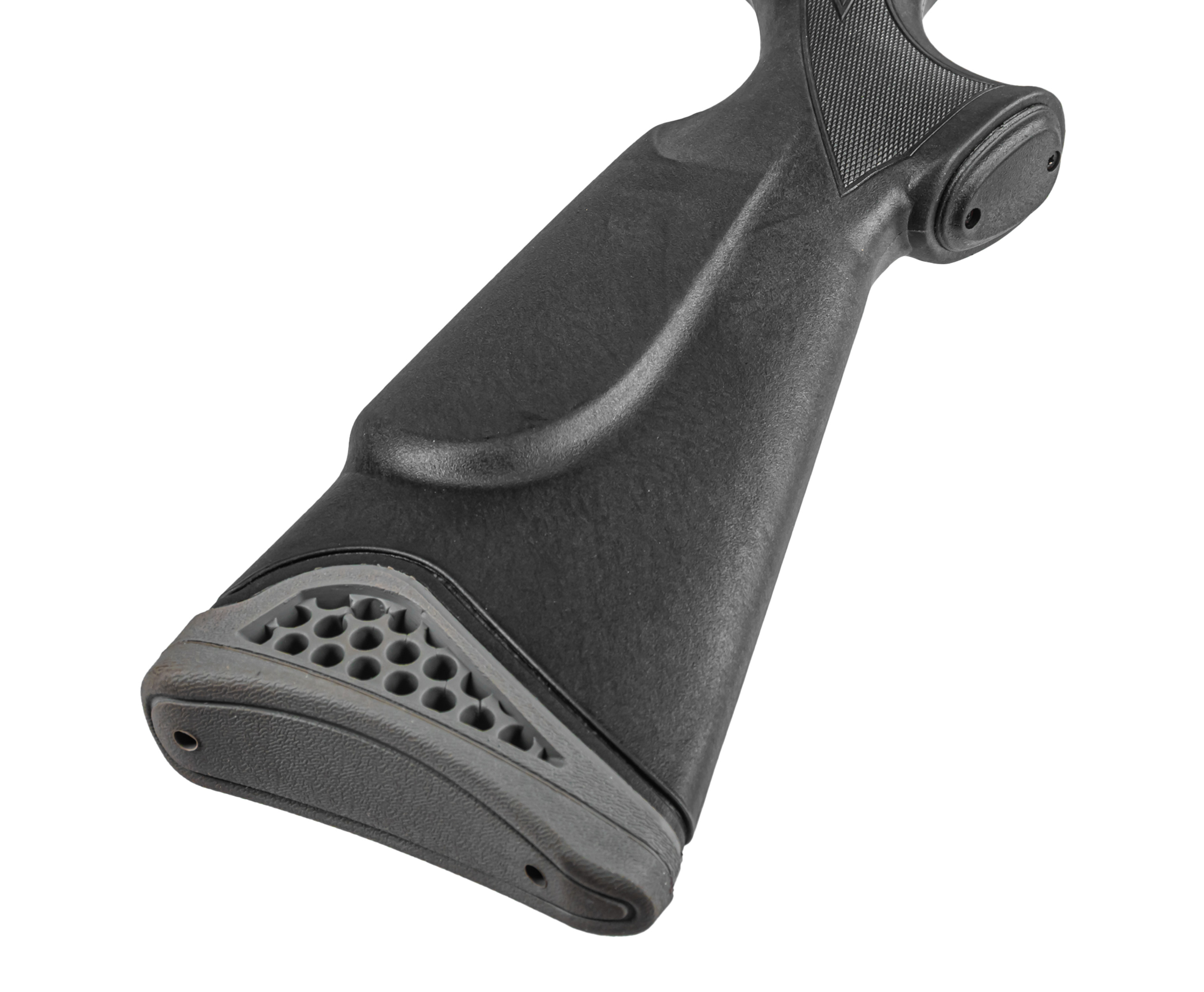 Отдельного упоминания заслуживает эргономика оружия. Винтовка выделяется приемлемым показателем массы с учетом общей длины 124 сантиметра - этого удалось достичь за счет внедрения ложи из современного легкого и прочного полимера. Комфорт вкладки обеспечивается подщечником и резиновым тыльником со сменными проставками, регулирующими длину приклада.