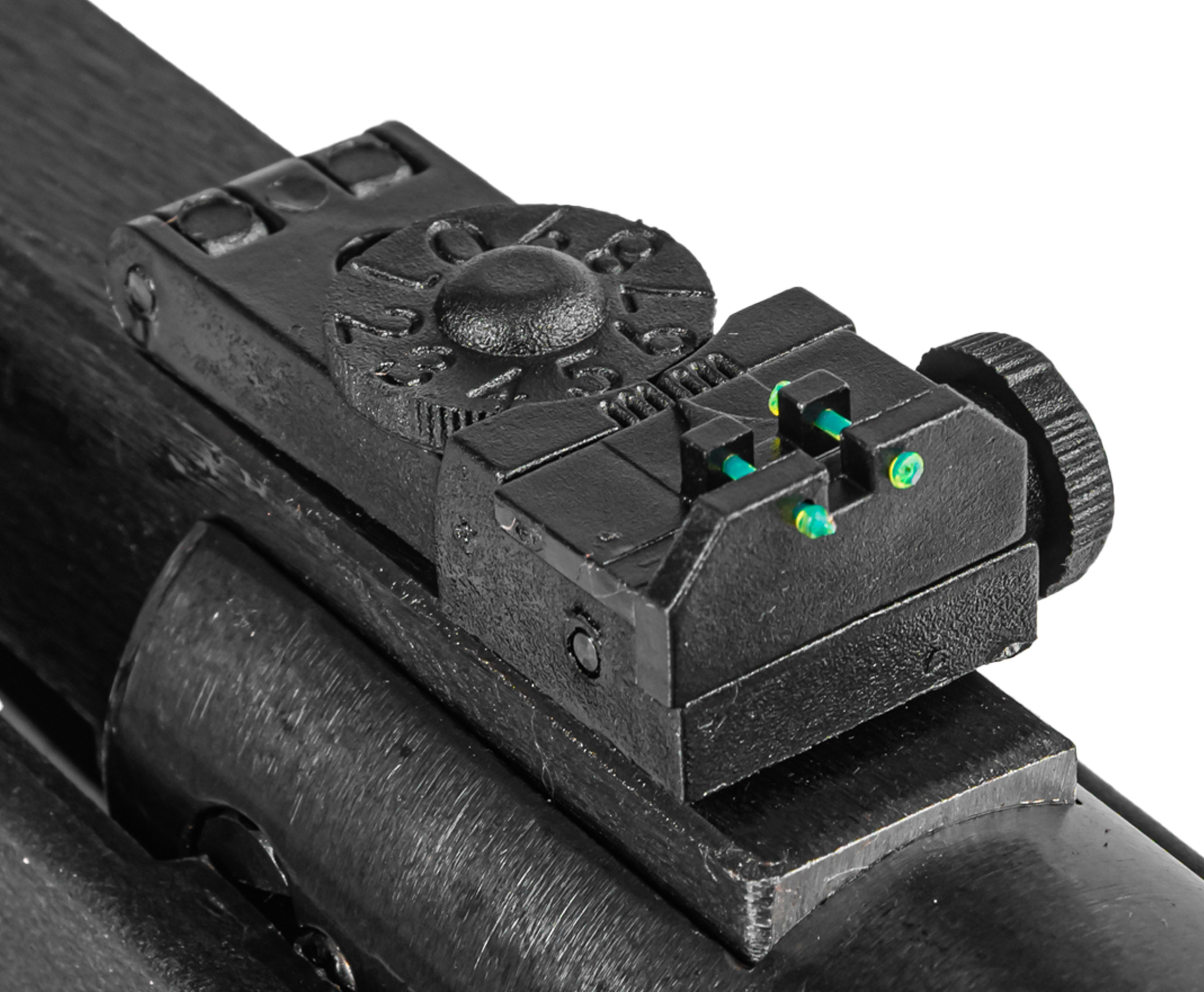 Тем самым, открывается доступ к размещению чувствительной оптики без риска ее выхода из строя. Снайперский прицел предпочитаемой кратности монтируется на комбинированную планку, сочетающую пазы Пикатинни и «Ласточкиного хвоста». По умолчанию также предусмотрены стандартные приспособления в виде мушки и целика со светоотражающими вставками из фибергласса.