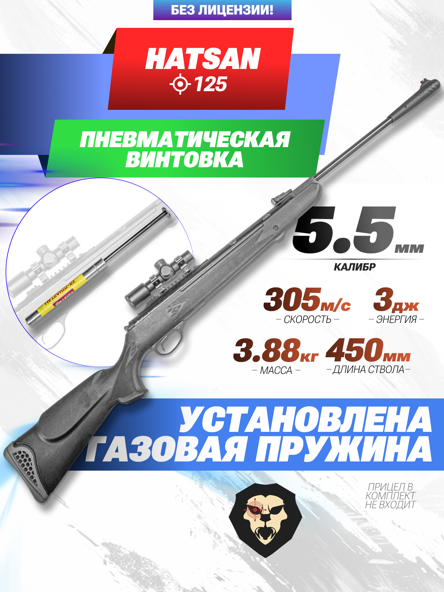 Пневматическая винтовка Hatsan 125 5.5 мм (пластик, газовая пружина) купить в интернет-магазине Popadiv10.