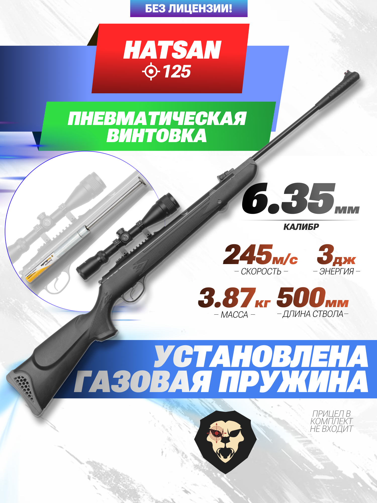Пневматическая винтовка Hatsan 125 6.35 мм (пластик, газовая пружина) купить в интернет-магазине Popadiv10.