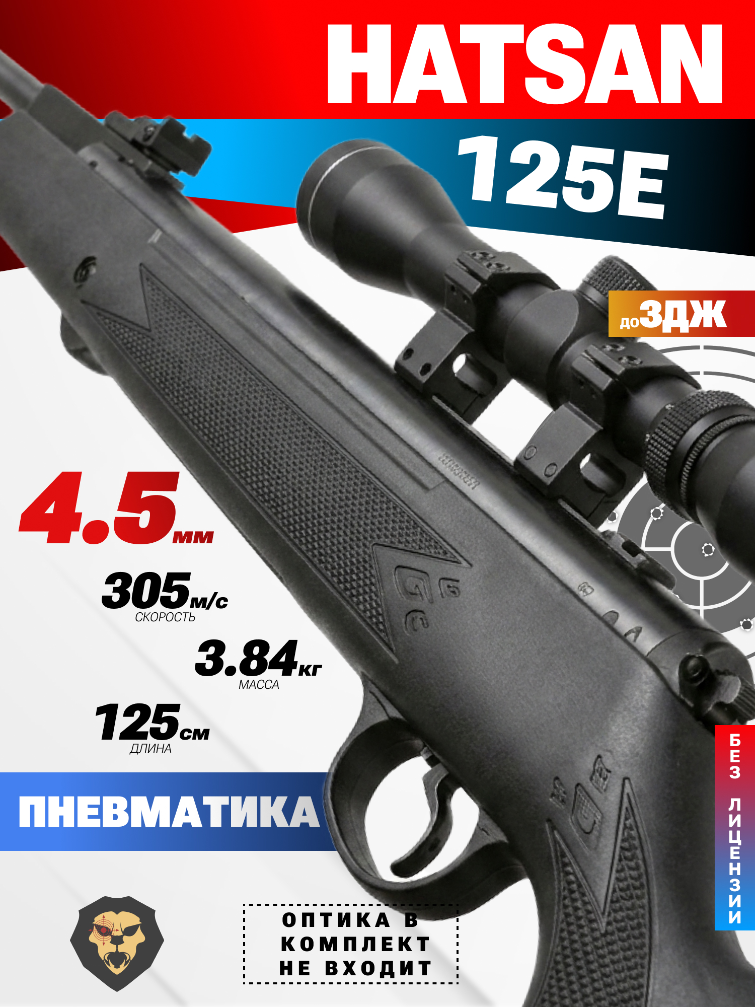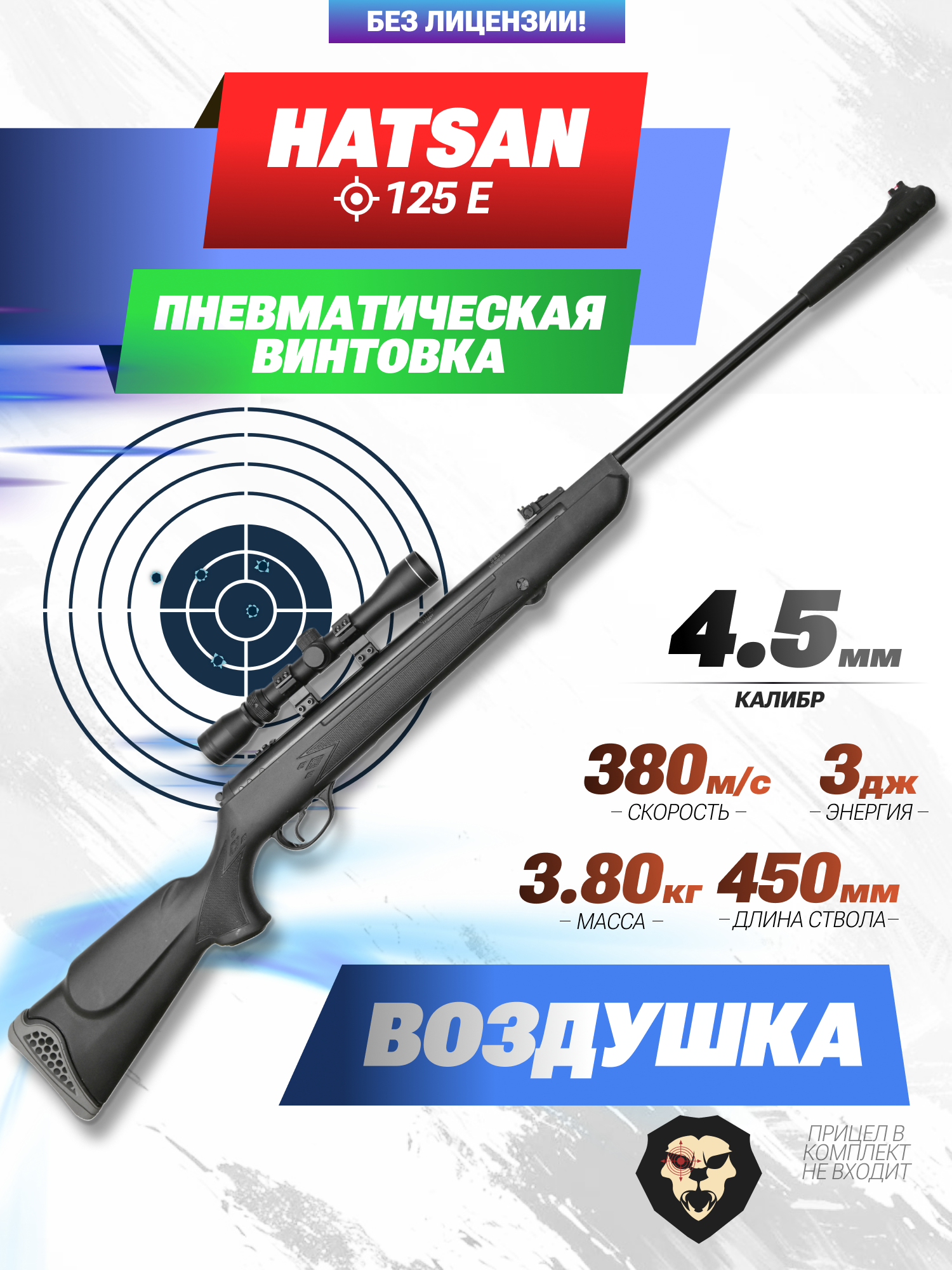 Информация о товаре "Пневматическая винтовка Hatsan 125 E 4.5 мм (3 Дж)" носит ознакомительный характер, и не является публичной офертой, определяемой положениями Статьи 437 Гражданского кодекса Российской Федерации, характеристики, внешний вид, цвет и комплектация могут быть изменены производителем без уведомления.