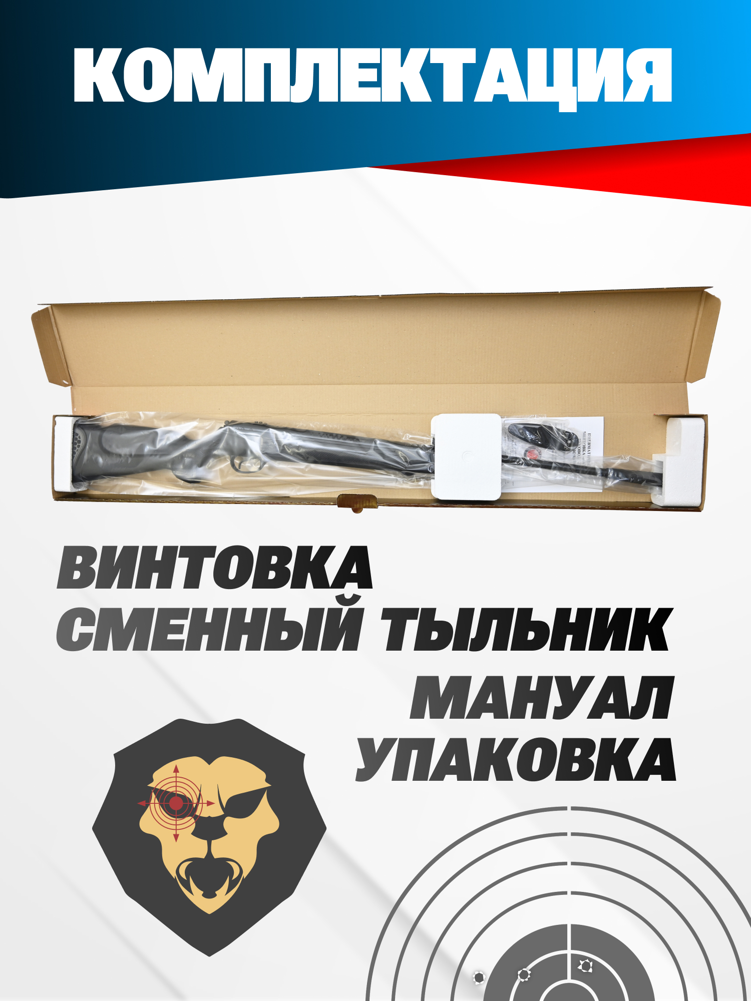 | Комплектация | Винтовка, упаковка, краткая документация, копия сертификата (по запросу покупателя), вставки для приклада |