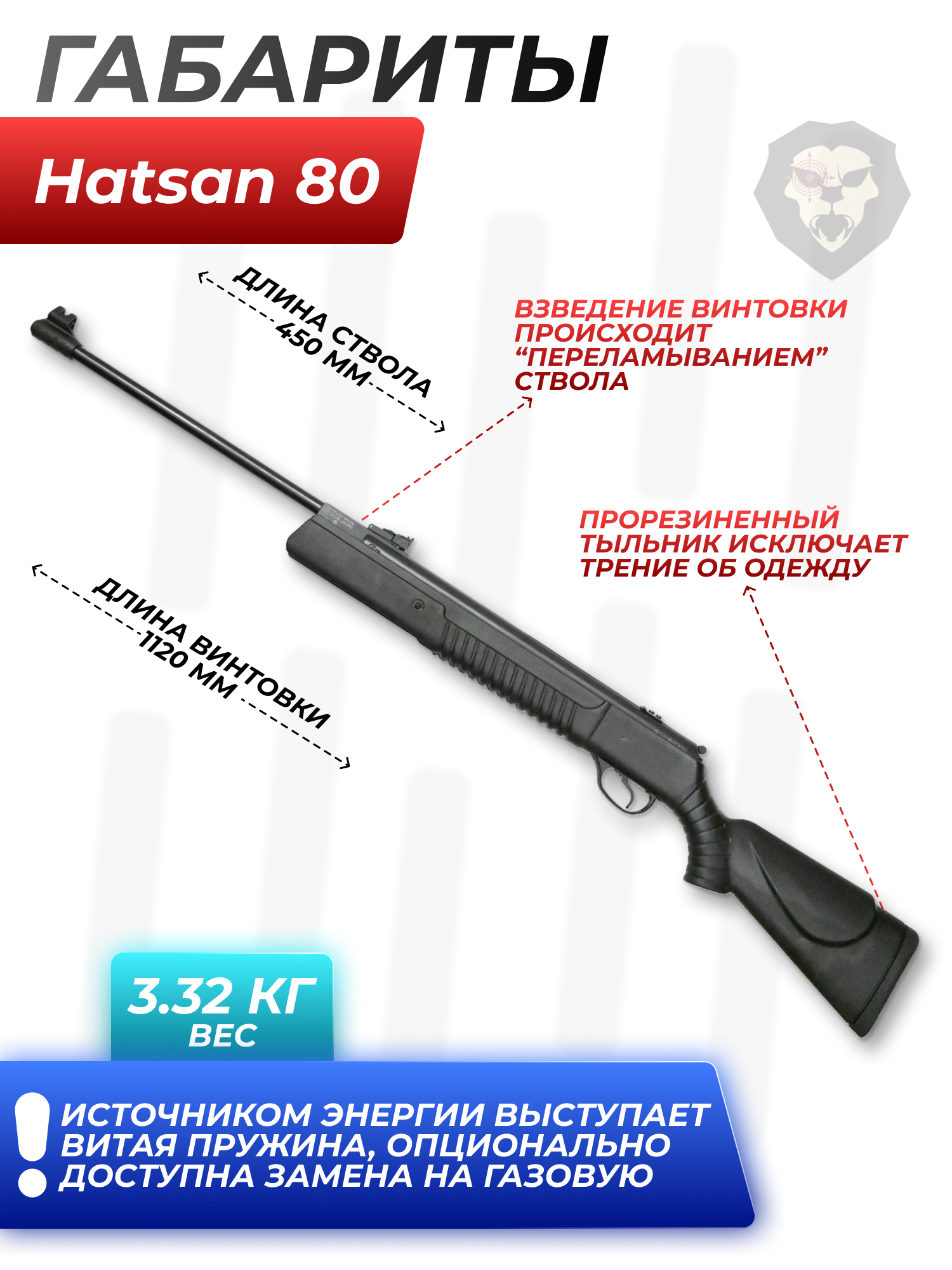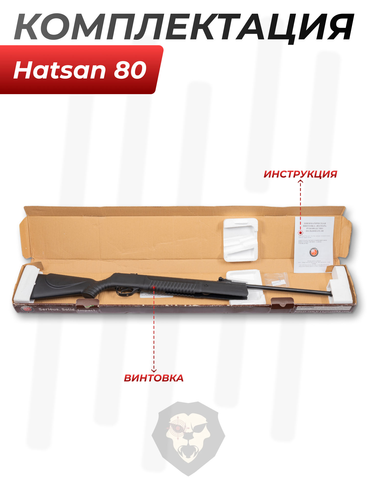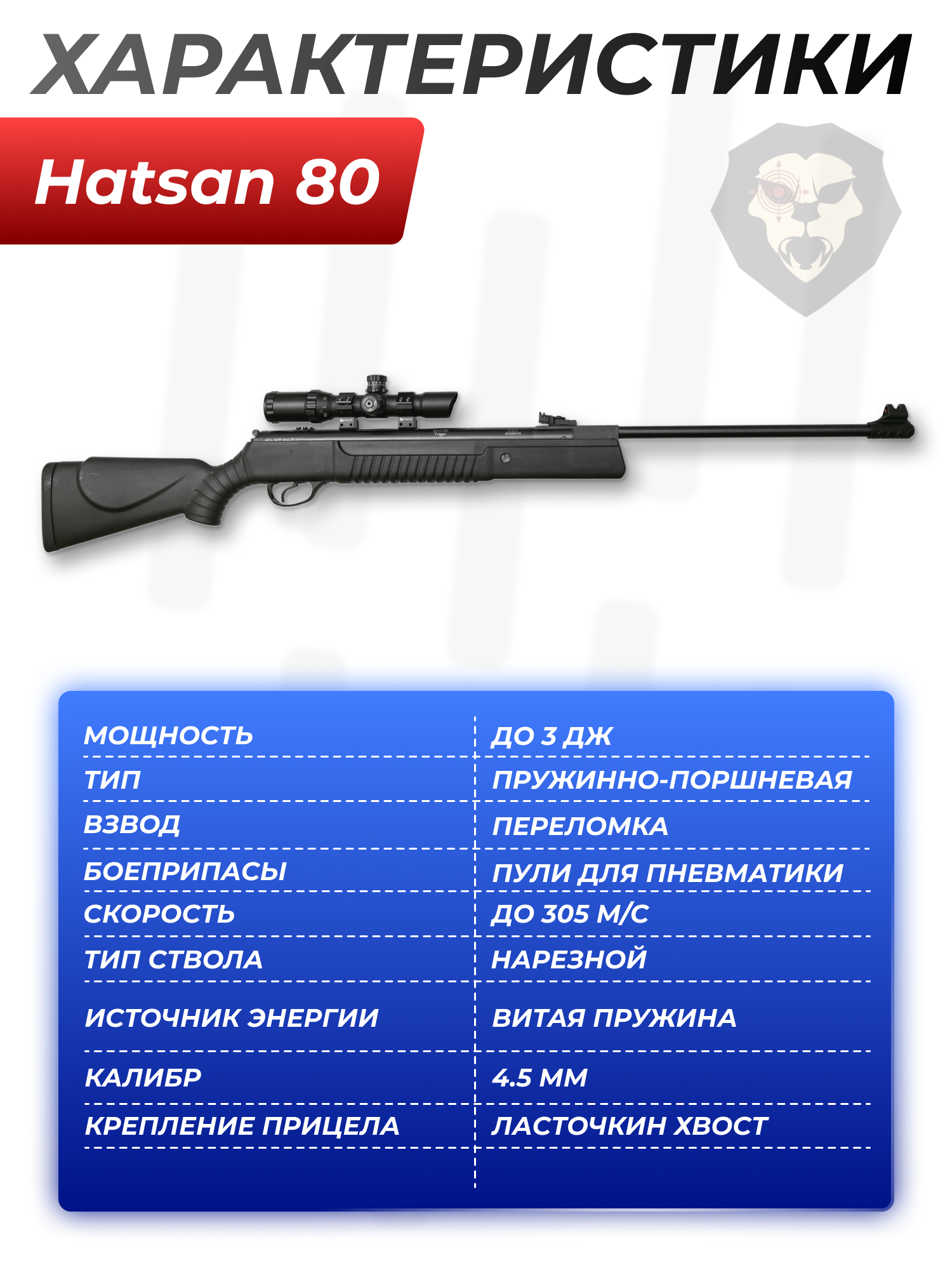 Информация о товаре "Пневматическая винтовка Hatsan 80 4.5 мм (3 Дж, переломка)" носит ознакомительный характер, и не является публичной офертой, определяемой положениями Статьи 437 Гражданского кодекса Российской Федерации, характеристики, внешний вид, цвет и комплектация могут быть изменены производителем без уведомления.