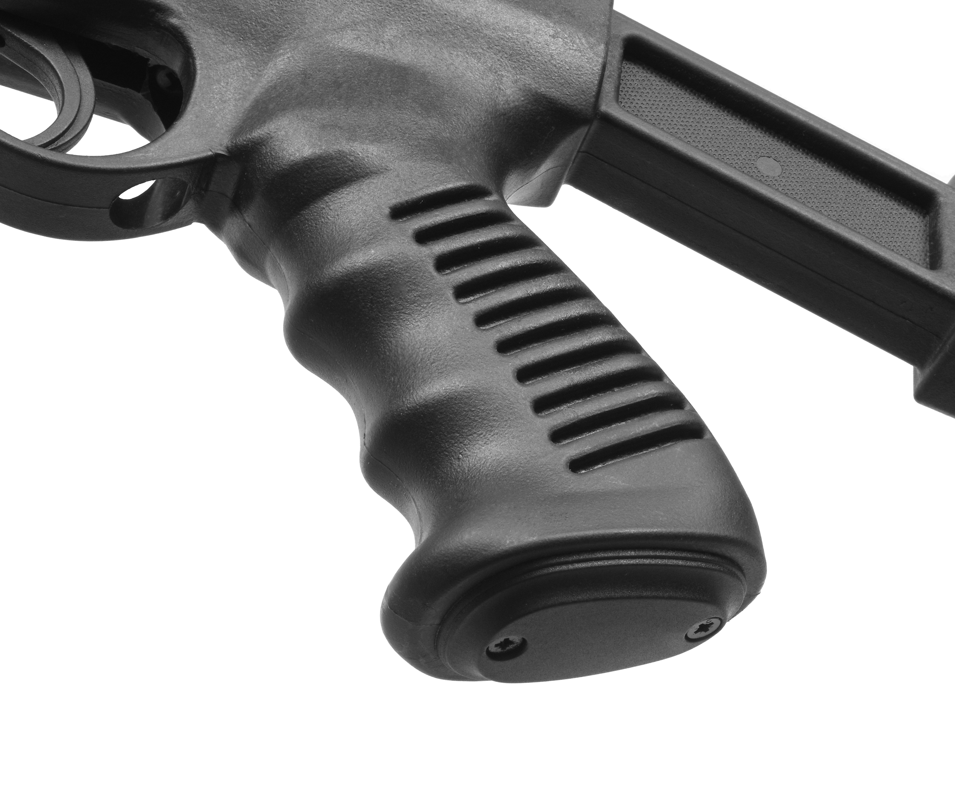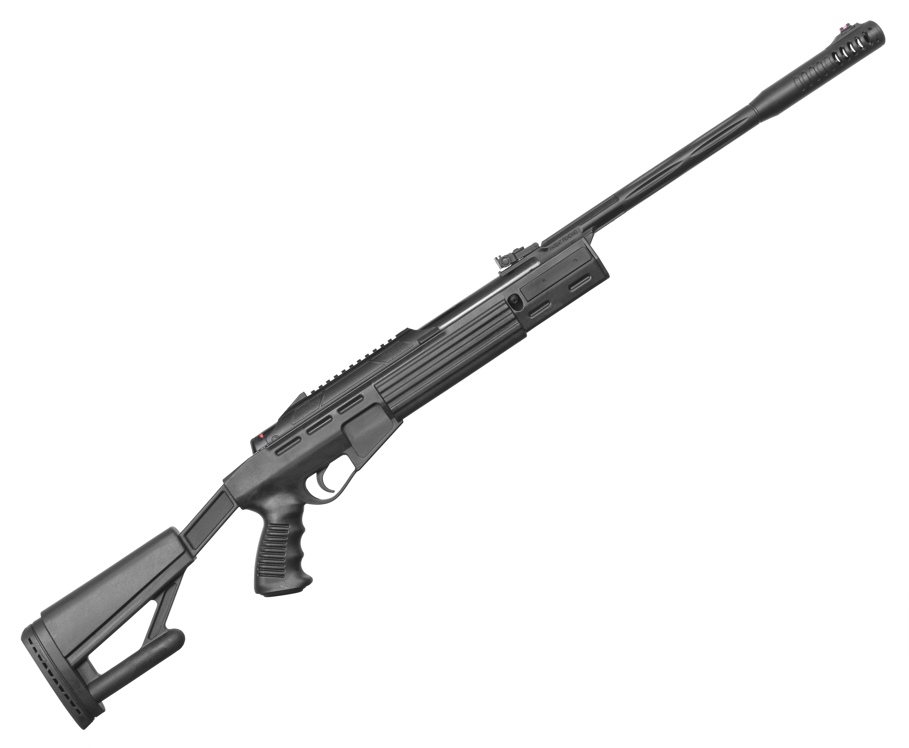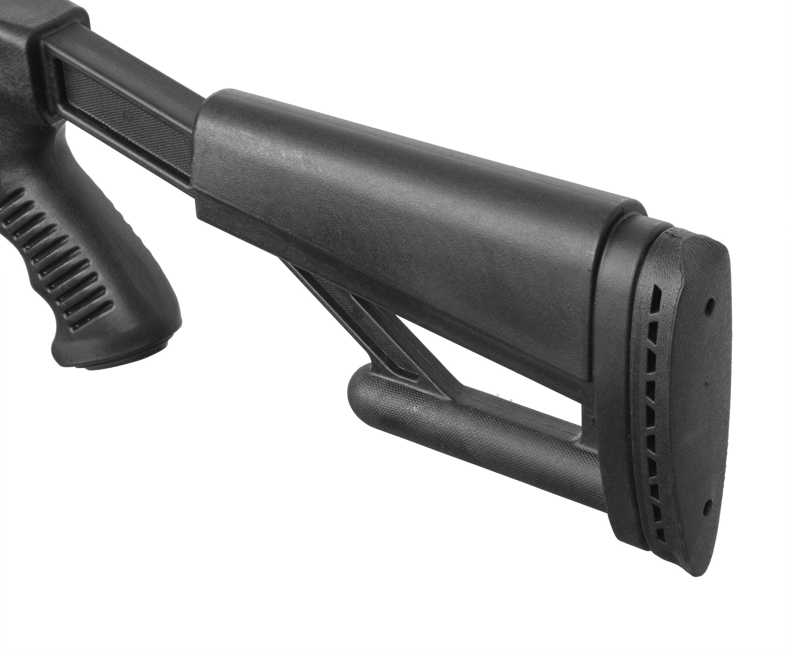 Винтовка пневматическая Hatsan калибр 4.5 миллиметров также интересна изменившейся эргономикой, чего получилось добиться за счет обращения к пистолетной рукоятке и телескопическому прикладу. Последний упрощает подгонку воздушки под рост. На поверхности фурнитуры присутствует противоскользящая текстура, повышающая уровень сцепления оружия с руками.