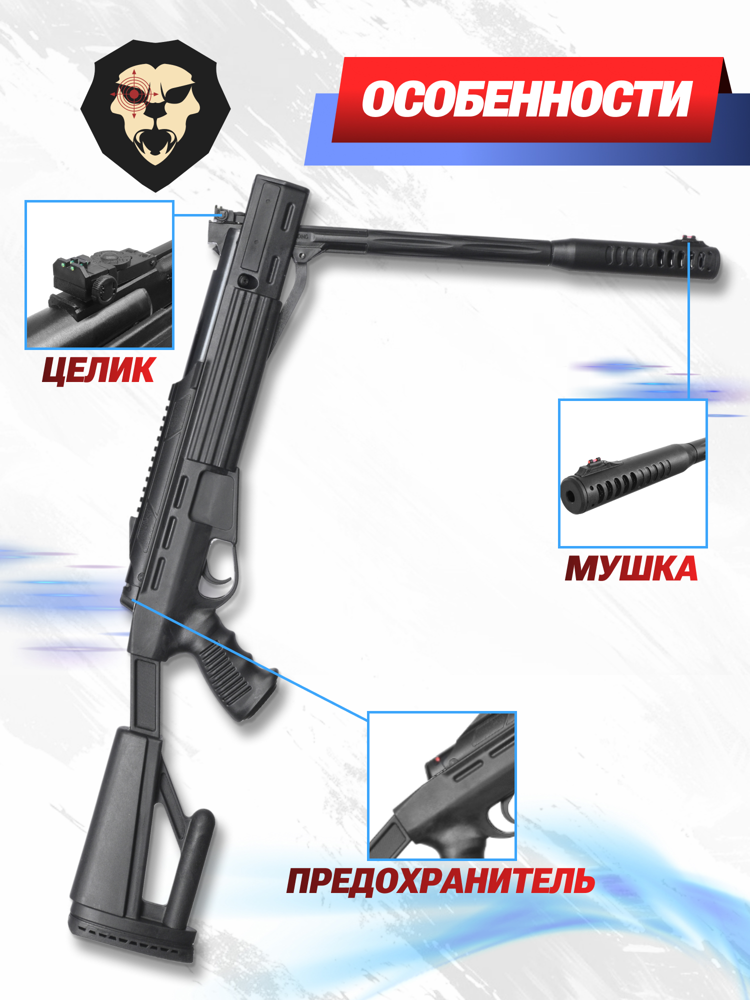 Внимание! Данная модель поставляется в разрешенной мощности для свободного приобретения на территории Российской Федерации. При этом в модели имеется возможность увеличения мощности путем замены части деталей или настройки конструкции, однако не стоит забывать о Федеральном законе «Об оружии» № 150 - ФЗ. В случае необходимости, опираясь на данный закон и руководствуясь им, возможно, потребуется получить разрешение от ЛЛР ГУ МВД России после вмешательства в конструкцию.