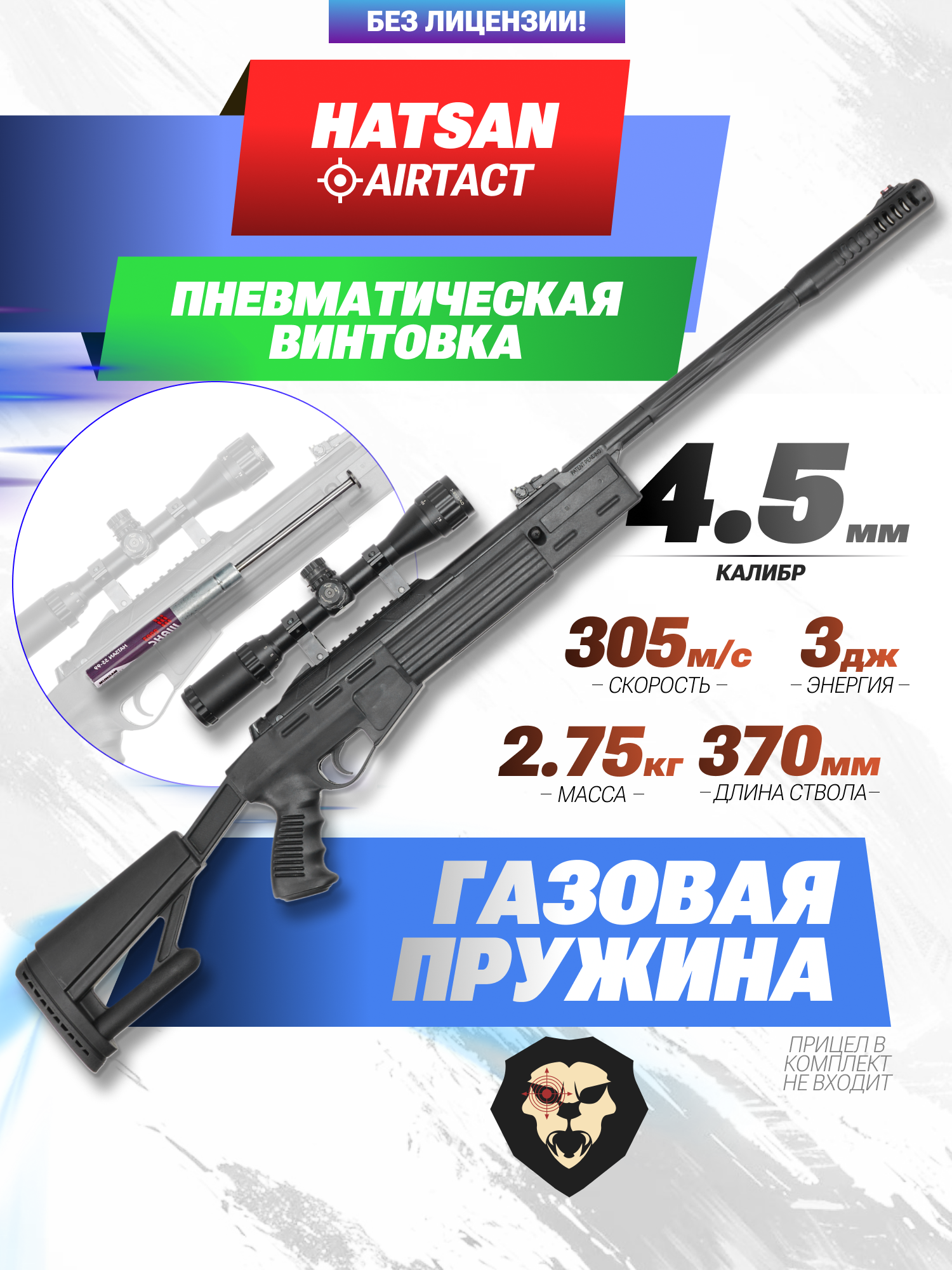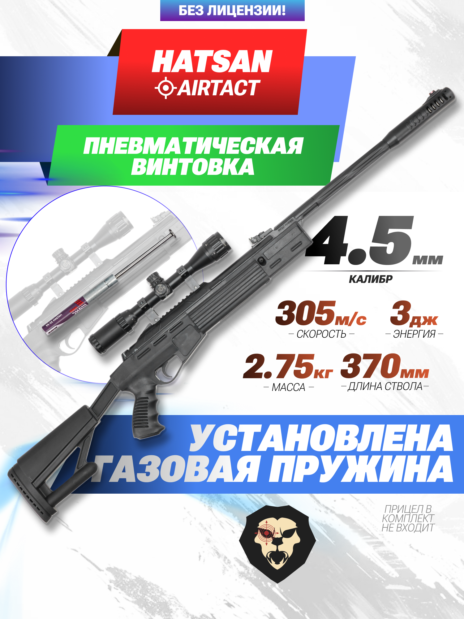 Информация о товаре "Пневматическая винтовка Hatsan Airtact 4.5 мм (переломка, газовая пружина, 3 Дж)" носит ознакомительный характер, и не является публичной офертой, определяемой положениями Статьи 437 Гражданского кодекса Российской Федерации, характеристики, внешний вид, цвет и комплектация могут быть изменены производителем без уведомления.