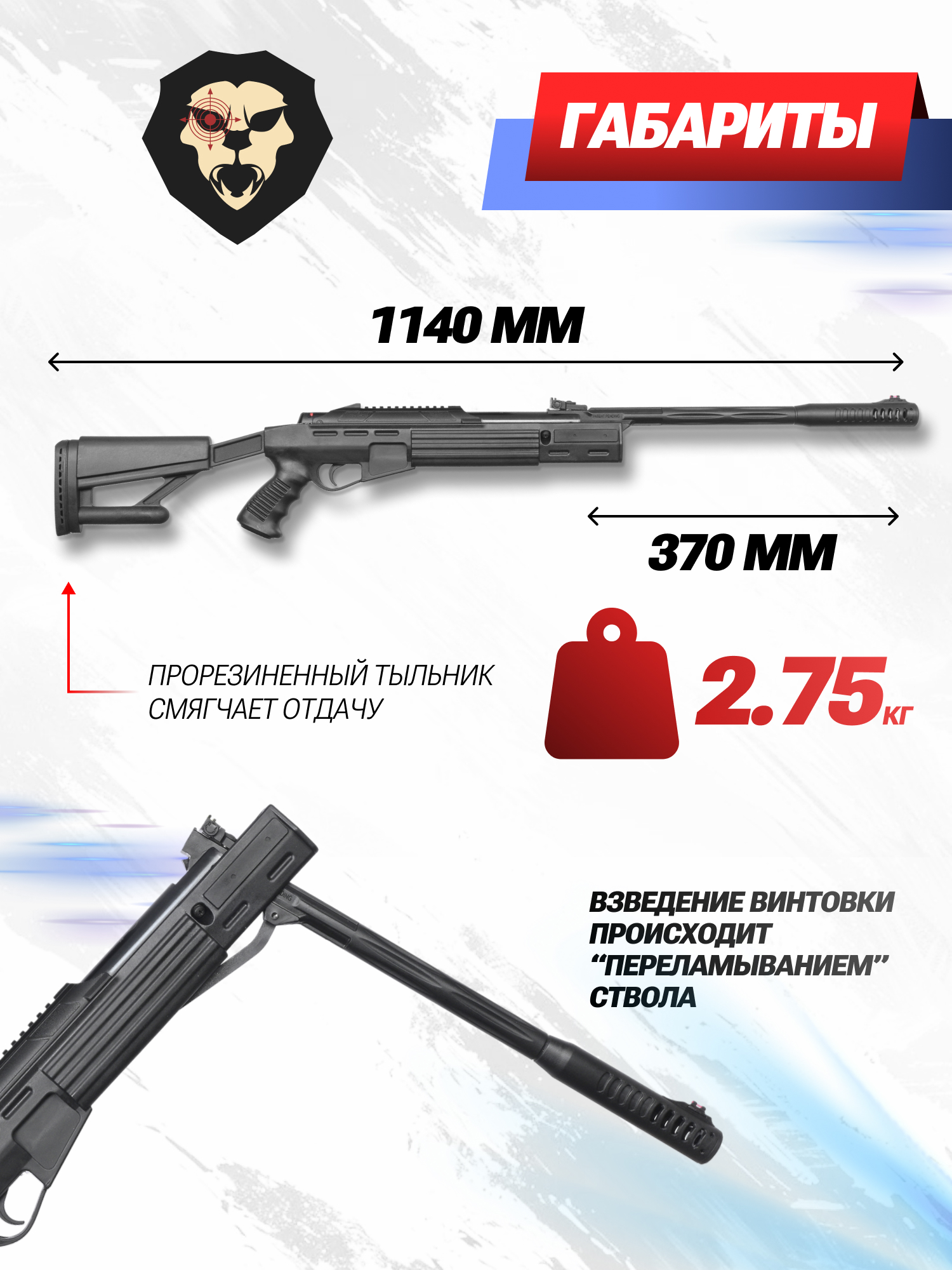 | Источник энергии | Газовая пружина, взвод "переламыванием" ствола |