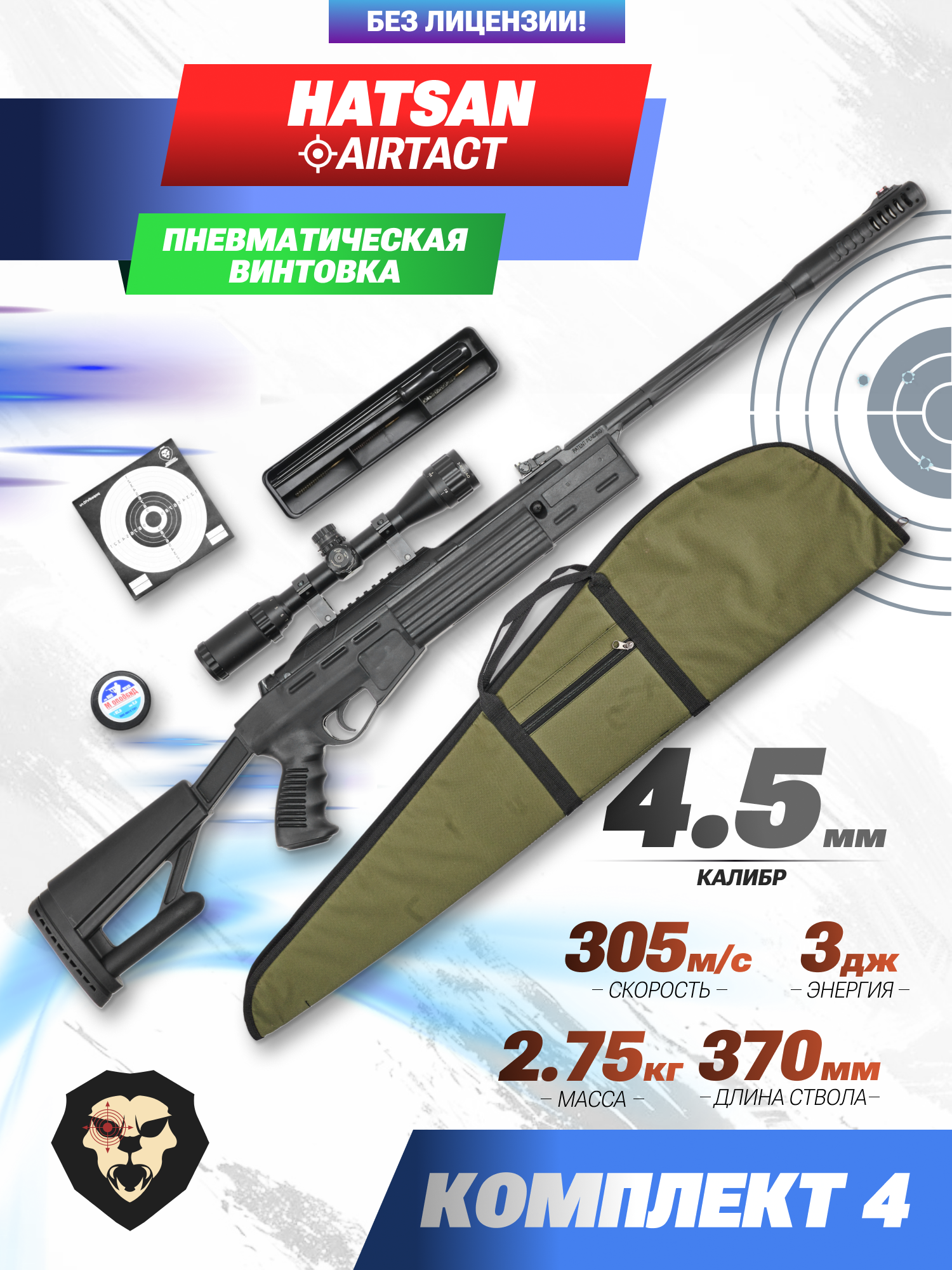 Пневматическая винтовка Hatsan Airtact 4.5 мм подарочный набор Hunter №4 (прицел, кольца, чехол, набор для чистки, мишени, пули) купить в интернет-магазине Popadiv10.