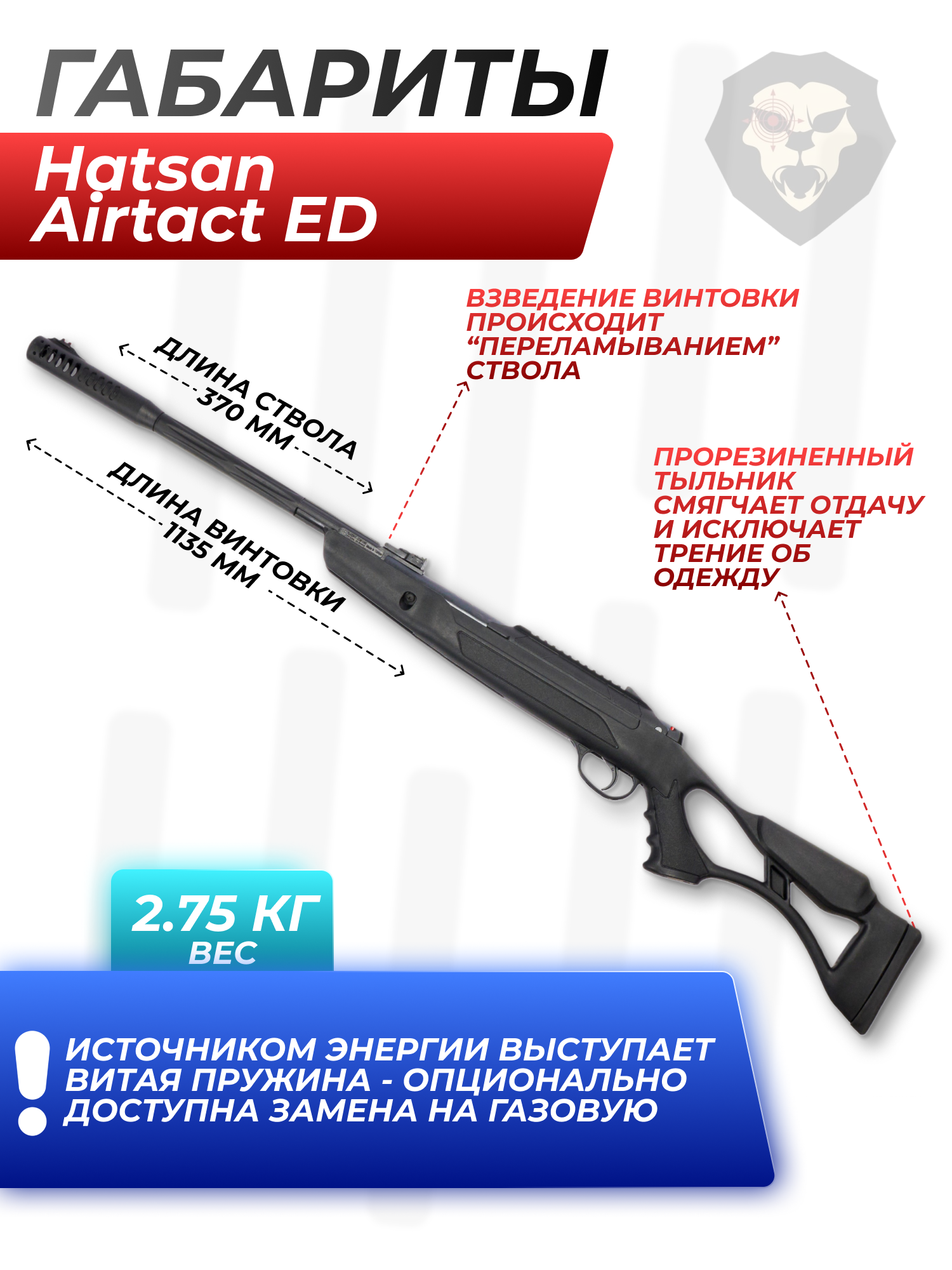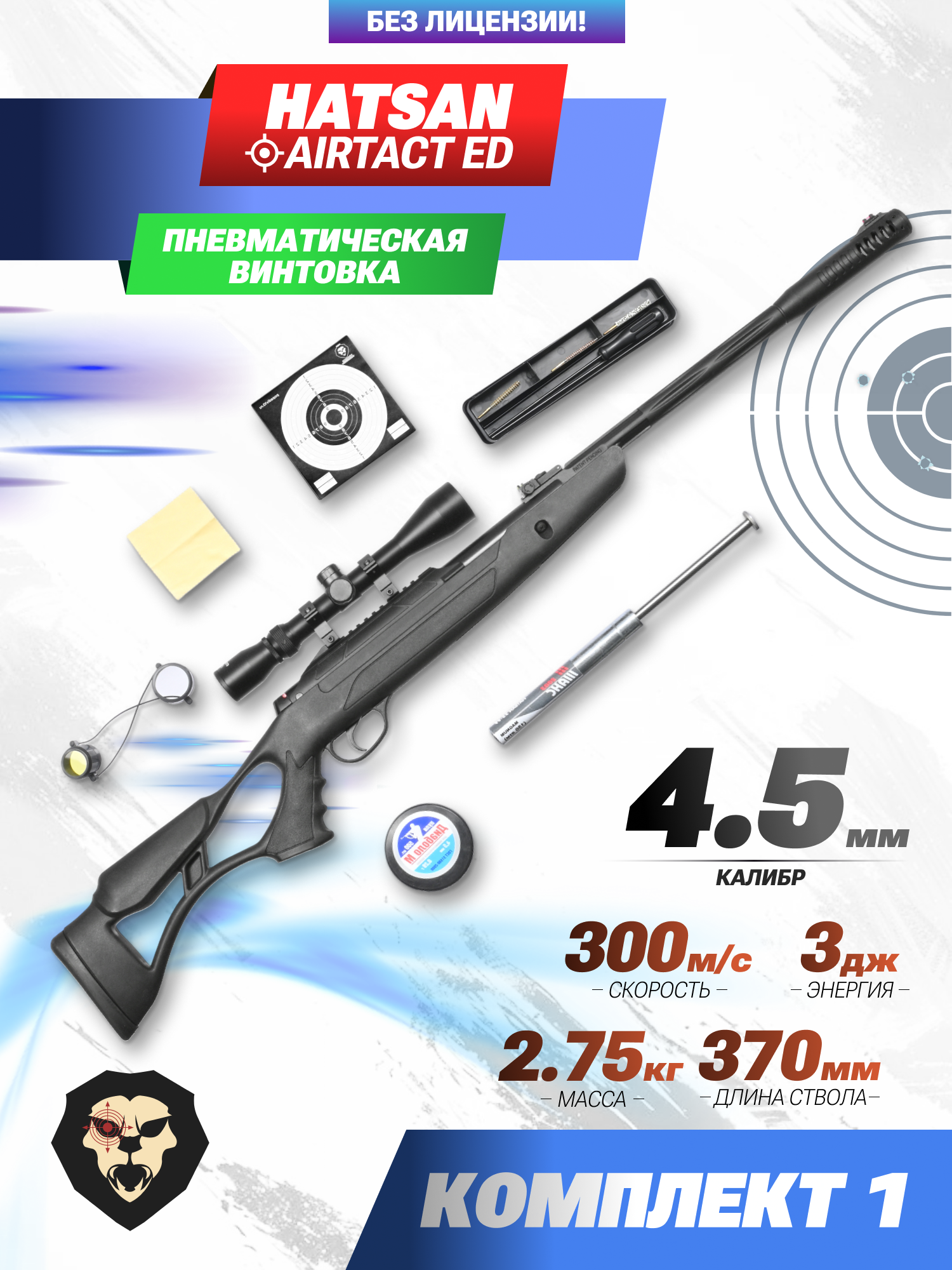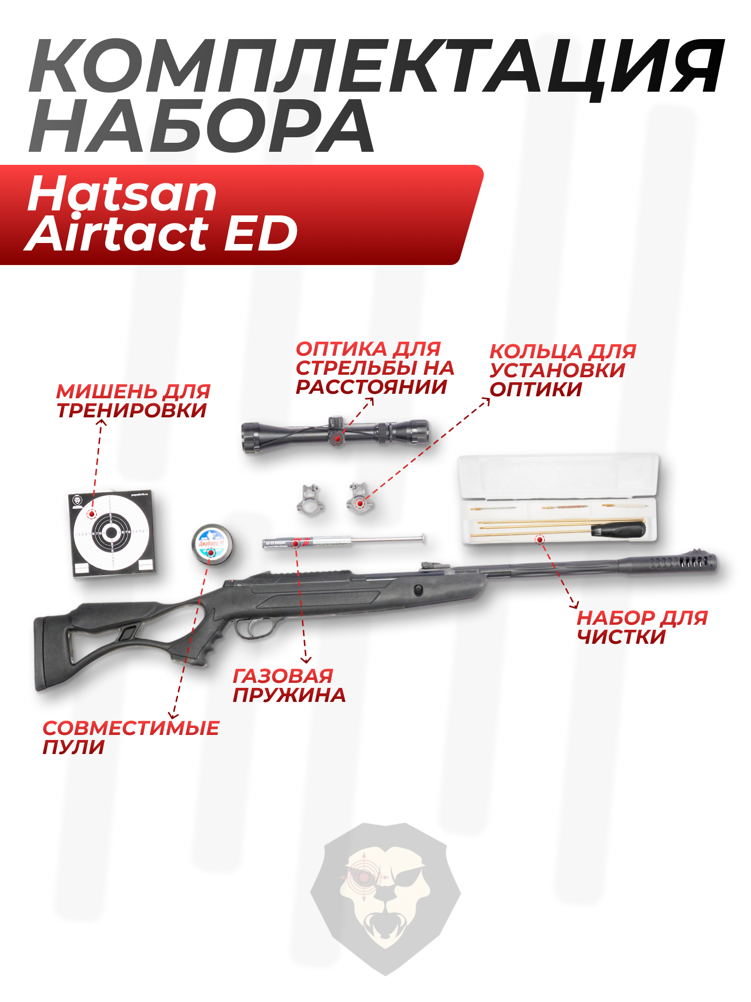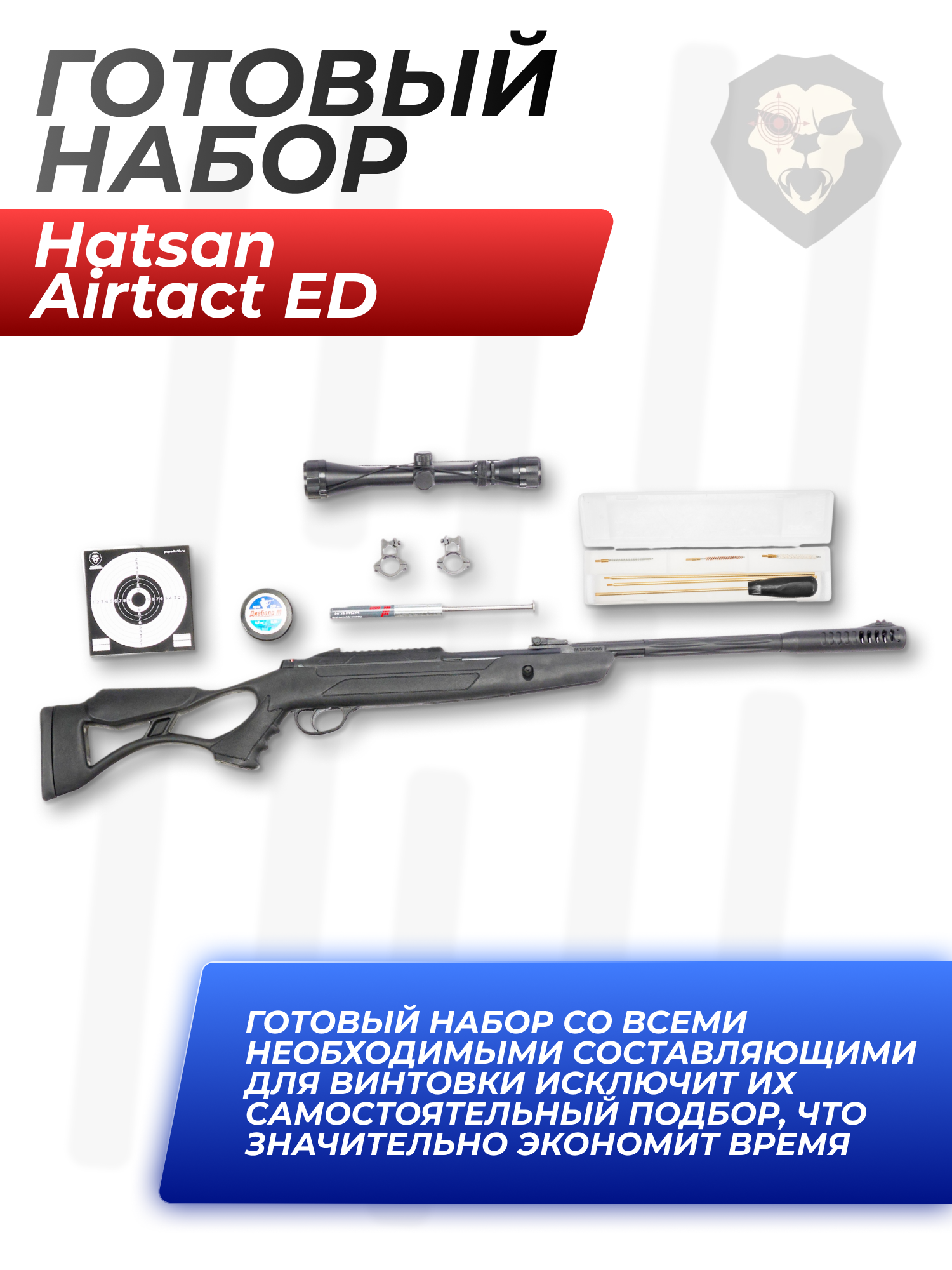Пневматическая винтовка Hatsan Airtact ED комплект Hunter №1 (прицел, кольца, газовая пружина, мишени, пули, набор для чистки, 3 Дж, 4.5 мм) купить в интернет-магазине Popadiv10.