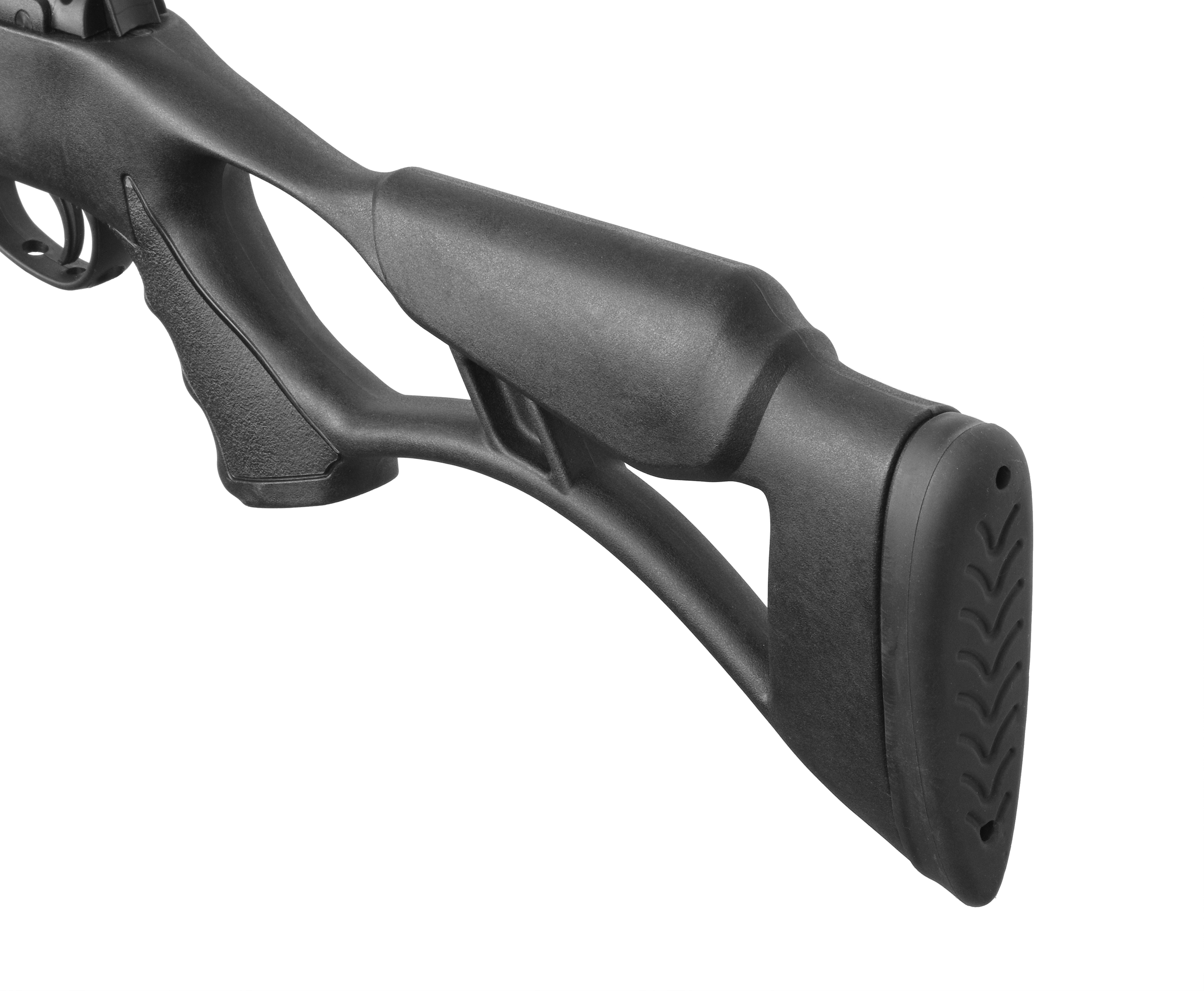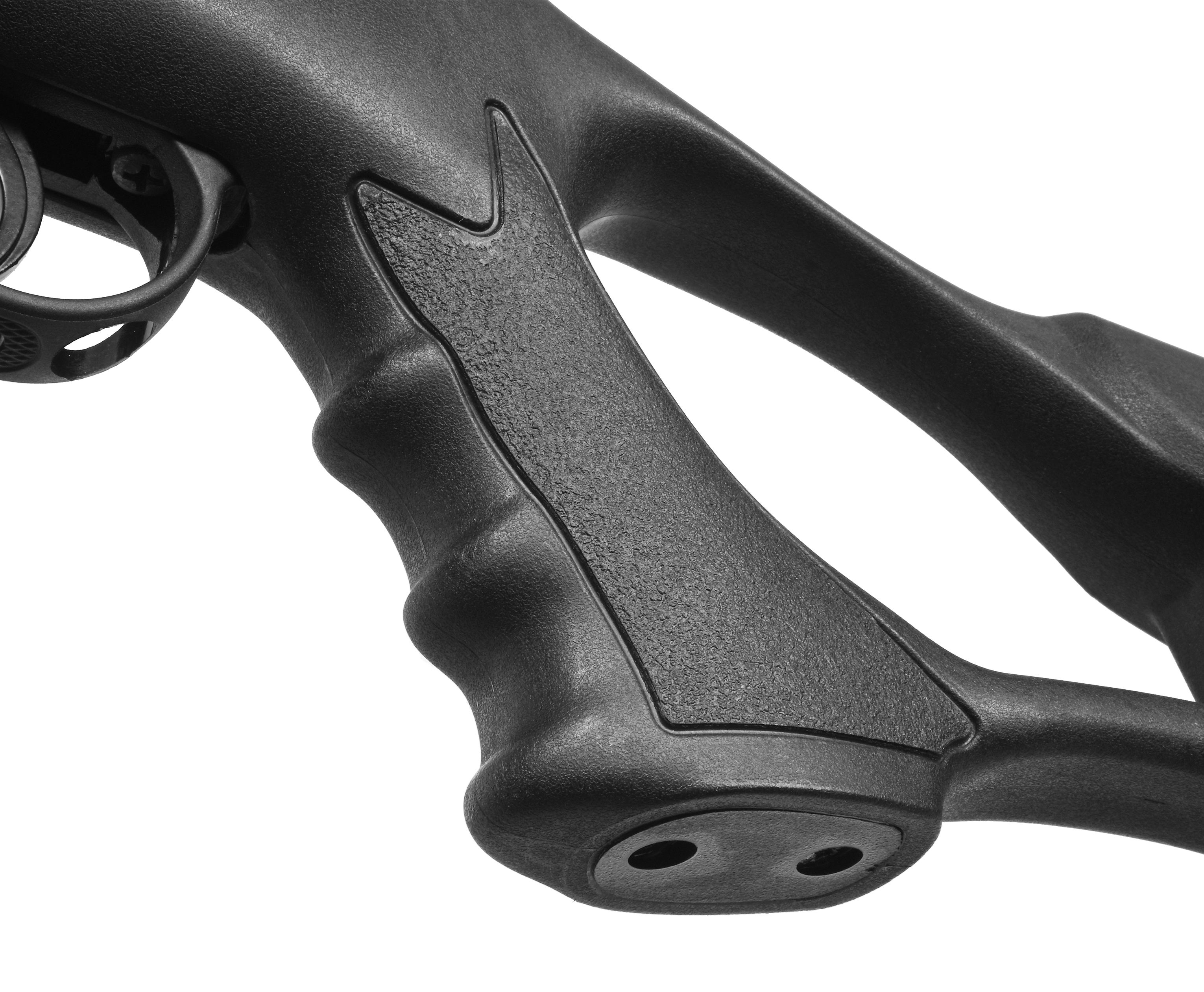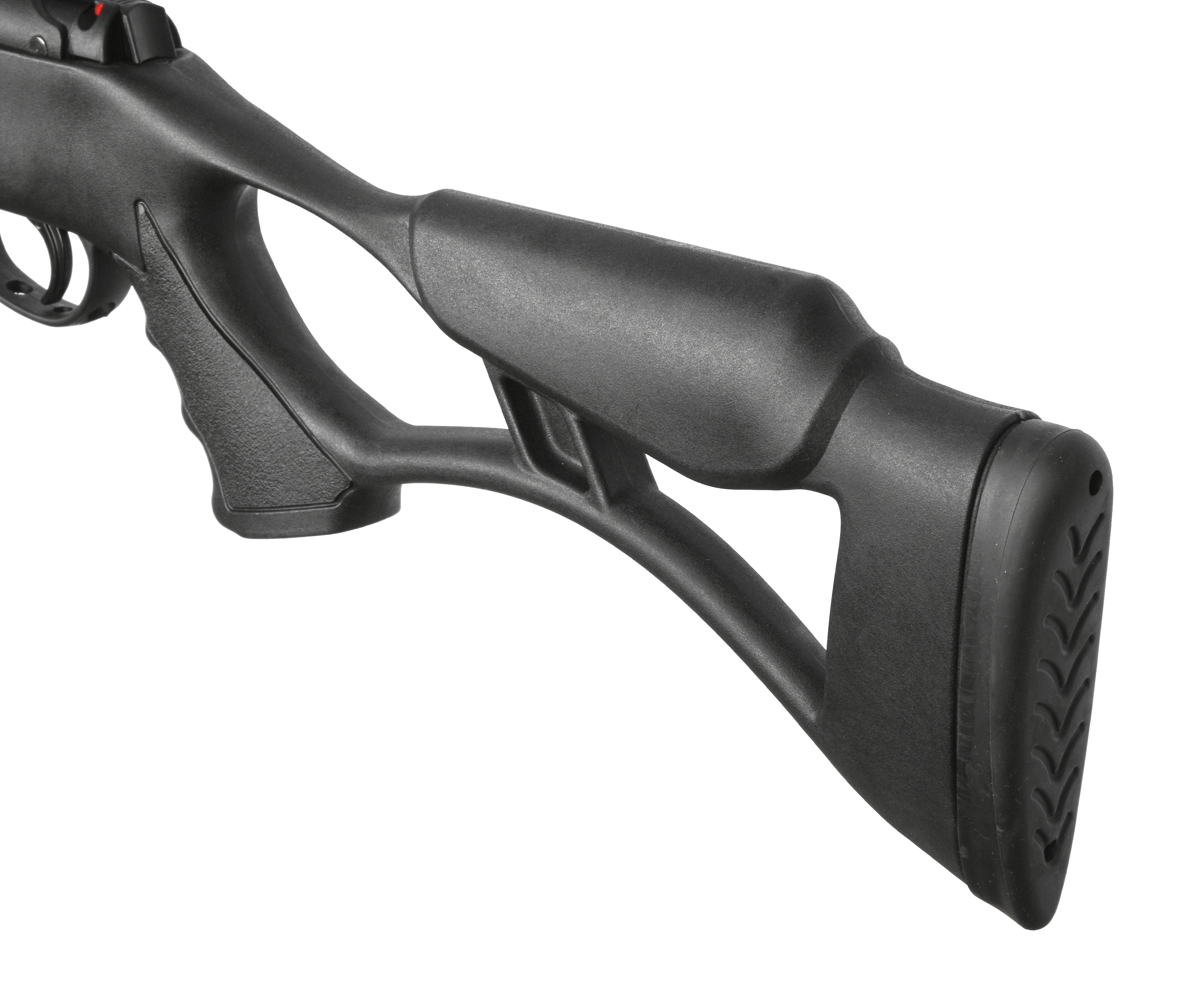 Ложе сделали из полимера - фурнитура отличается характерной геометрией рукояти и приклада, что благоприятно отражается на эргономике. Хват становится жестче, а также открывается возможность удержания оружия за упор снизу, если стрелок работает по мишени из позиции со стола. Винтовка получилась легкой и разворотливой за счет небольшой массы 2.75 килограмма и длины 1135 миллиметров - за счет этого снижаются требования к мускульной силе пользователя.