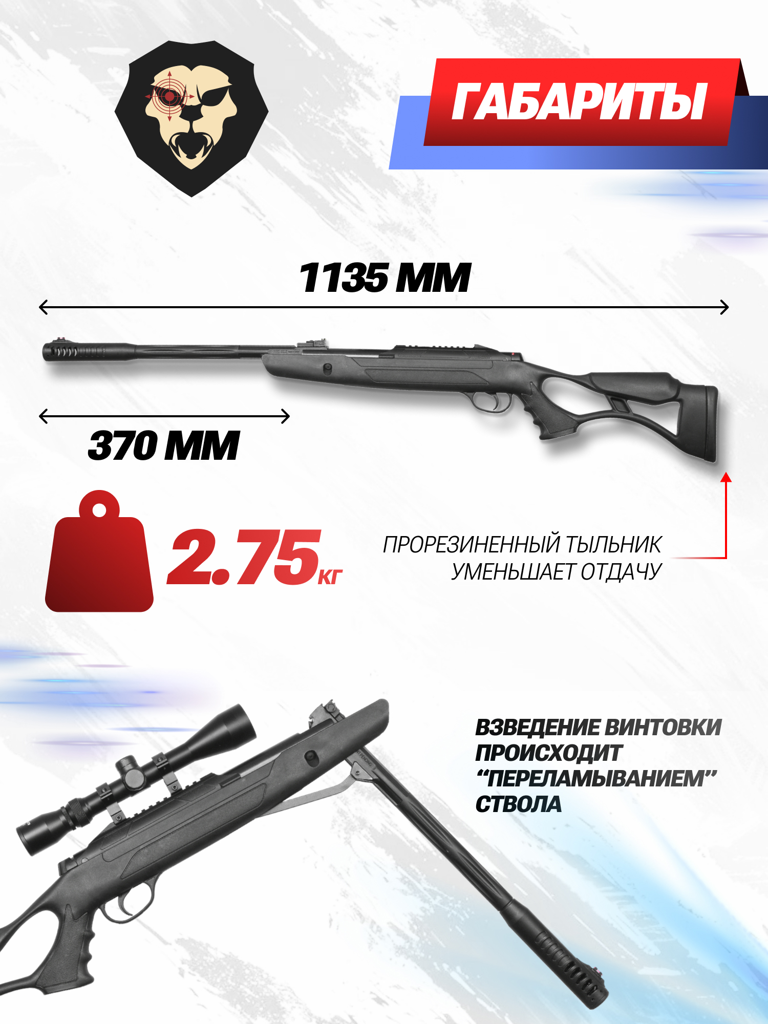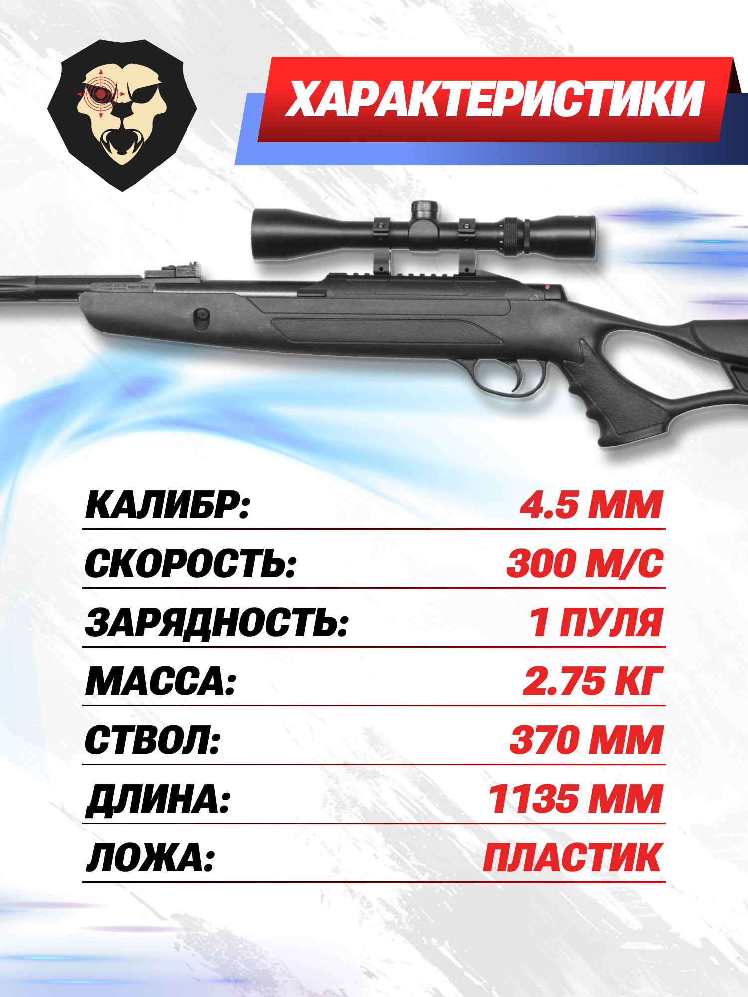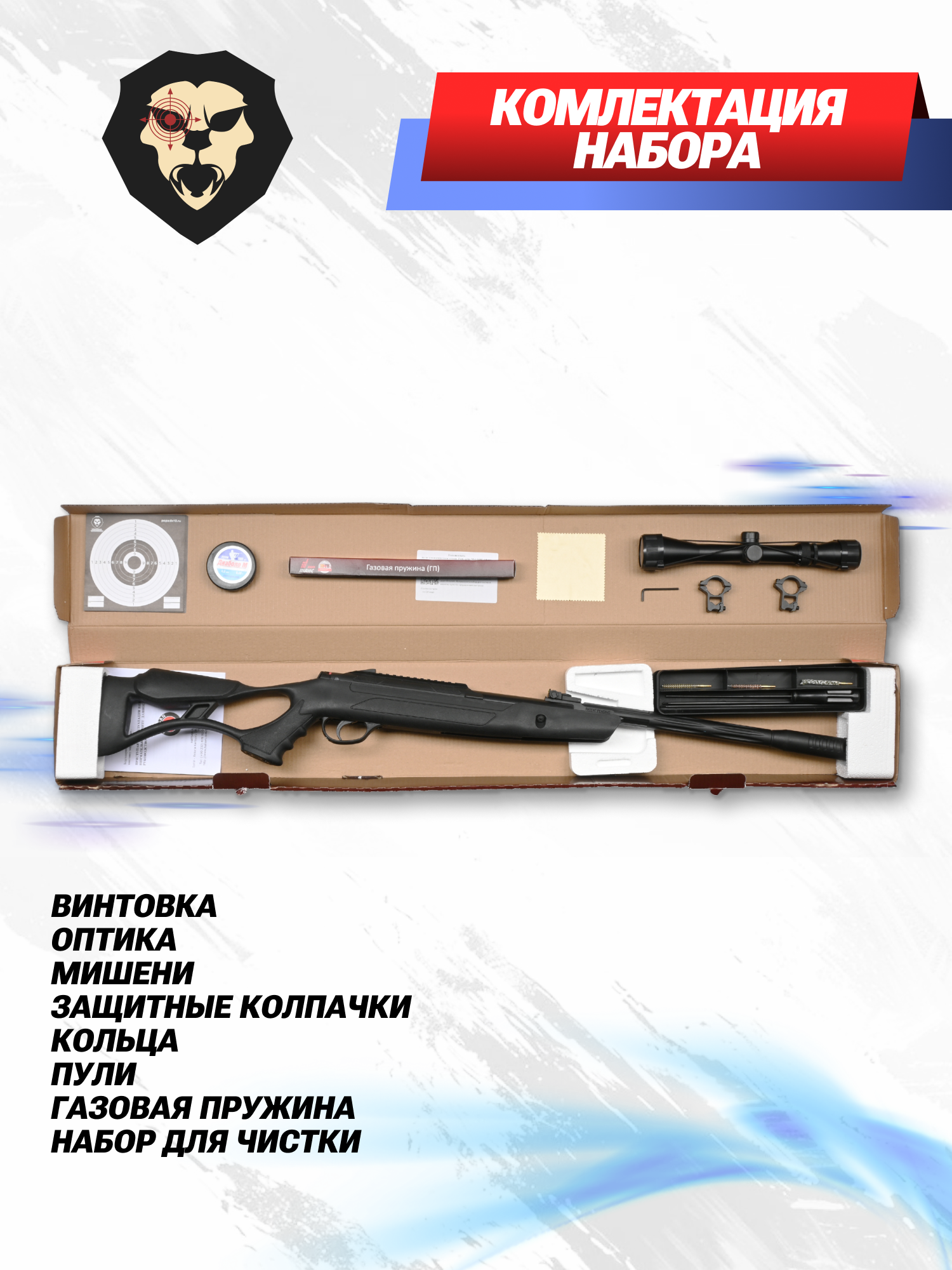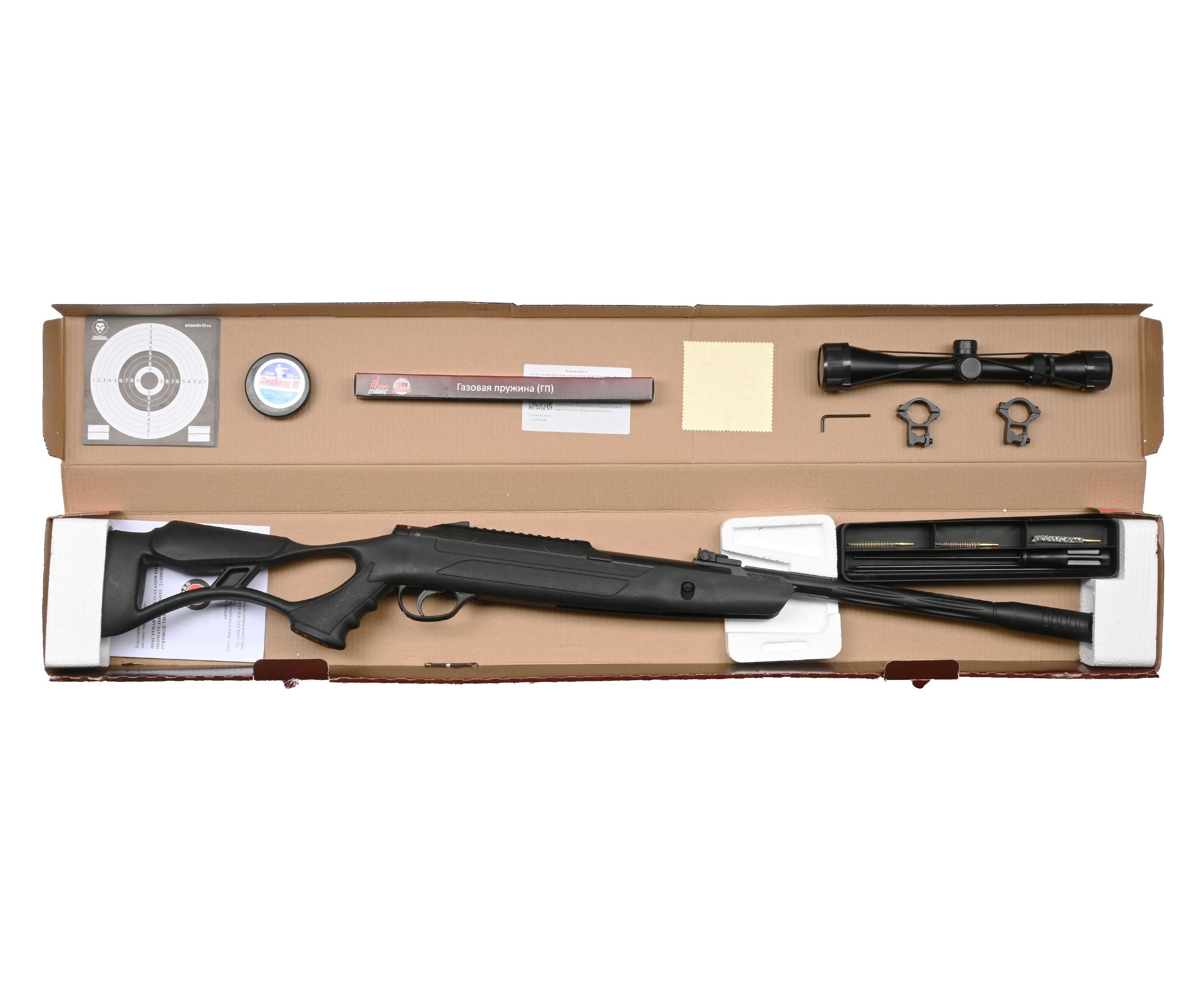 | Комплектация | Винтовка, прицел, кольца, газовая пружина, мишени, пули, набор для чистки, упаковка, краткая документация, копия сертификата (по запросу покупателя) |