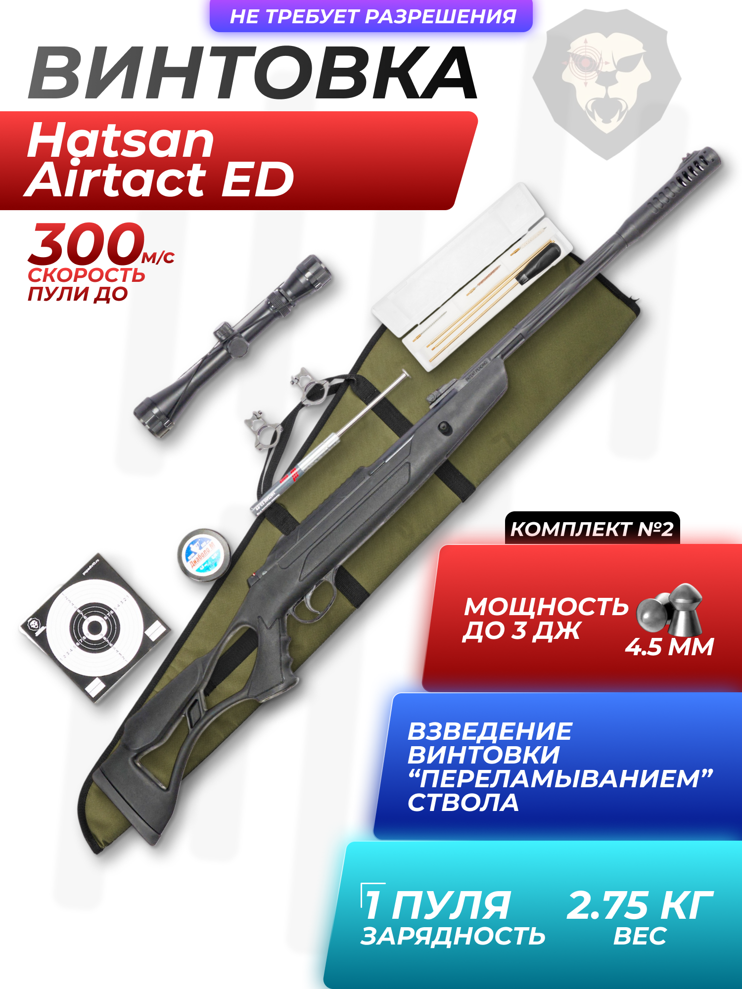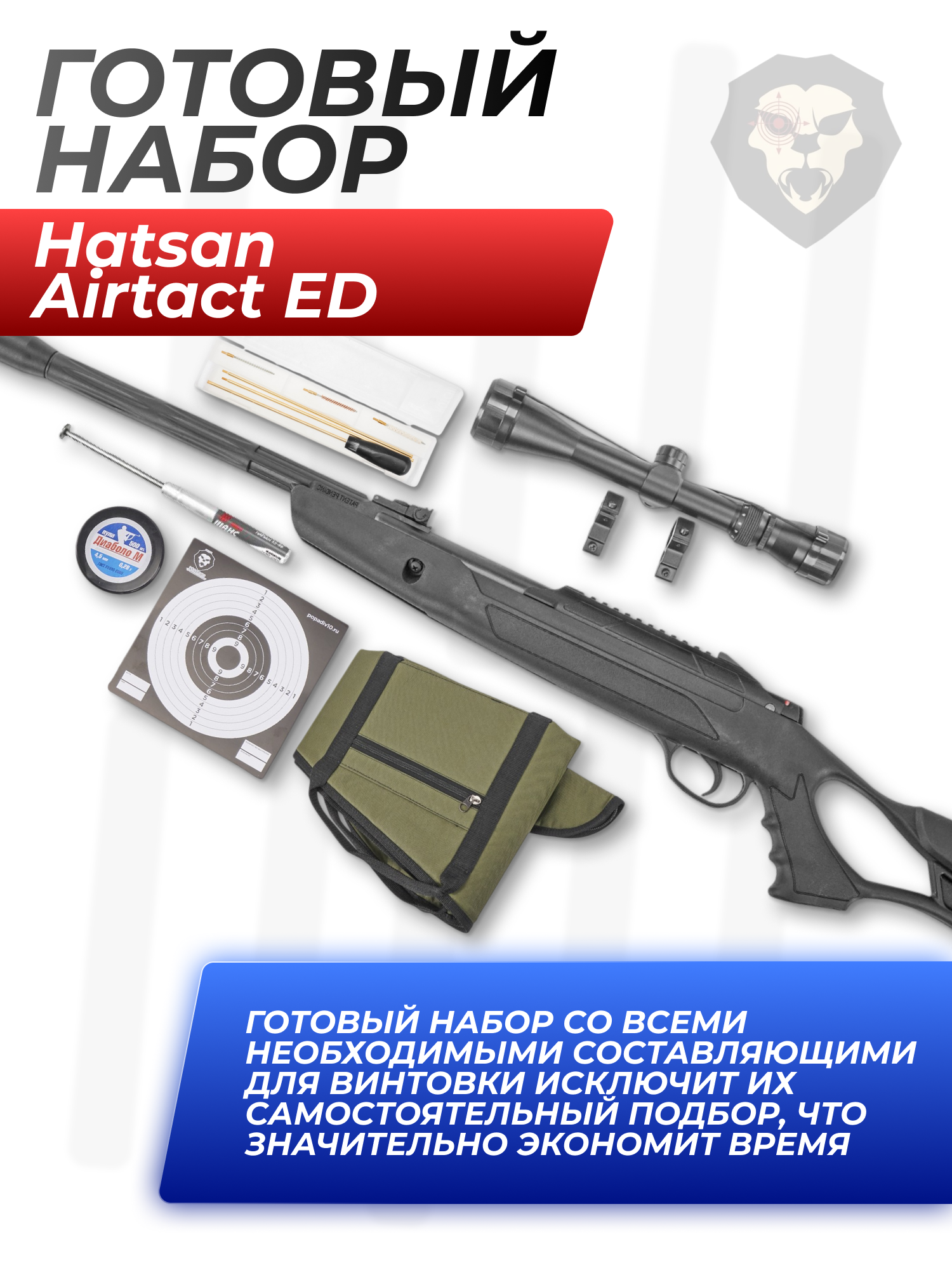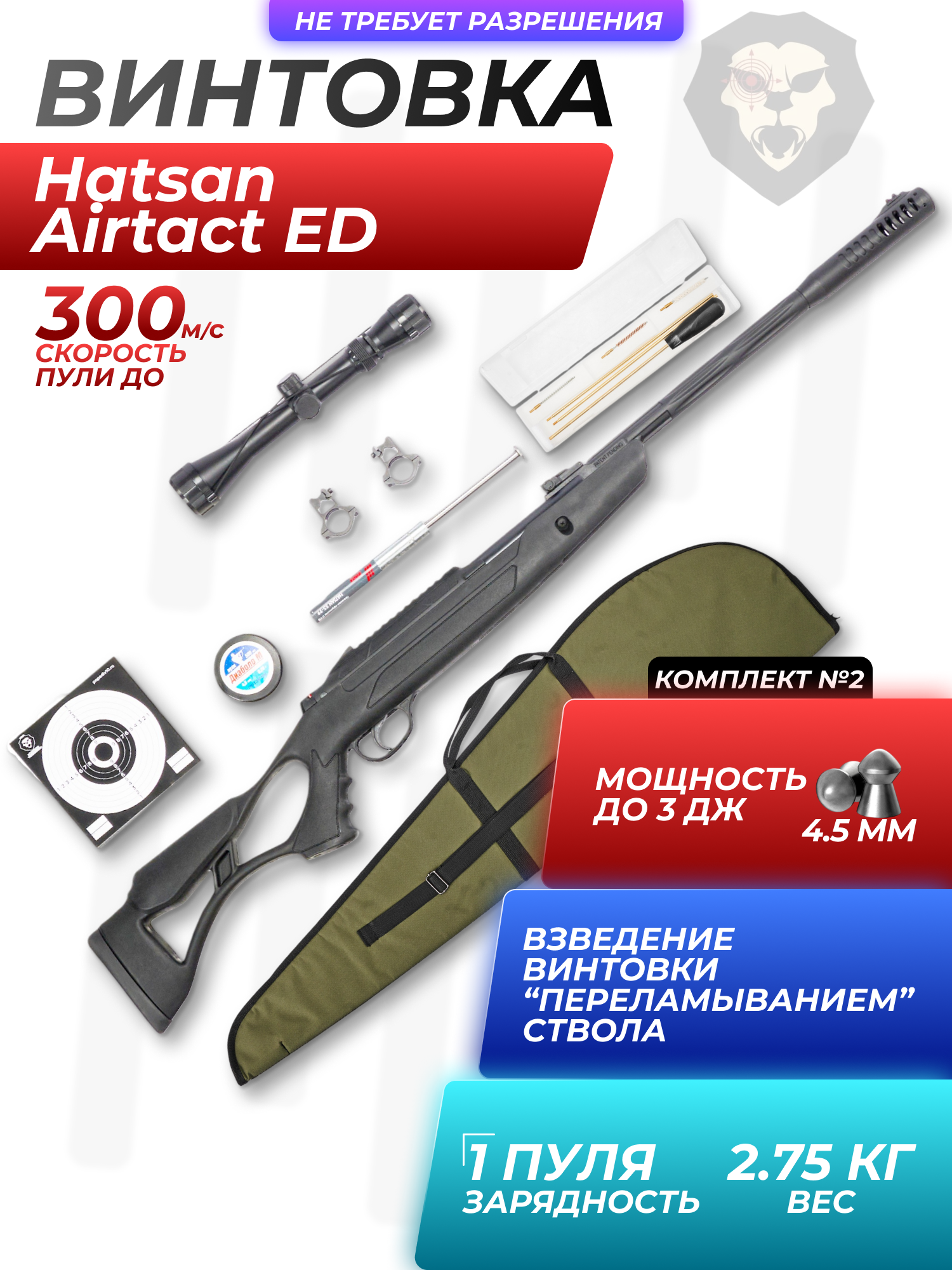 Пневматическая винтовка Hatsan Airtact ED комплект Hunter №2 (прицел, кольца, газовая пружина, чехол, мишени, пули, набор для чистки, 3 Дж, 4.5 мм) купить в интернет-магазине Popadiv10.