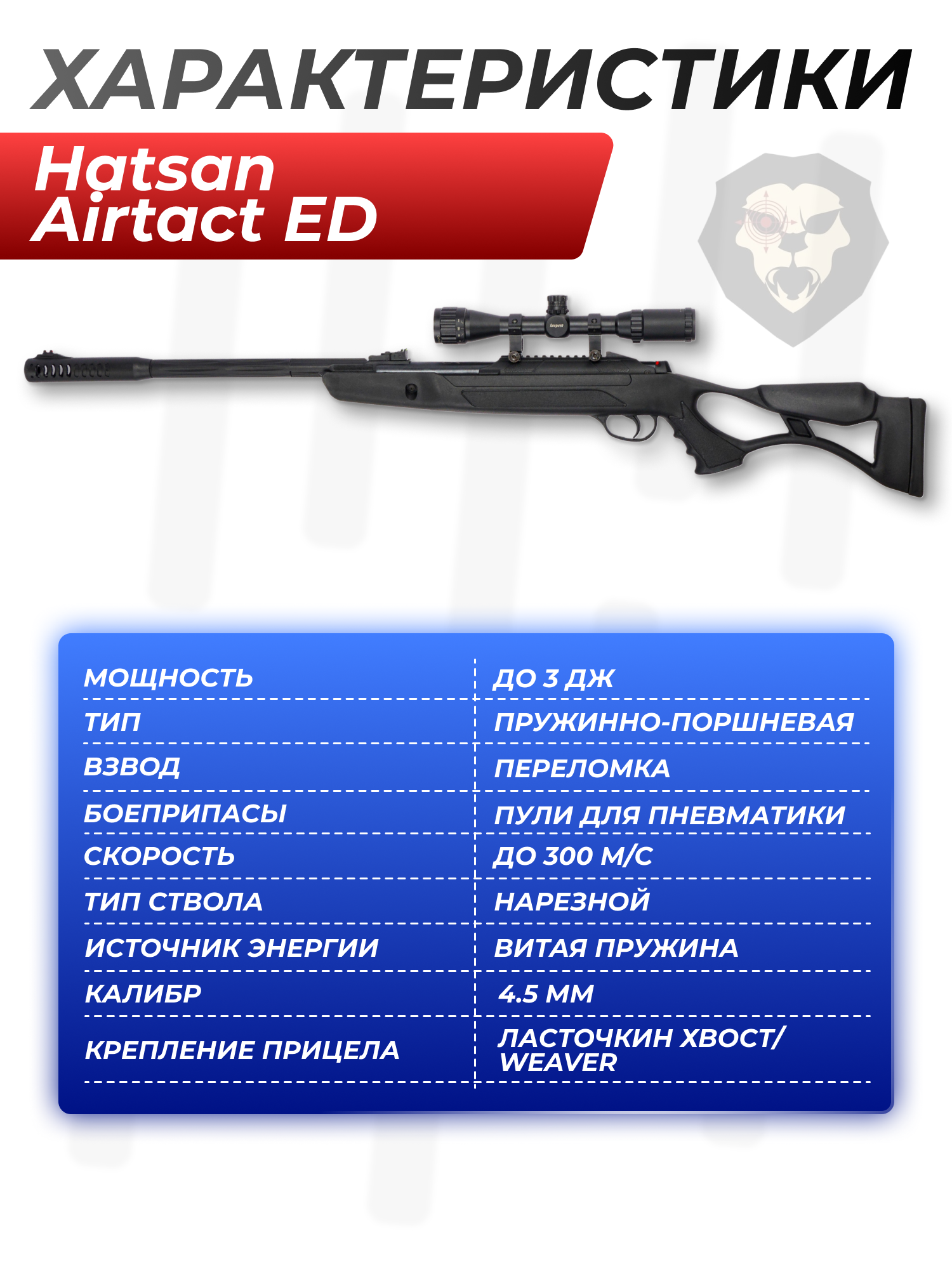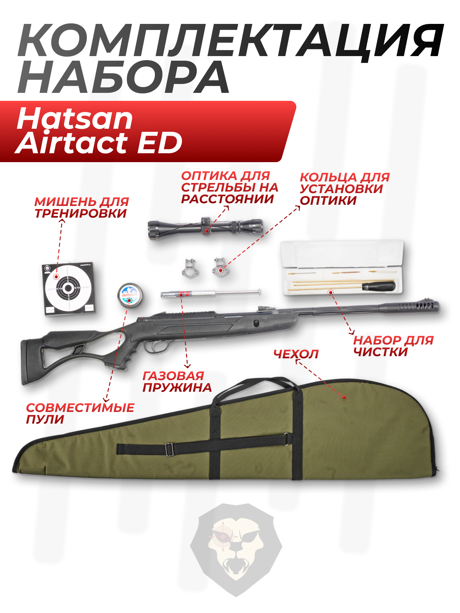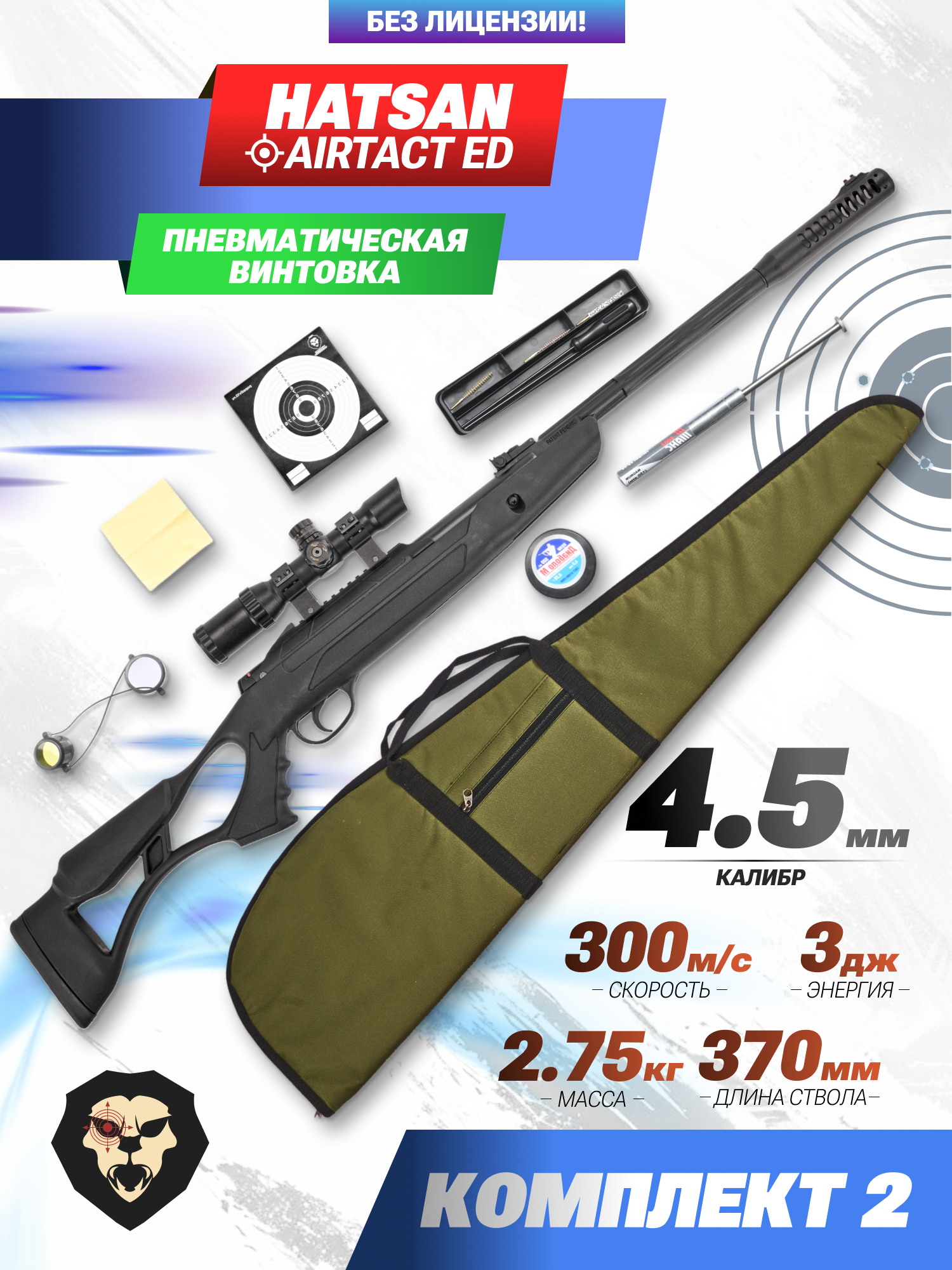 Пневматическая винтовка Hatsan Airtact ED комплект Hunter №2 (прицел, кольца, газовая пружина, чехол, мишени, пули, набор для чистки, 3 Дж, 4.5 мм) купить в интернет-магазине Popadiv10.