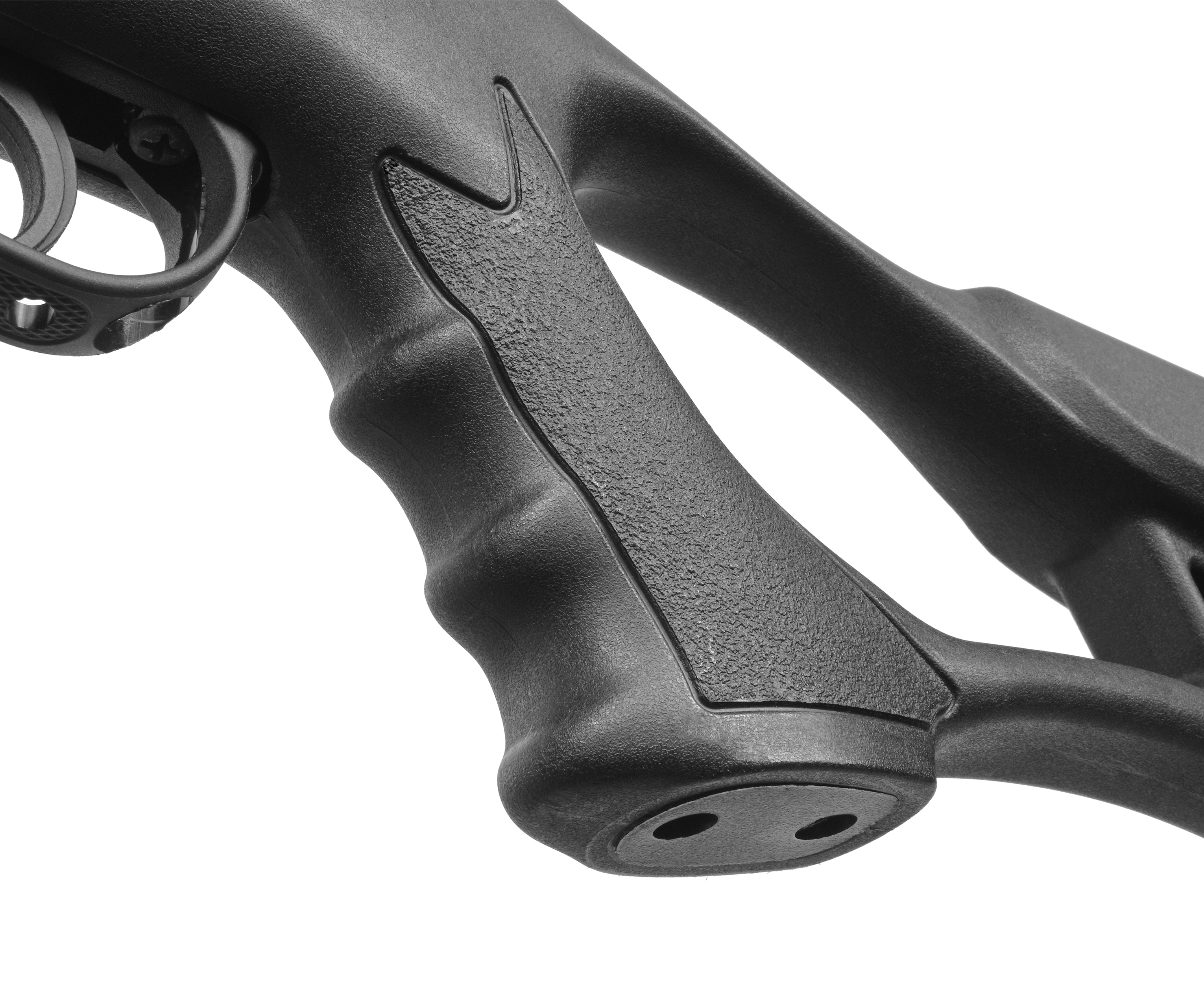 Отличительными чертами исполнения Аиртакт ЕД 4.5 мм стало ложе и полимерная окантовка ствола - последняя выполняет роль опорной поверхности для мушки и защищает руки стрелка от контакта с голым металлом, что упростит проворот ствольного блока. Вдохновением для фурнитуры послужила ложа от модели Эдж - здесь ее дополняют подпальцевые выемки для ухватистости рукояти и полость под вторую руку в прикладе, за счет чего ее можно будет использовать как упор при стрельбе со стола.