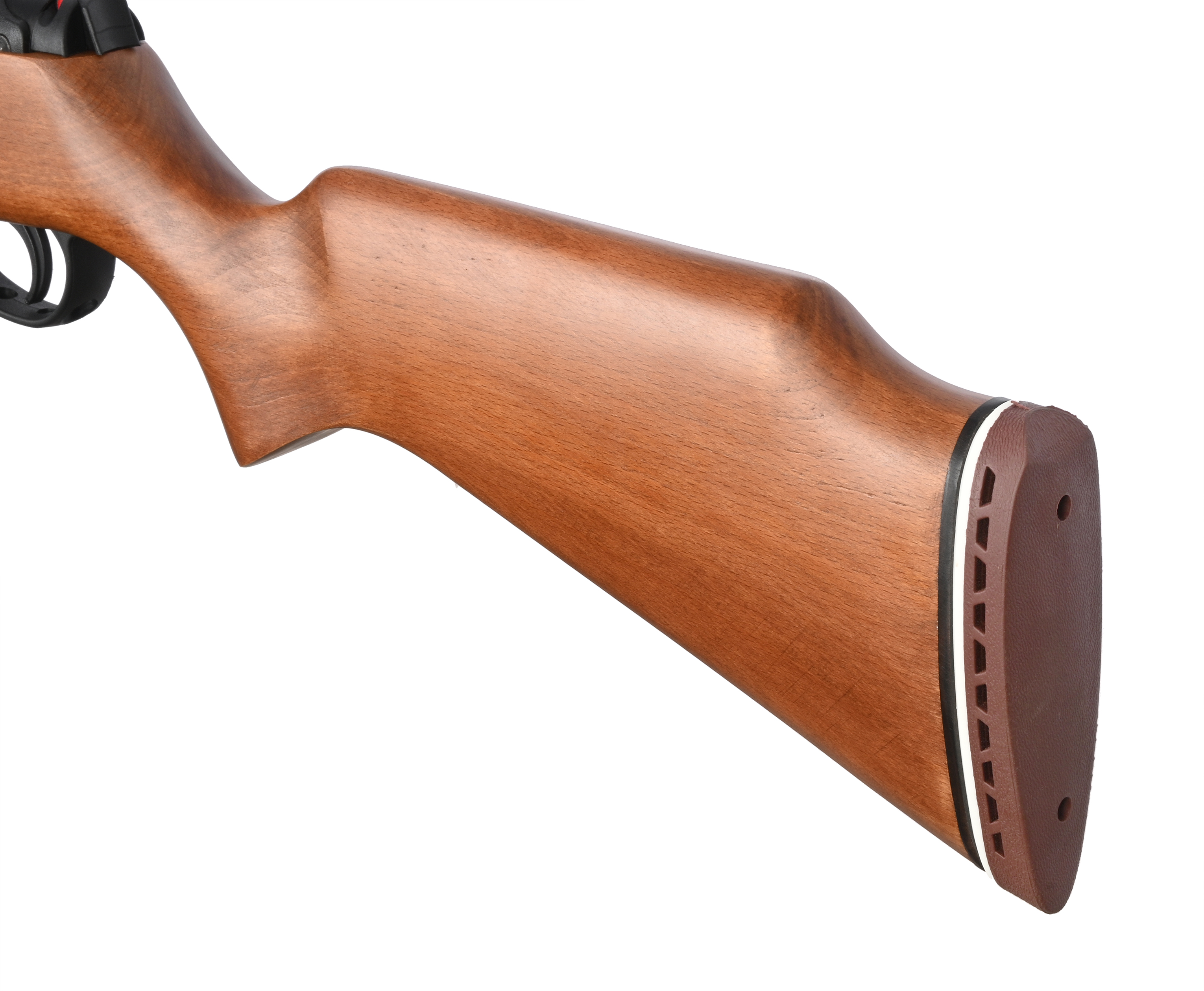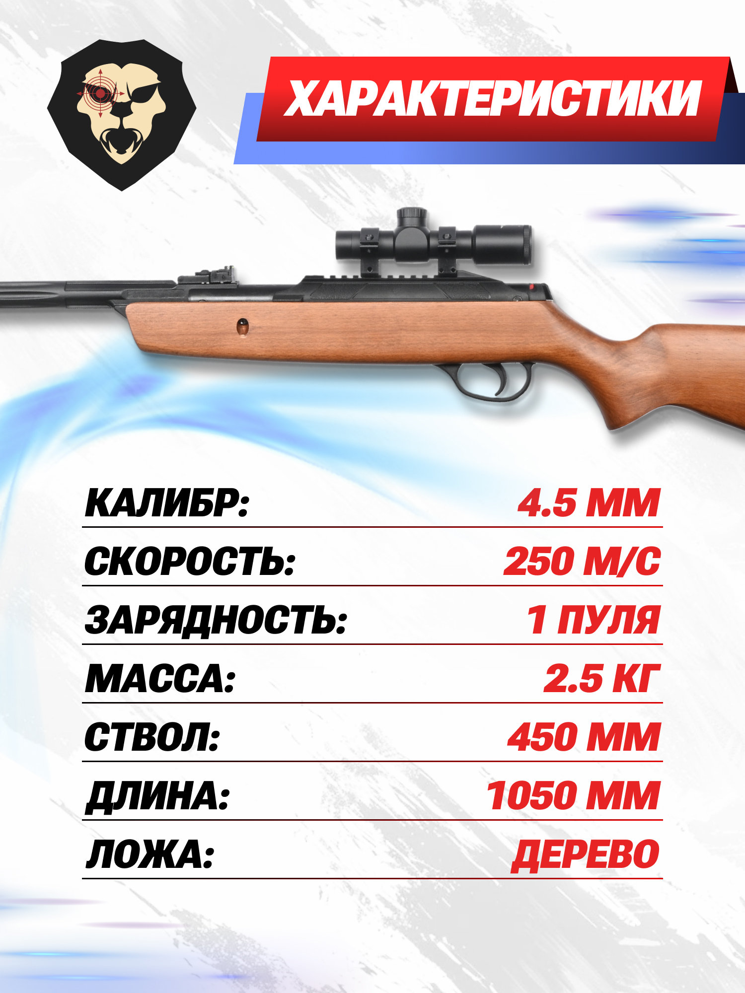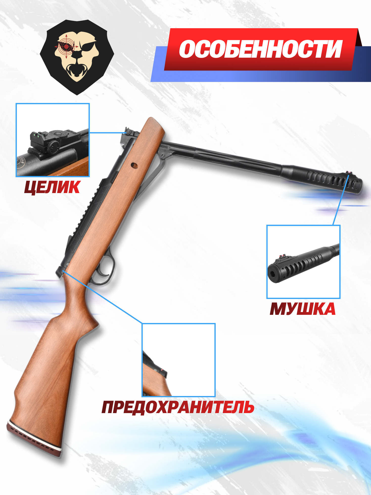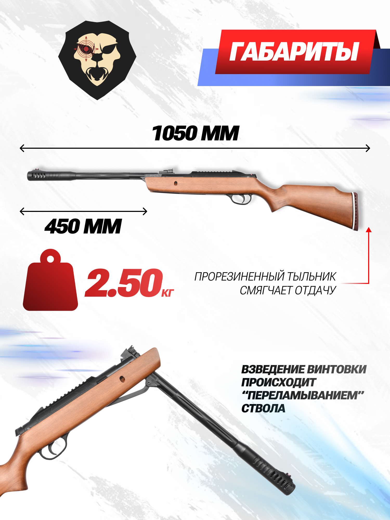 Отдельного внимания заслуживает эстетичный внешний вид модели, добиться которого удалось благодаря фурнитуре из дерева. Ложа классического типа обработана покрытием, оберегающим от влаги и подчеркивающим естественную структуру материала. При общей длине 1050 миллиметров вес конструкции не превышает 2.5 кг - легкий вес снижает утомляемость при обращении.