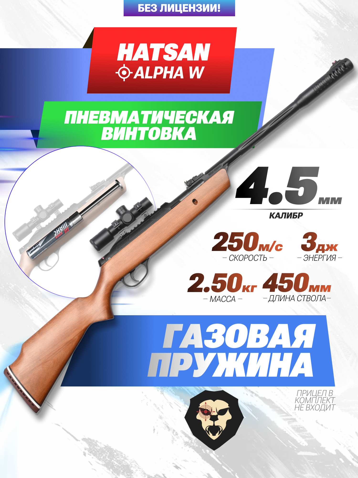 Пневматическая винтовка Hatsan Alpha W 4.5 мм (3 Дж, дерево, газовая пружина) купить в интернет-магазине Popadiv10.