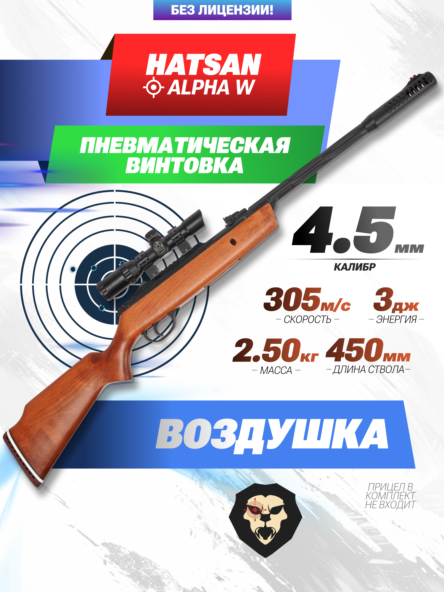 Пневматическая винтовка Hatsan Alpha W 4.5 мм (3 Дж, дерево) купить в интернет-магазине Popadiv10.