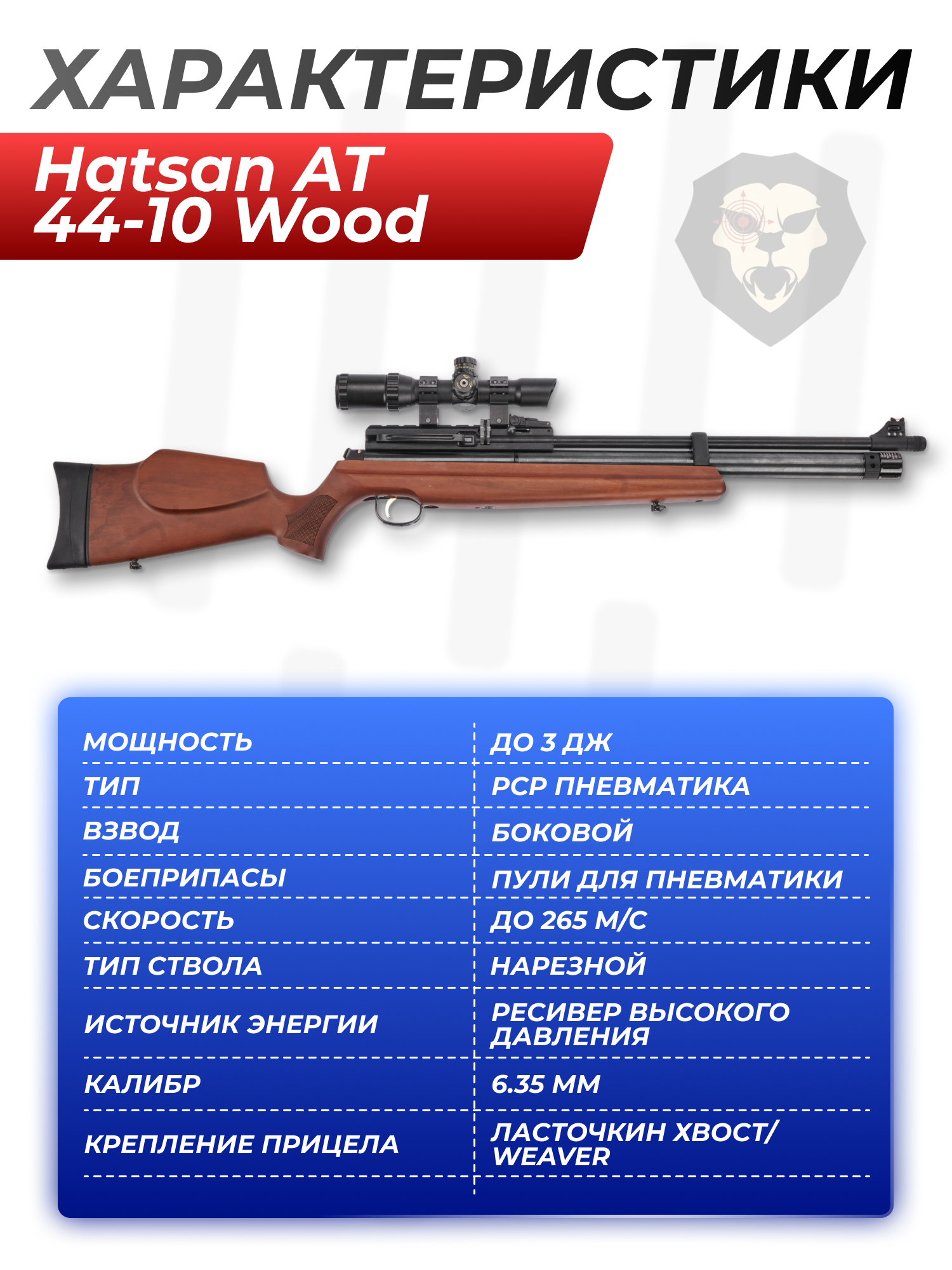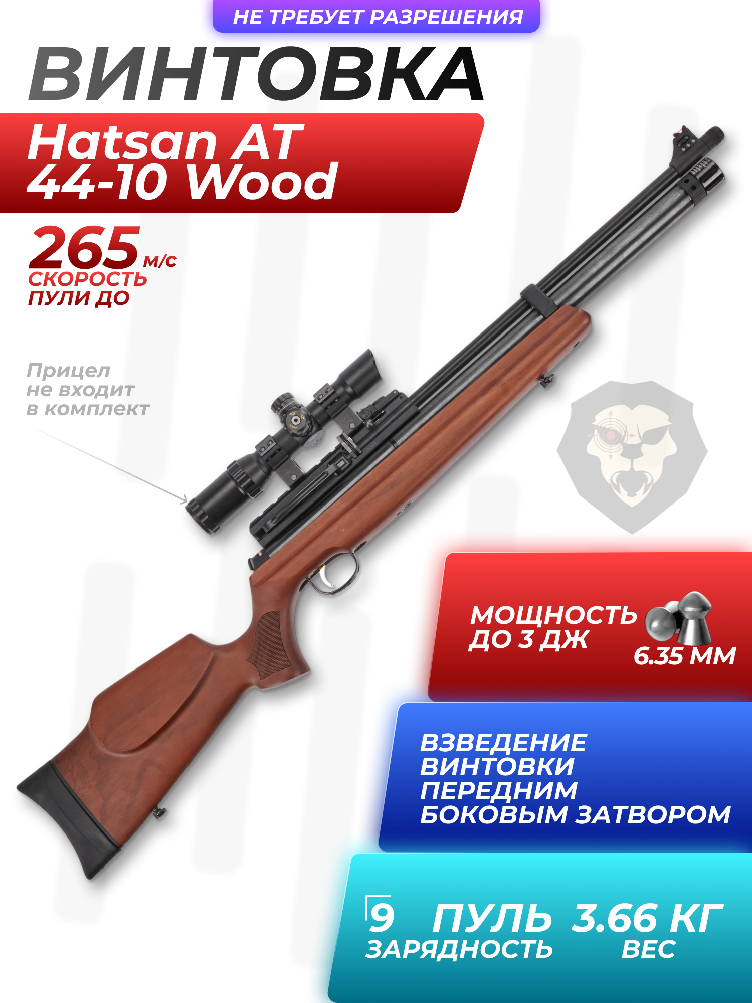 Пневматическая винтовка Hatsan AT 44-10 Wood 6.35 мм (PCP, дерево) купить в интернет-магазине Popadiv10.