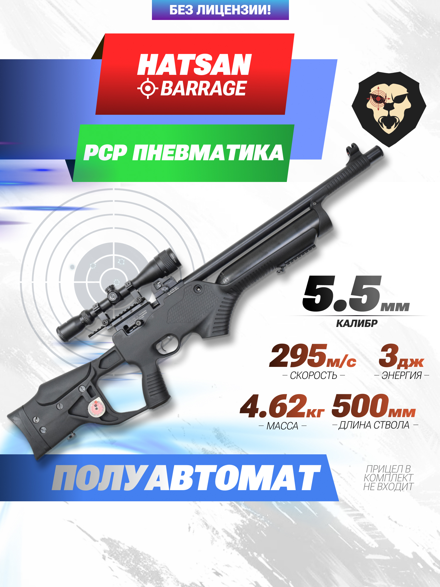 Пневматическая винтовка Hatsan Barrage 5.5 мм (пластик, полуавтомат, PCP) купить в интернет-магазине Popadiv10.