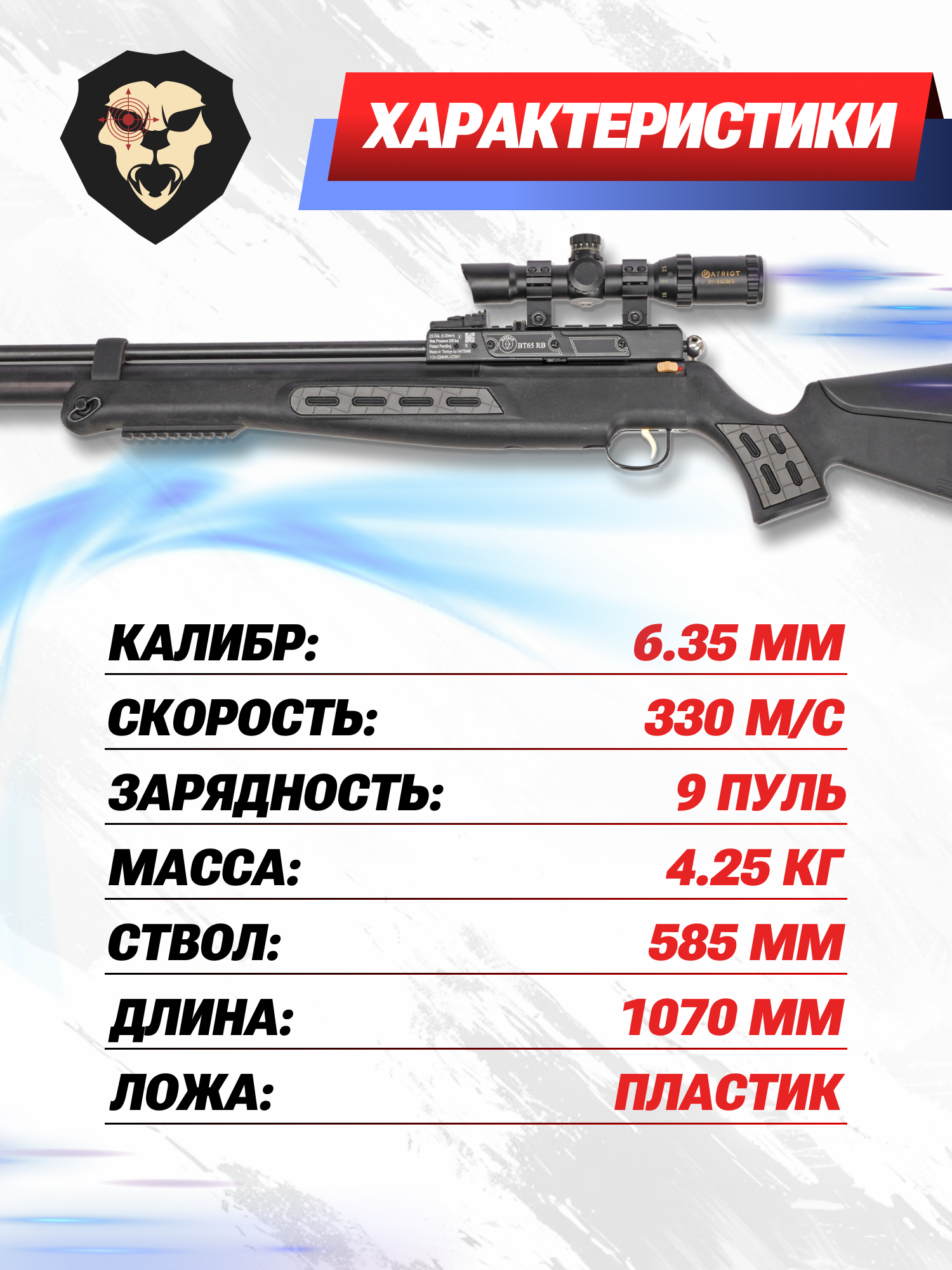 | Комплектация | Винтовка, магазин - 2 шт, упаковка, заправочный штуцер, краткая документация, копия сертификата (по запросу покупателя) |