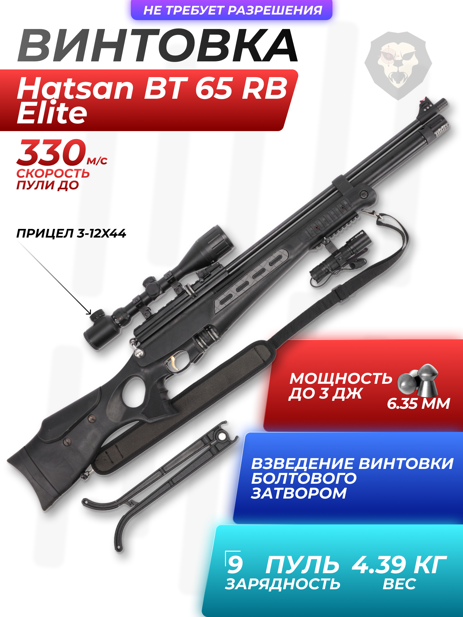 Пневматическая винтовка Hatsan BT 65 RB Elite 6.35 мм (прицел 3-12x44, пластик) купить в интернет-магазине Popadiv10.