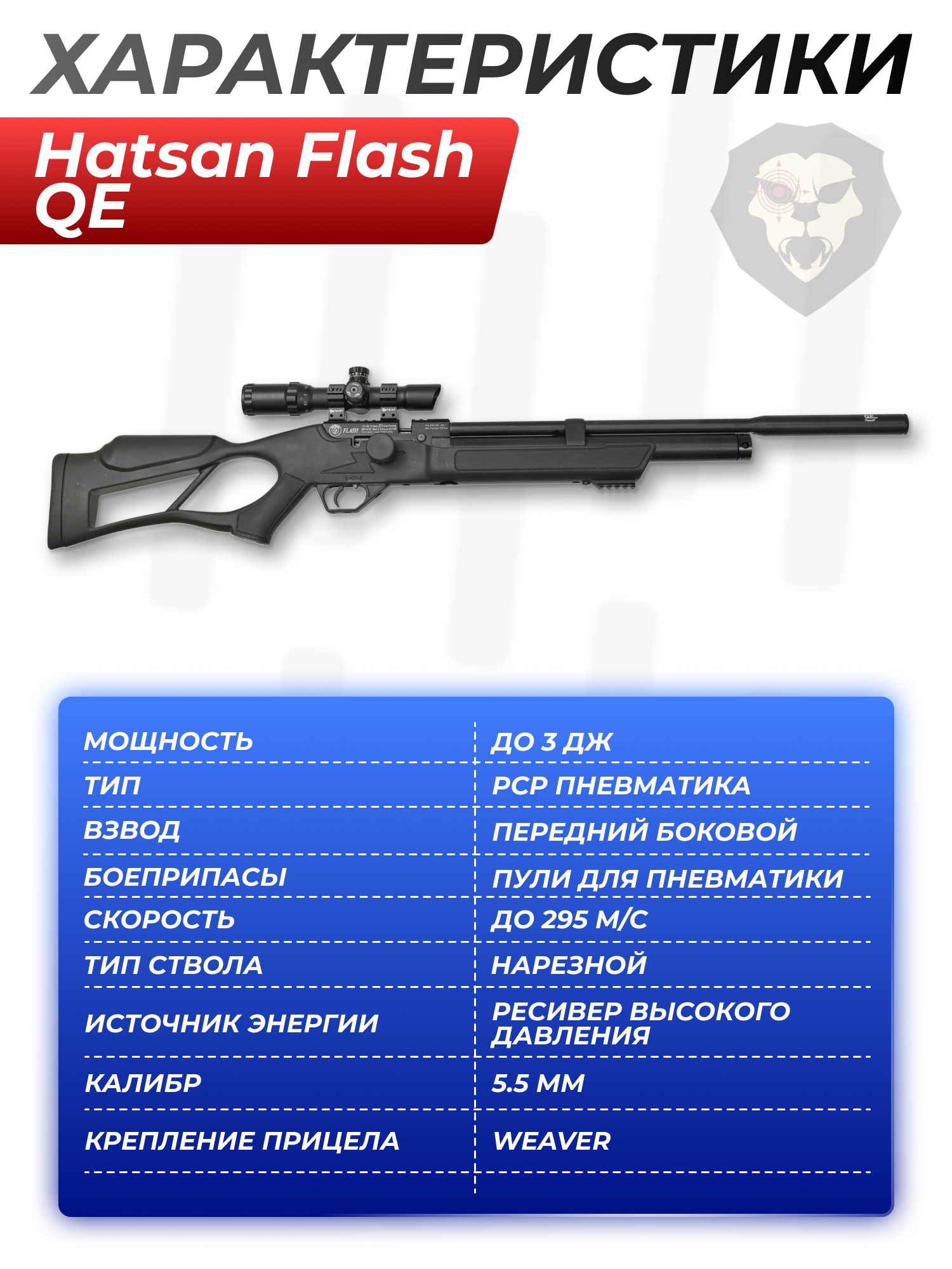 Пневматическая винтовка Hatsan Flash QE 5.5 мм (PCP, пластик) купить в интернет-магазине Popadiv10.