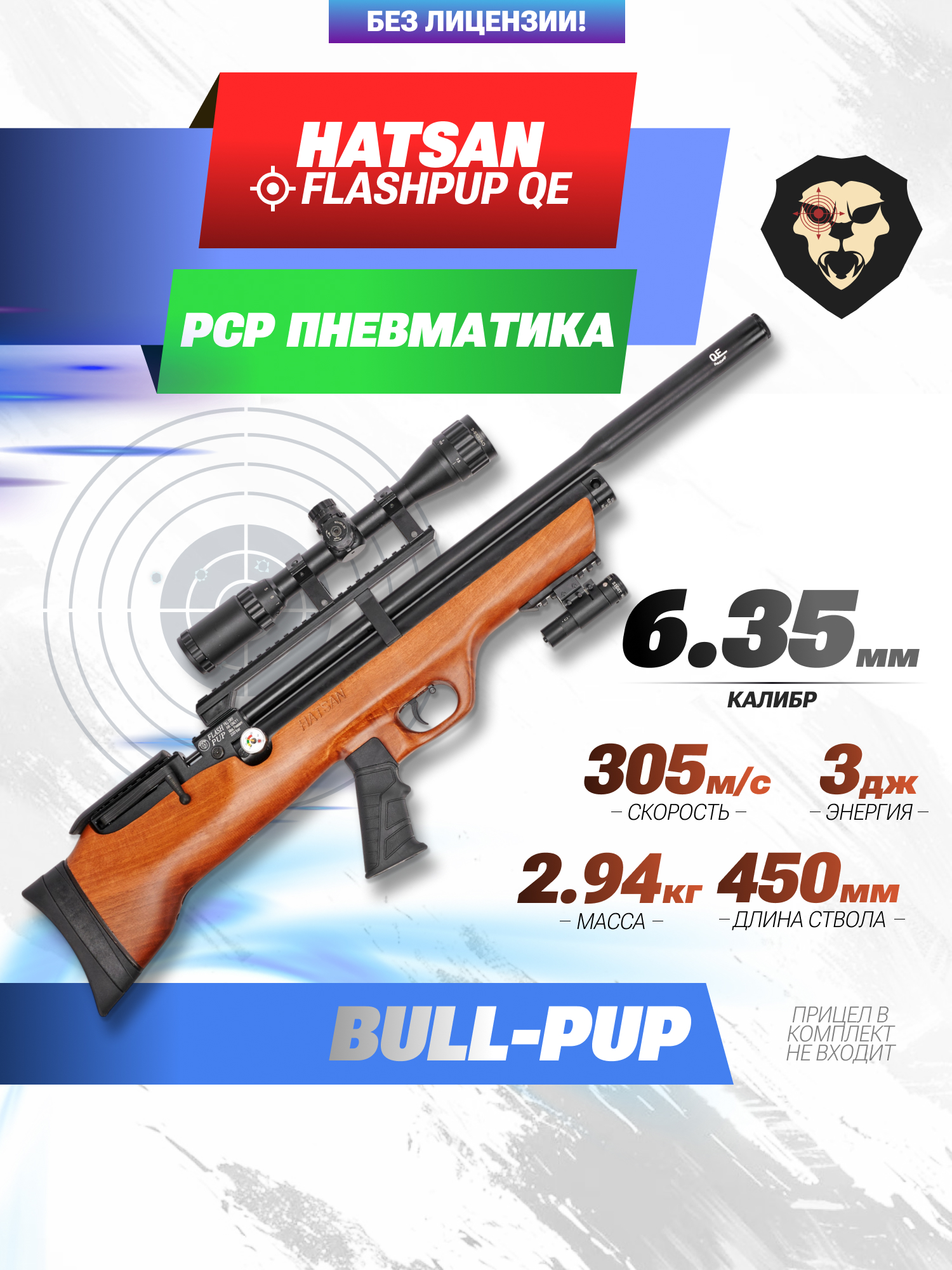 Пневматическая винтовка Hatsan Flashpup QE 6.35 мм (PCP, дерево) купить в интернет-магазине Popadiv10.