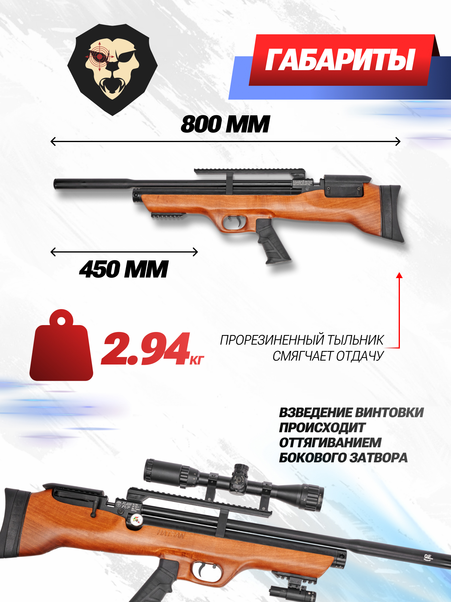 | Комплектация | Винтовка, упаковка, заправочный штуцер, краткая документация, копия сертификата (по запросу покупателя), магазин |