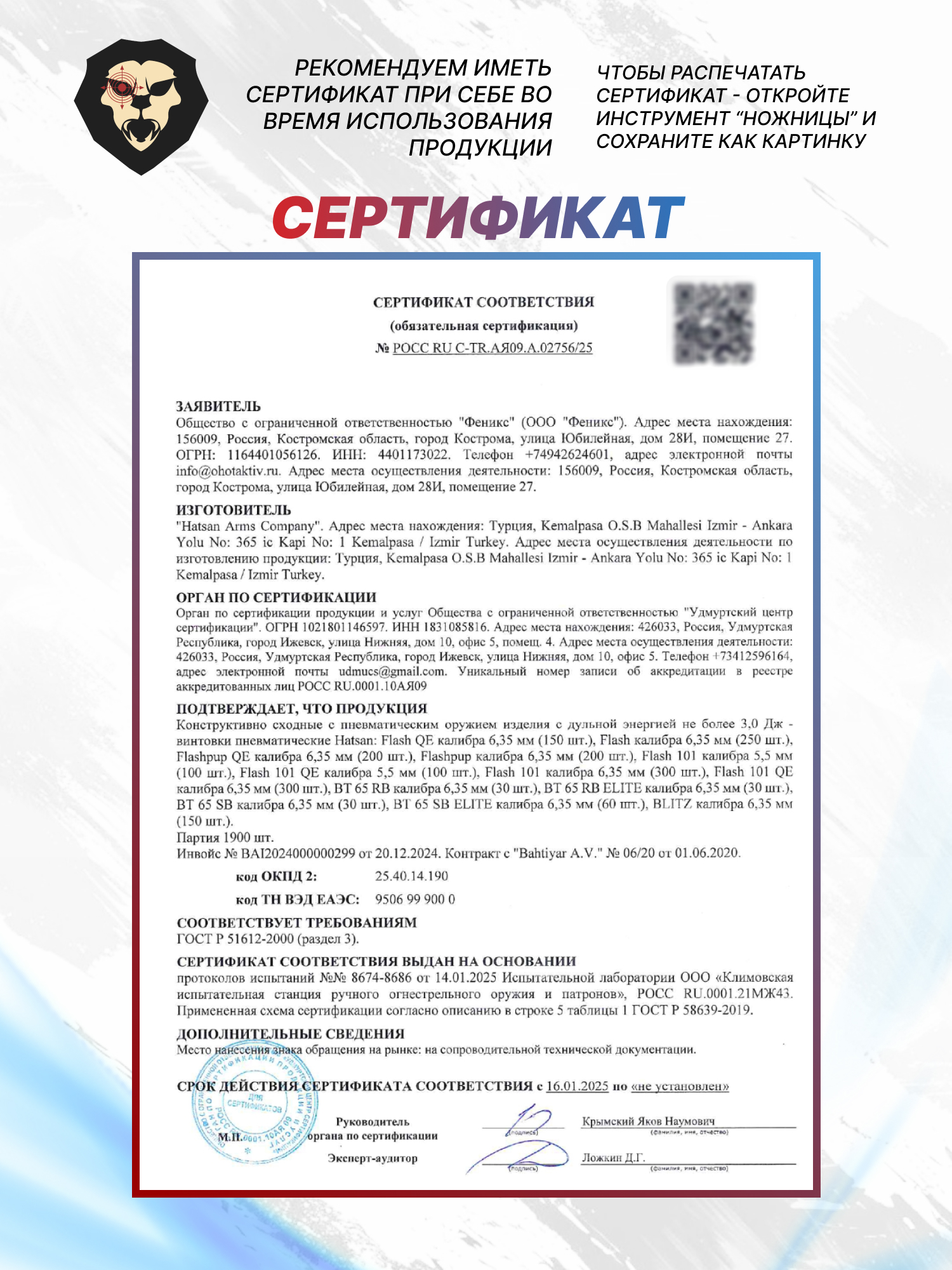 Информация о товаре "Пневматическая винтовка Hatsan Flashpup QE 6.35 мм (PCP, дерево)" носит ознакомительный характер, и не является публичной офертой, определяемой положениями Статьи 437 Гражданского кодекса Российской Федерации, характеристики, внешний вид, цвет и комплектация могут быть изменены производителем без уведомления.